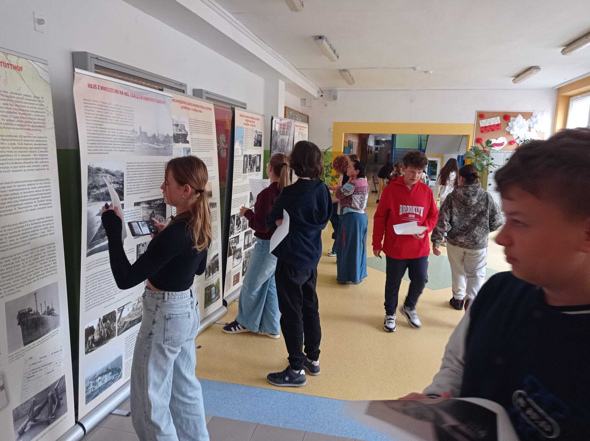 Uczniowie klas 7SP i 2 HEL~LO aktywnie zwiedzali wystawę, biorąc udział w lekcji historii. Karty pracy, tematyczne puzzle i krzyżówki uruchomiły proces analizy i skłoniły do refleksji. Historia nie jest opowiadaniem fantasy a ludzka pamięć nie jest jałowym rejestrem zdarzeń. Owiani wiatrami Bałtyku pomyślmy także o Tych, dla których morze musiało stać się śmiertelnym otchnieniem.