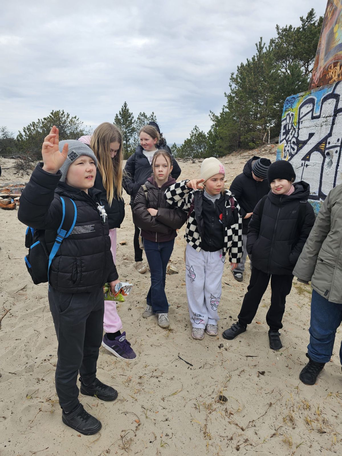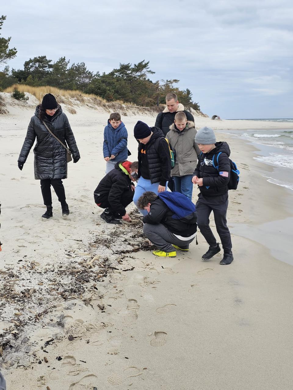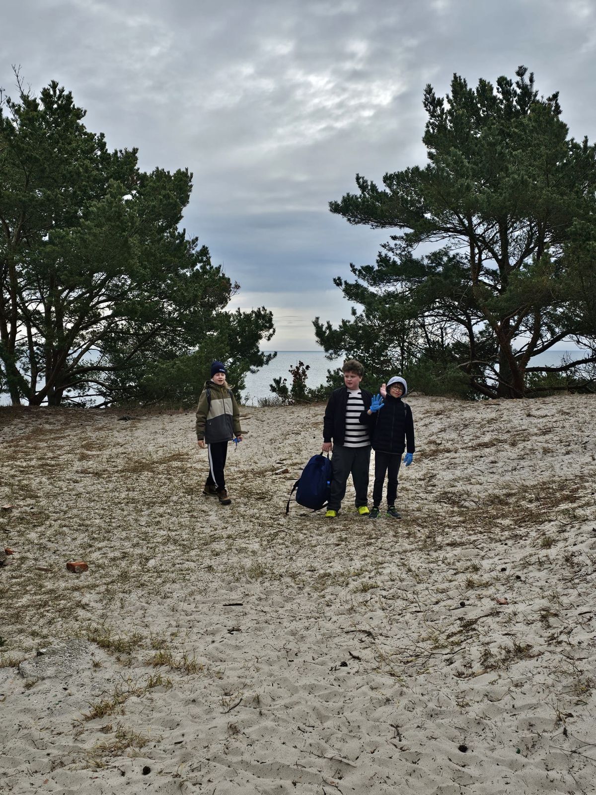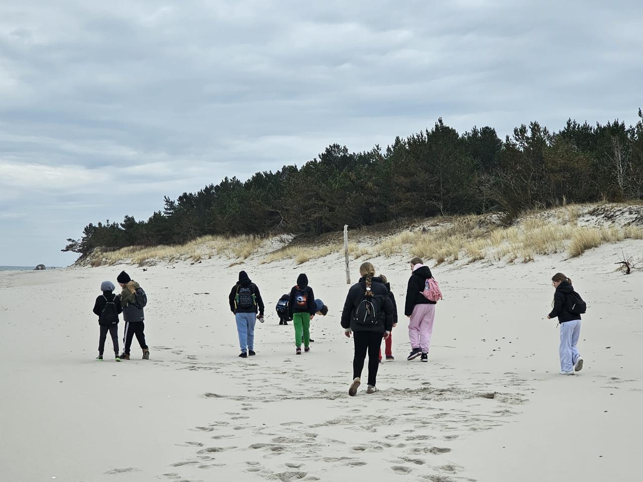 W drodze powrotnej uczniowie aktywnie włączyli się w sprzątanie plaży i pobliskiego lasu, dbając o środowisko naturalne. Dodatkową atrakcją było poszukiwanie bursztynu, które dla niektórych zakończyło się sukcesem i dostarczyło wielu emocji.