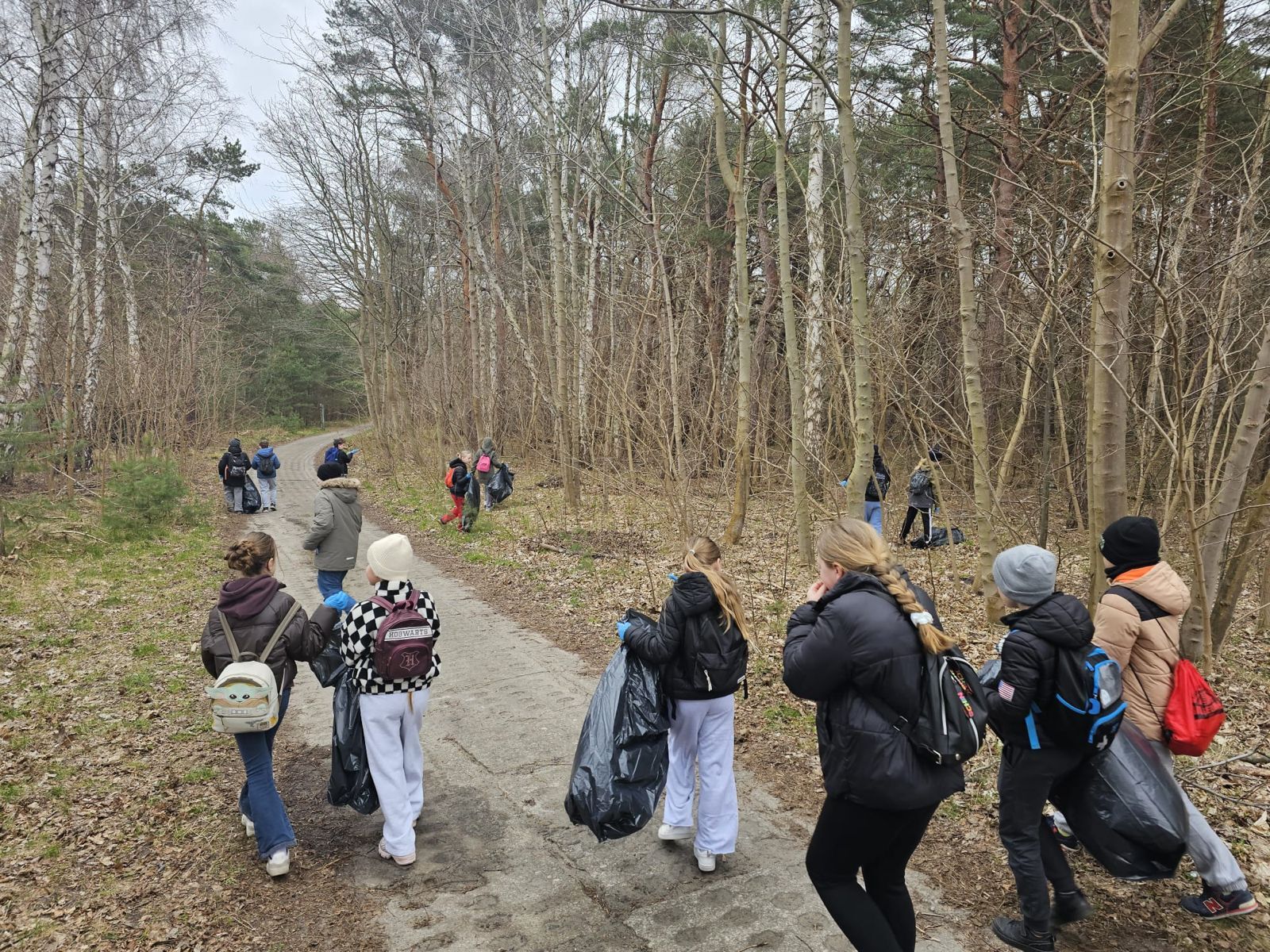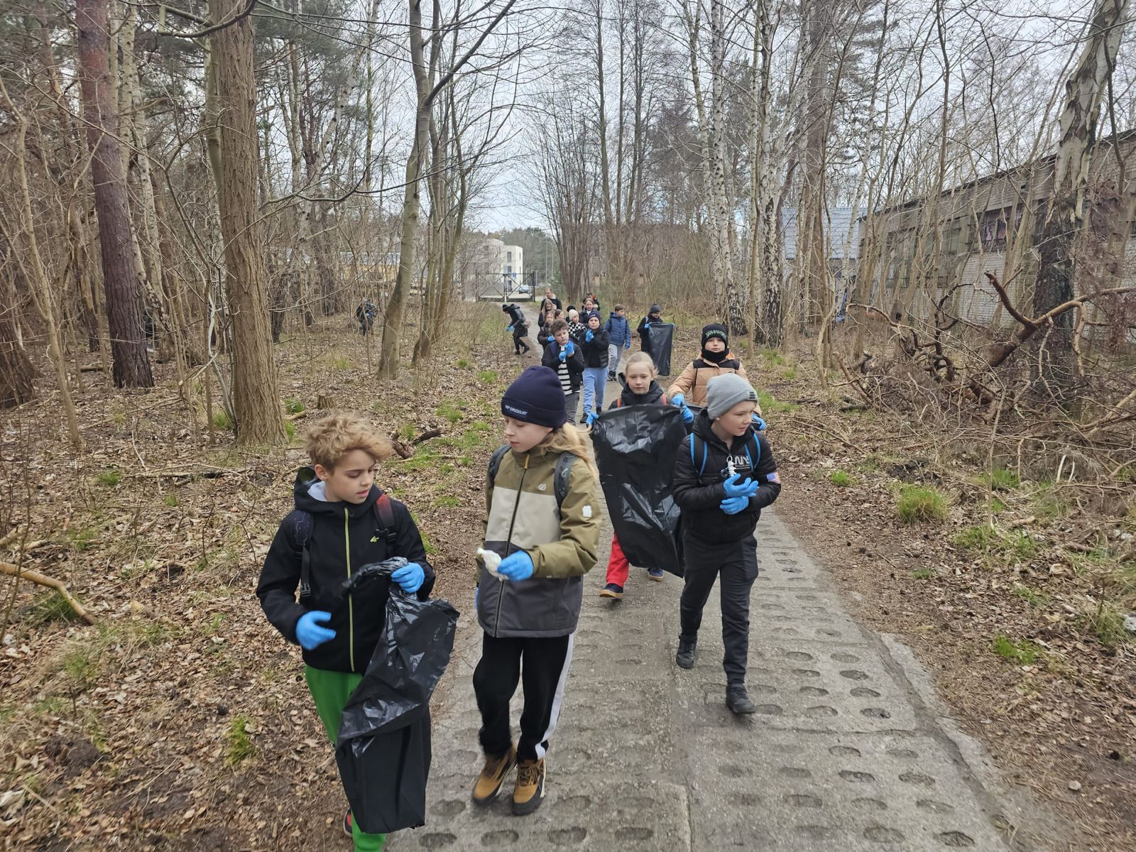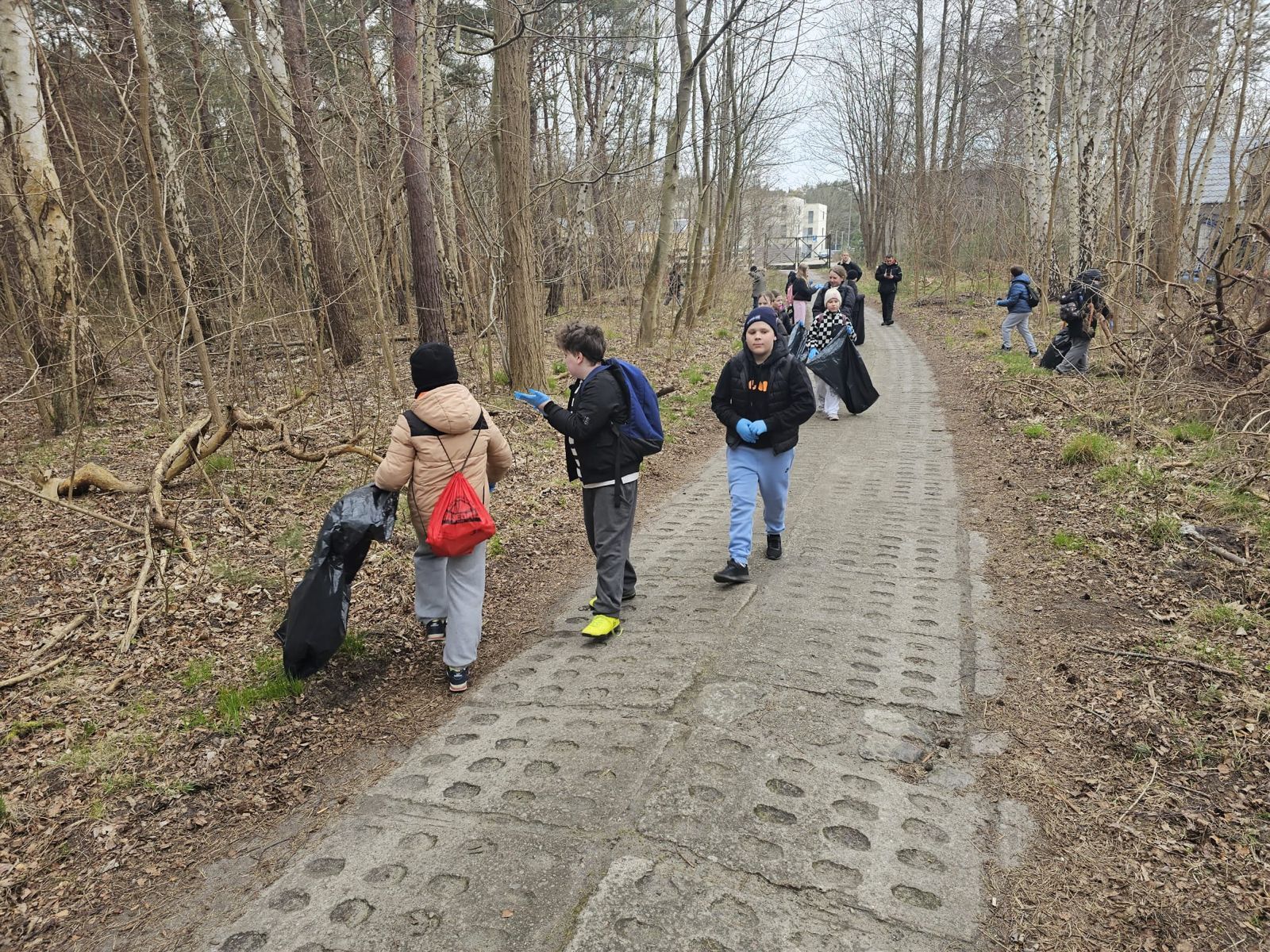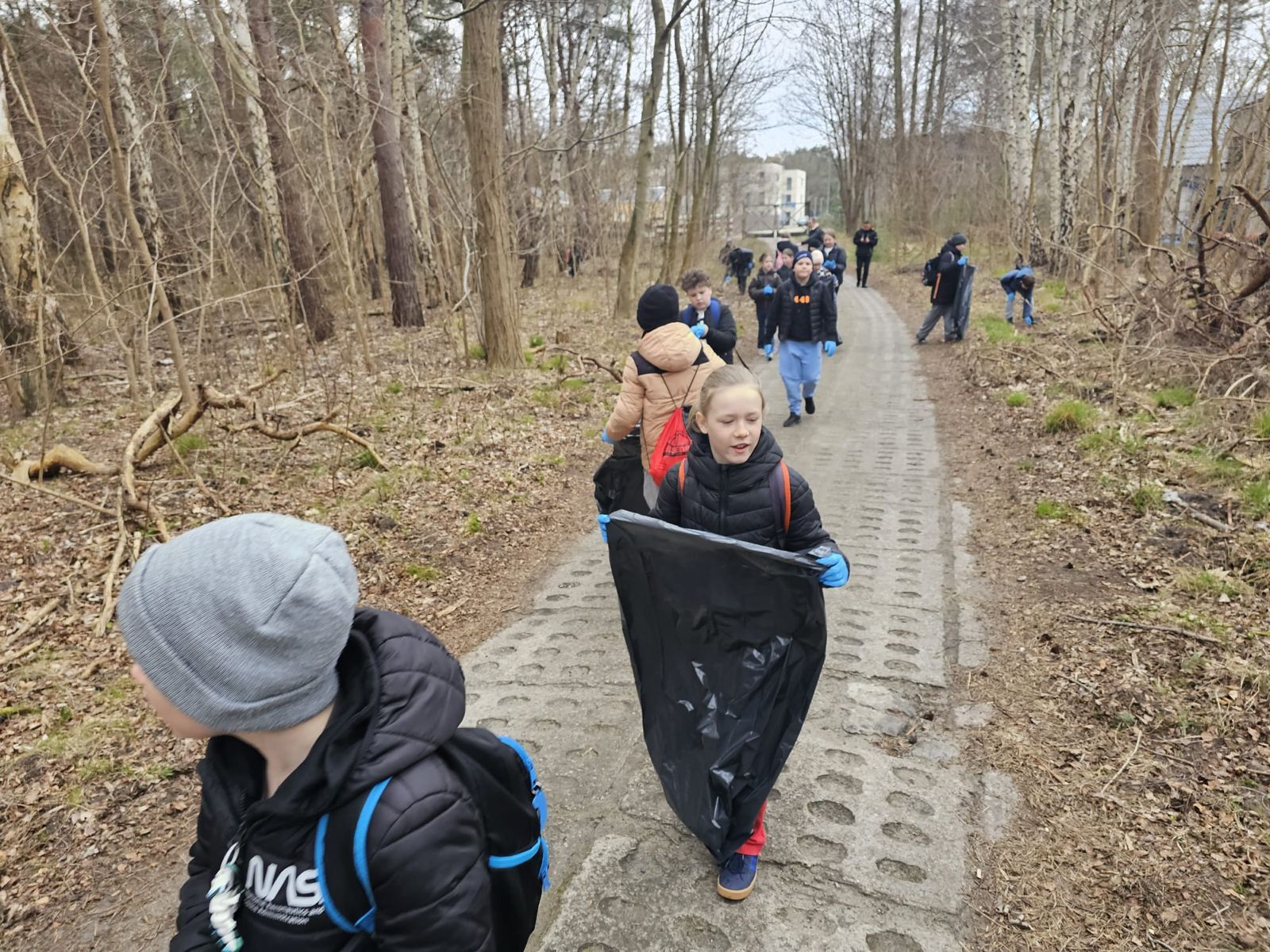 W drodze powrotnej uczniowie aktywnie włączyli się w sprzątanie plaży i pobliskiego lasu, dbając o środowisko naturalne. Dodatkową atrakcją było poszukiwanie bursztynu, które dla niektórych zakończyło się sukcesem i dostarczyło wielu emocji.