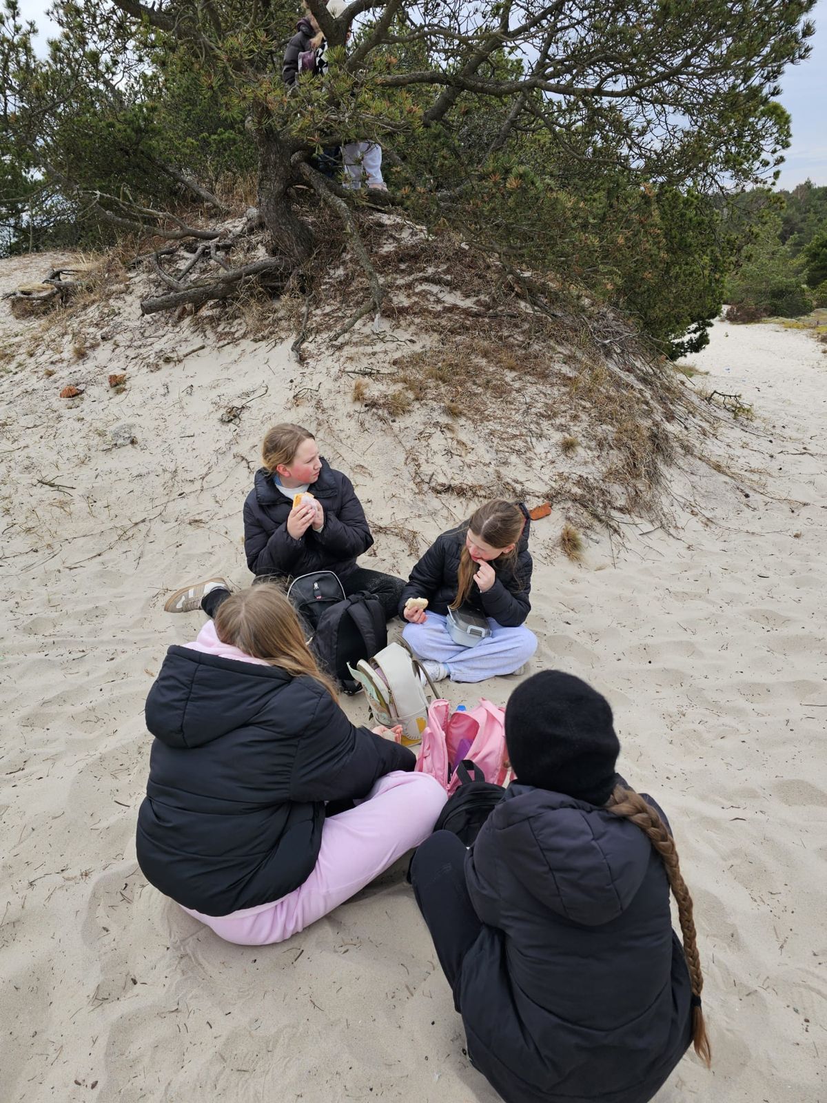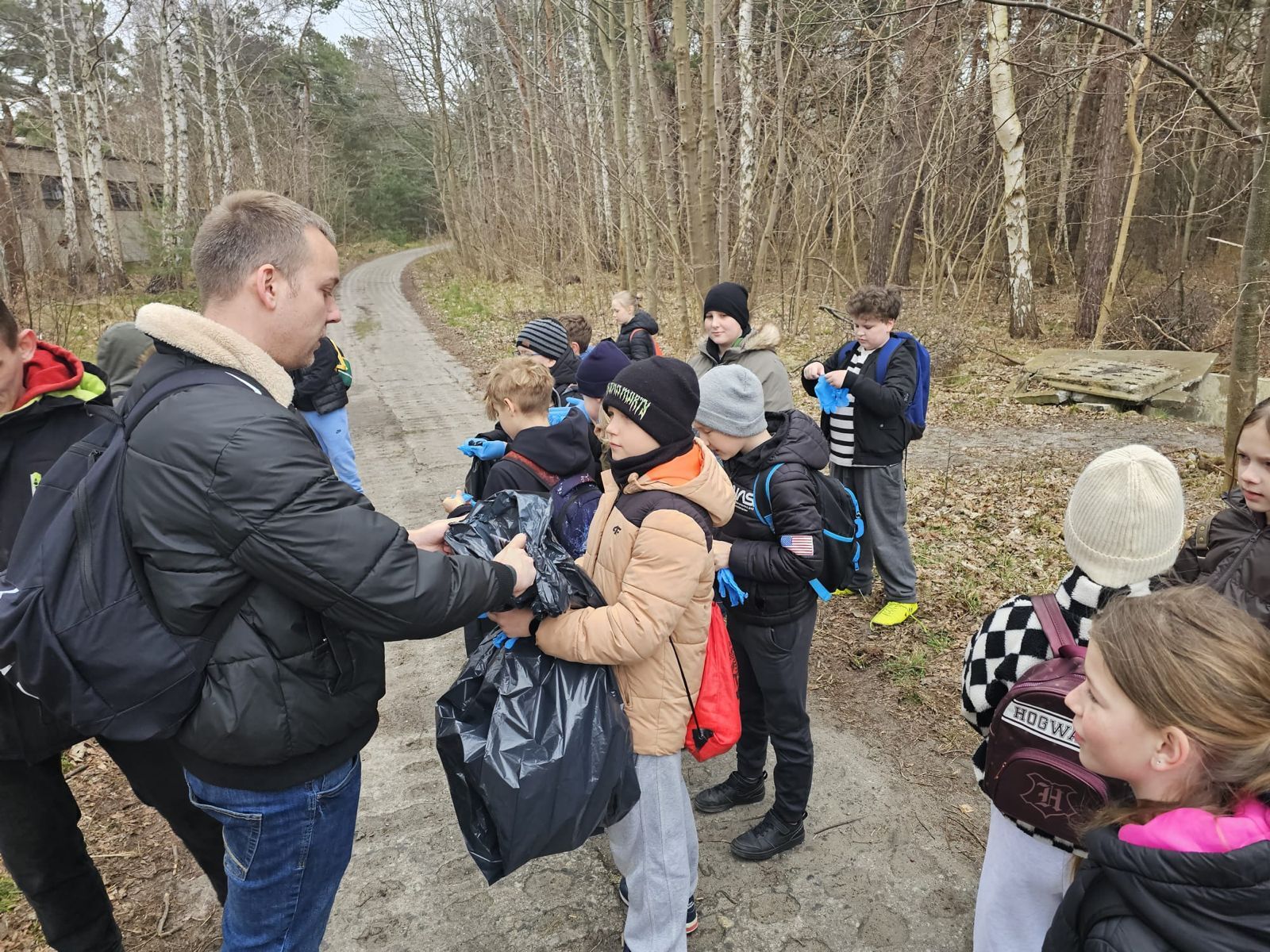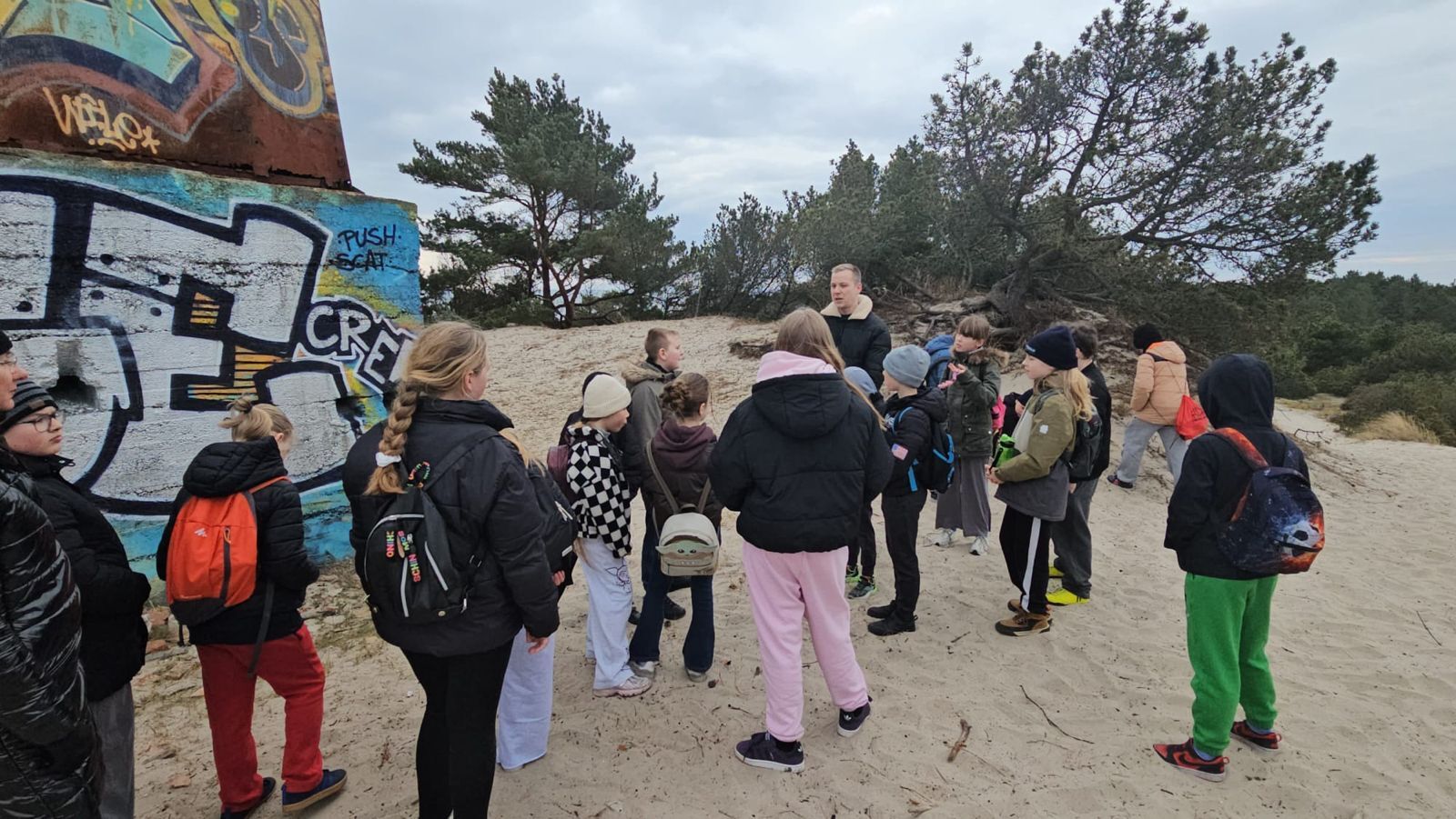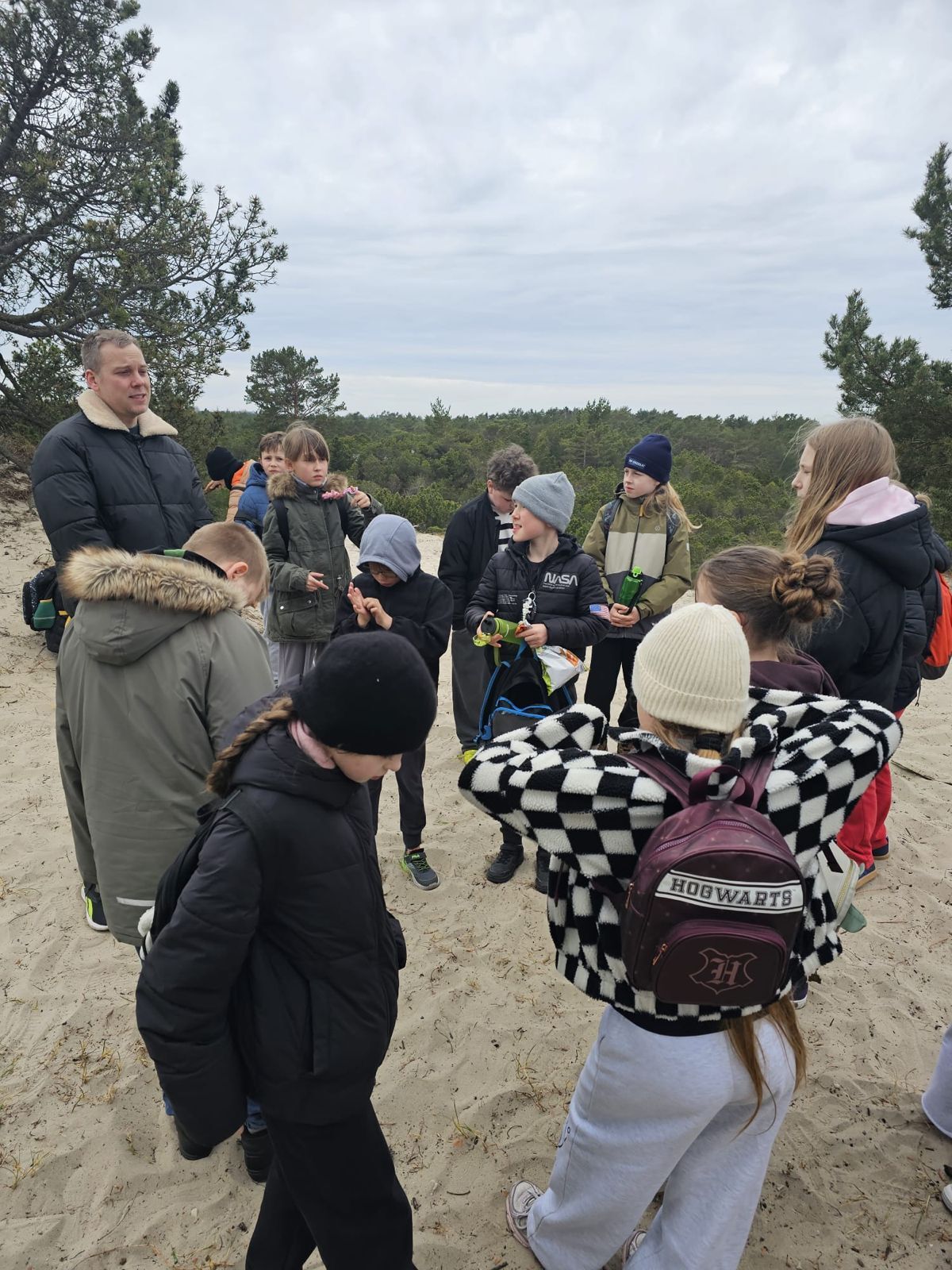 W drodze powrotnej uczniowie aktywnie włączyli się w sprzątanie plaży i pobliskiego lasu, dbając o środowisko naturalne. Dodatkową atrakcją było poszukiwanie bursztynu, które dla niektórych zakończyło się sukcesem i dostarczyło wielu emocji.
