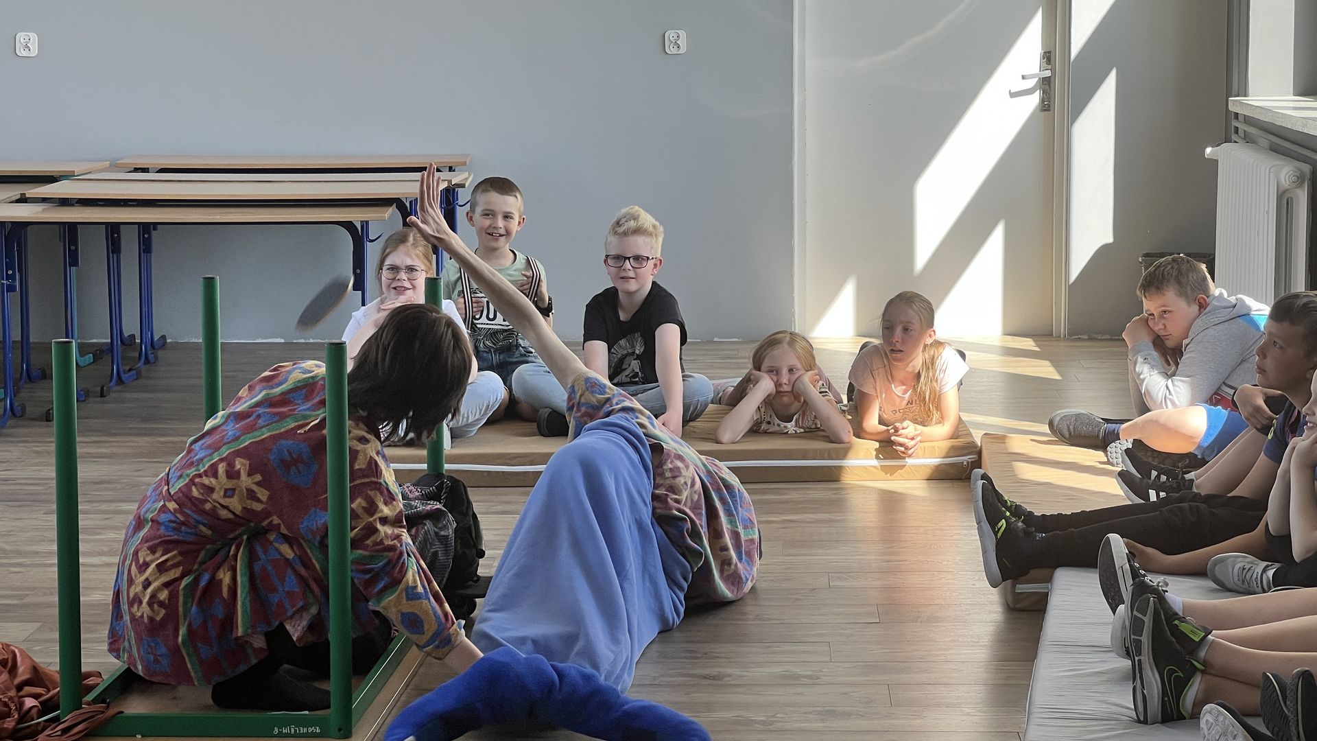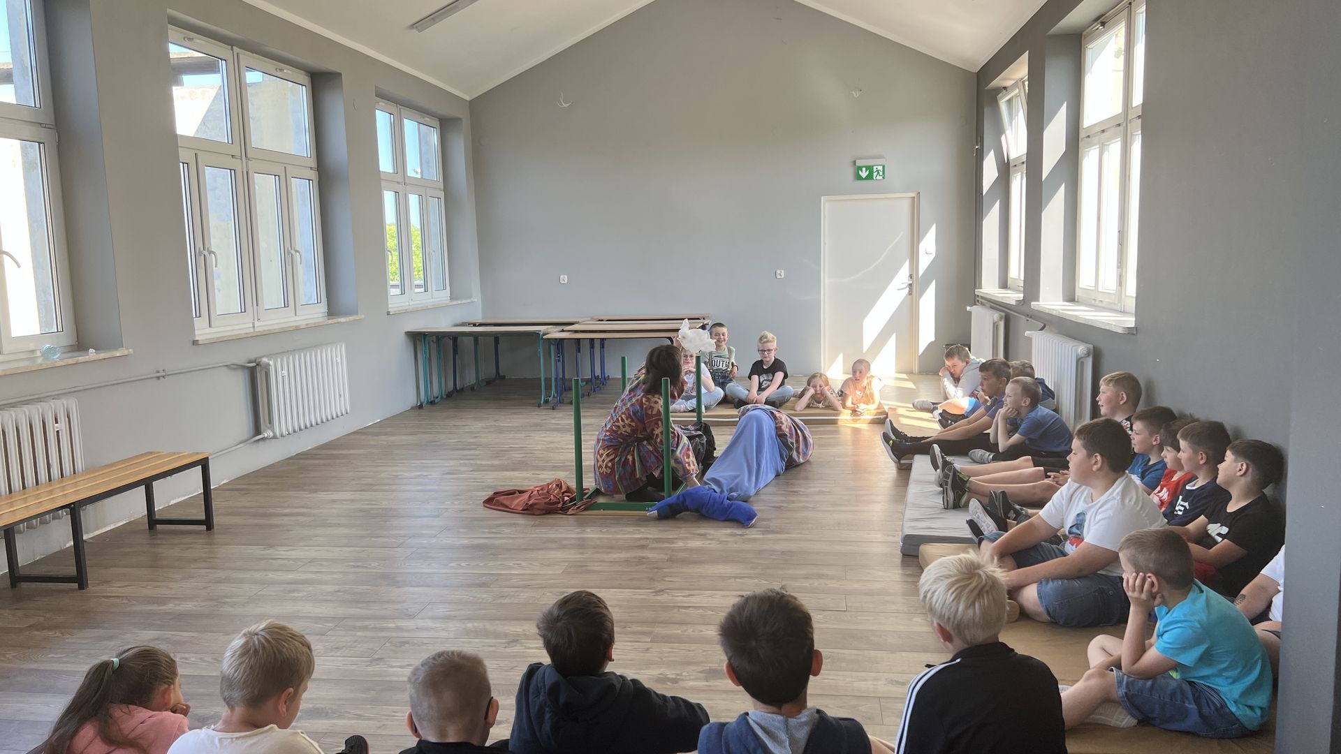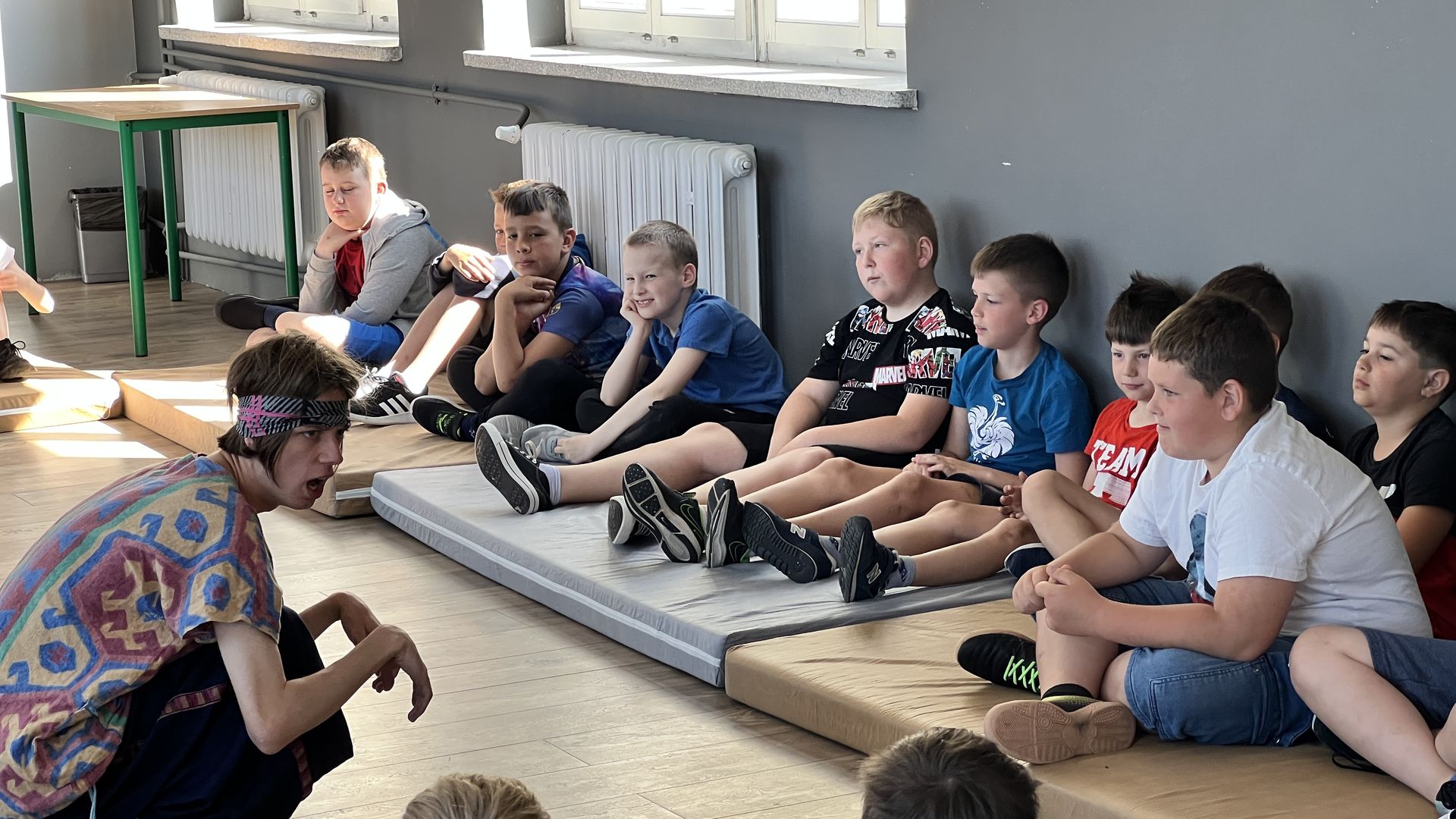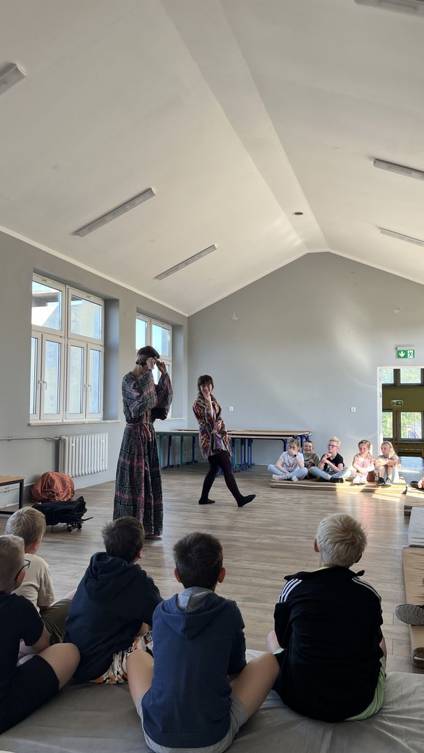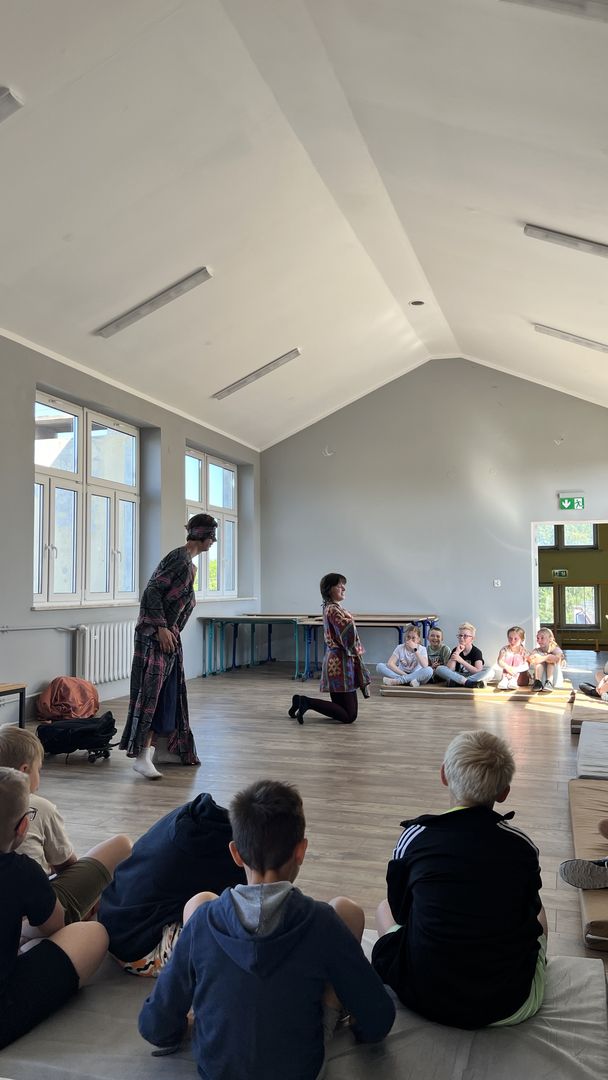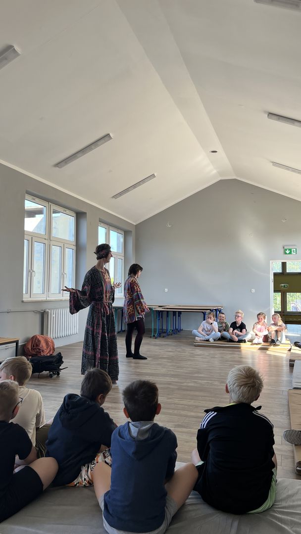 12 czerwca gościła w naszej szkole Fundacja Banina ze sztuką „Klimat” w reżyserii Bartka Miernika. Temat przedstawienia wpisał się do szkolnych działań sprzyjających wdrażaniu do świadomego i odpowiedzialnego gospodarowania na planecie Ziemi - domu wszystkich stworzeń, dużych i małych. Bohaterowie, Matylda i Dawid, w postacie których wcielili się Alicja Stankiewicz i Denis Jakubowski, otworzyli przed publicznością wrota wyobraźni, by w tej podróży doświadczyć problemów zagrożonego świata przyrody i nauczyć się pokonywać trudności, wspomagać, aktywnie podejmować nawet małe zadania w ważnej sprawie.