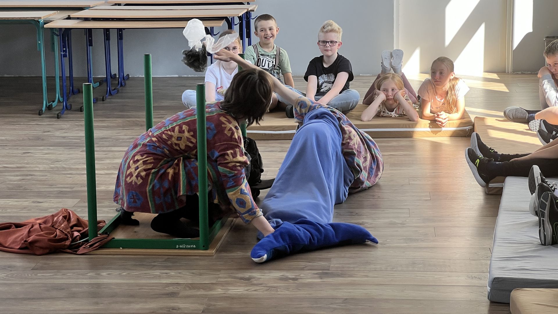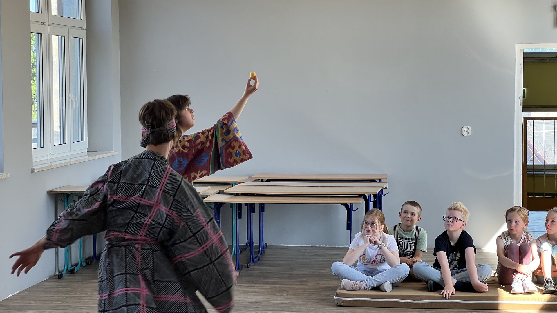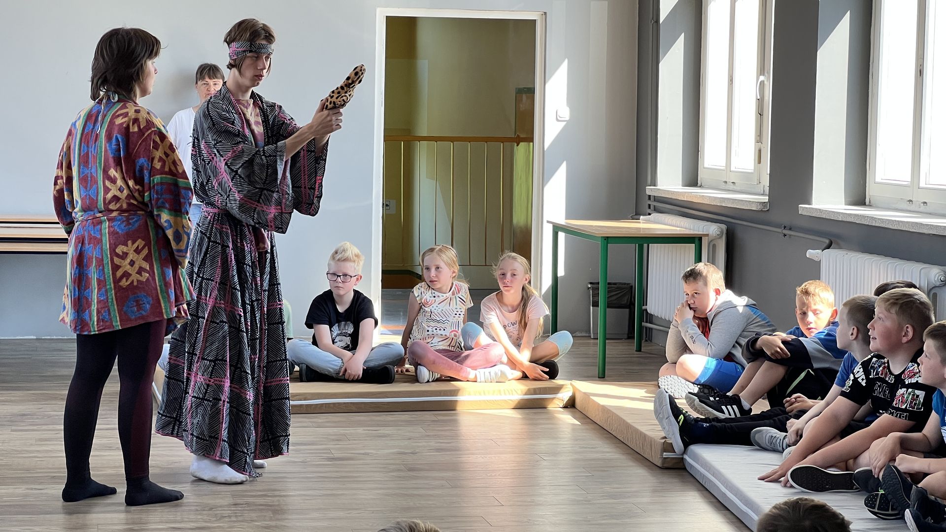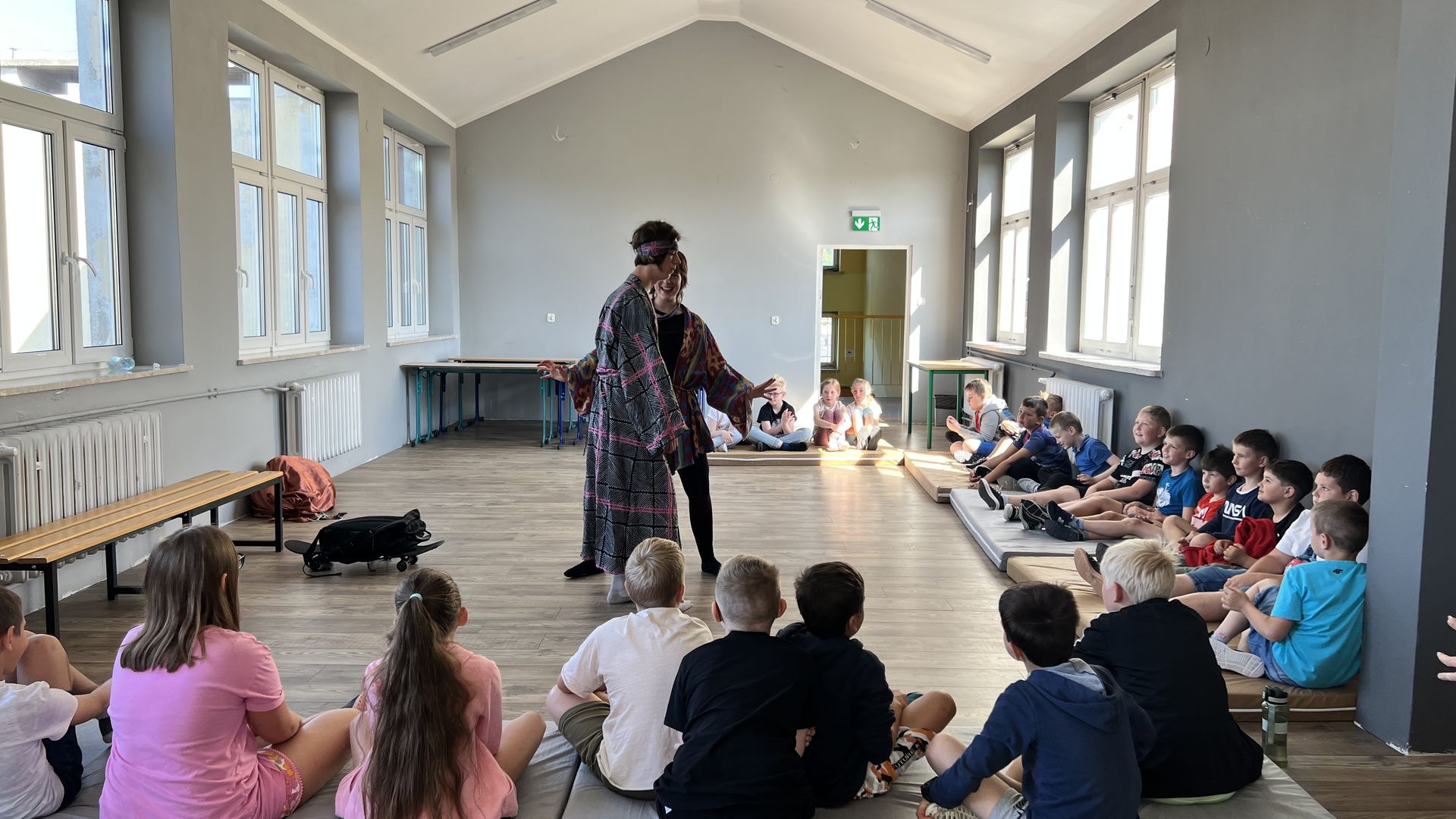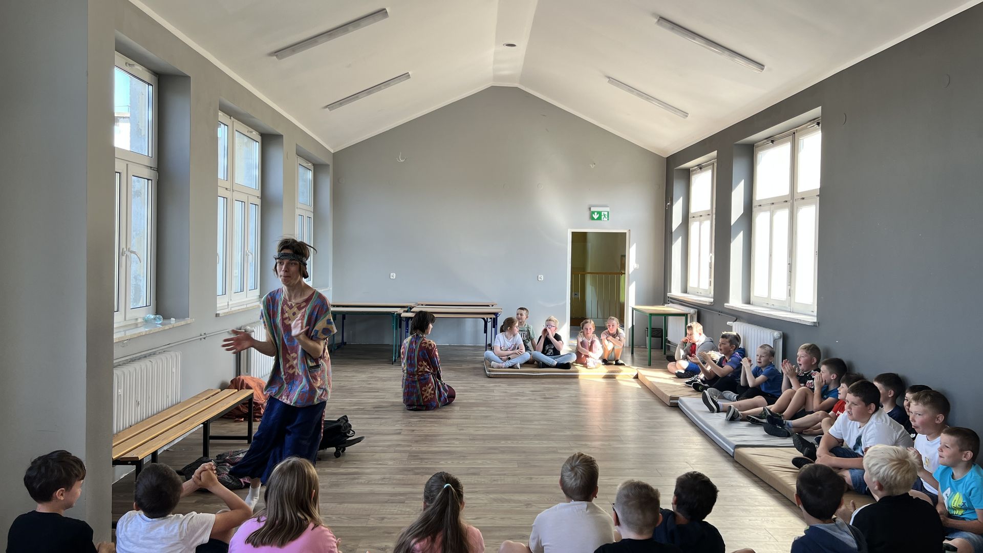 12 czerwca gościła w naszej szkole Fundacja Banina ze sztuką „Klimat” w reżyserii Bartka Miernika. Temat przedstawienia wpisał się do szkolnych działań sprzyjających wdrażaniu do świadomego i odpowiedzialnego gospodarowania na planecie Ziemi - domu wszystkich stworzeń, dużych i małych. Bohaterowie, Matylda i Dawid, w postacie których wcielili się Alicja Stankiewicz i Denis Jakubowski, otworzyli przed publicznością wrota wyobraźni, by w tej podróży doświadczyć problemów zagrożonego świata przyrody i nauczyć się pokonywać trudności, wspomagać, aktywnie podejmować nawet małe zadania w ważnej sprawie.