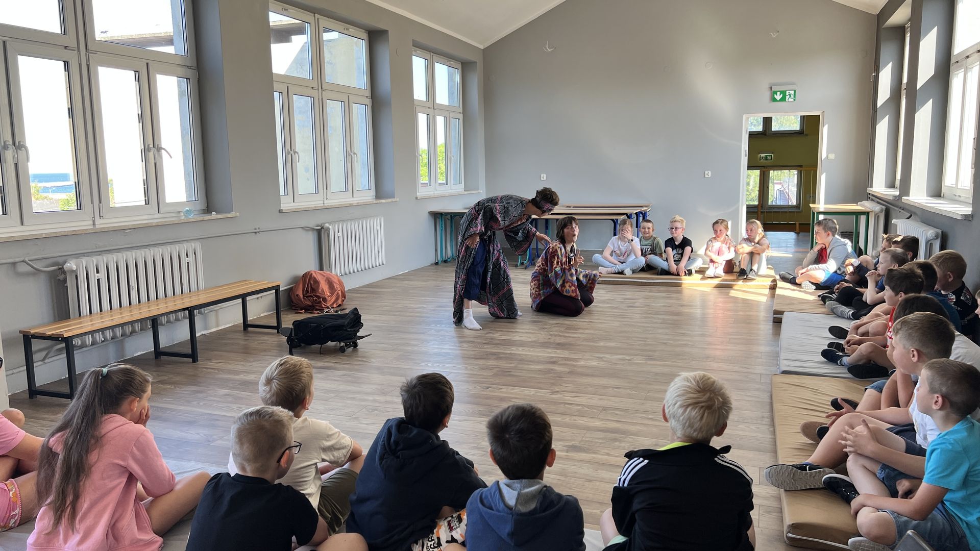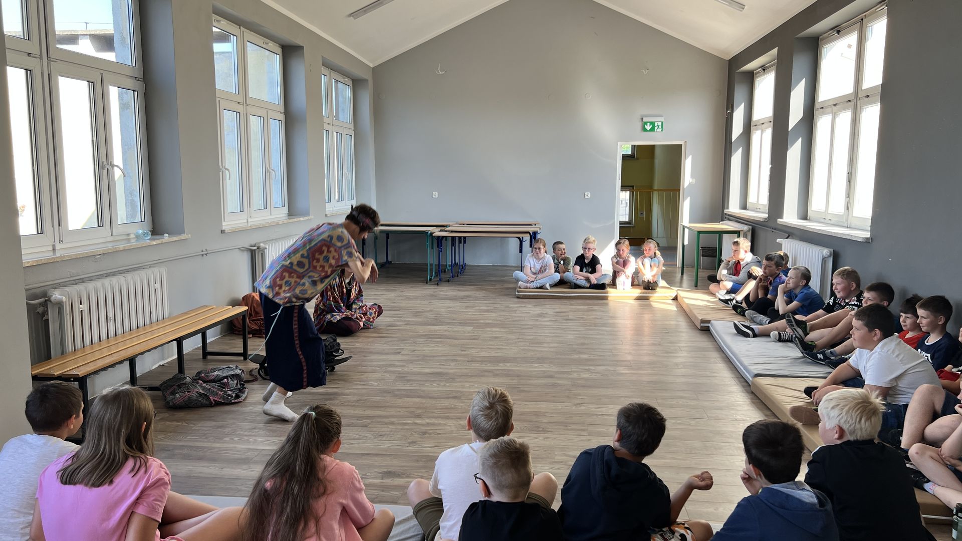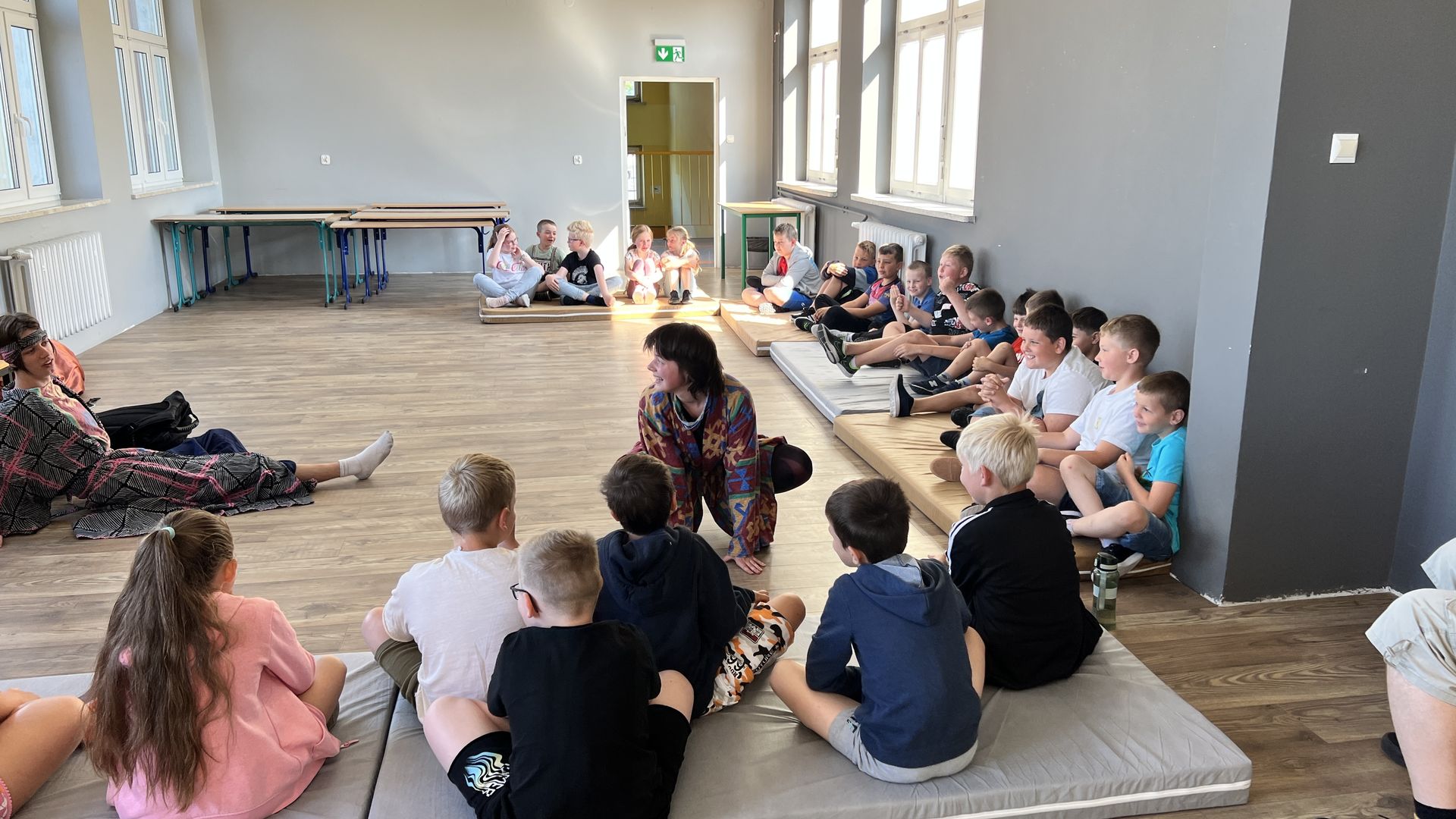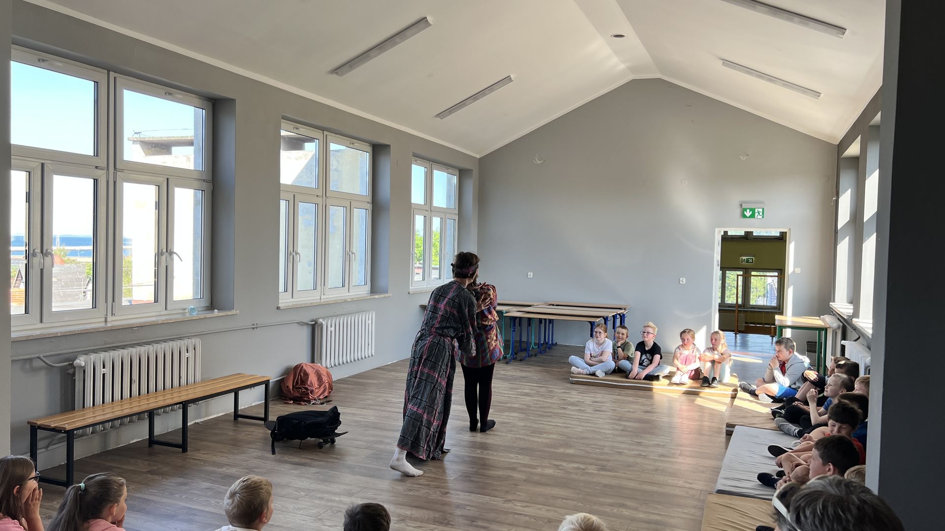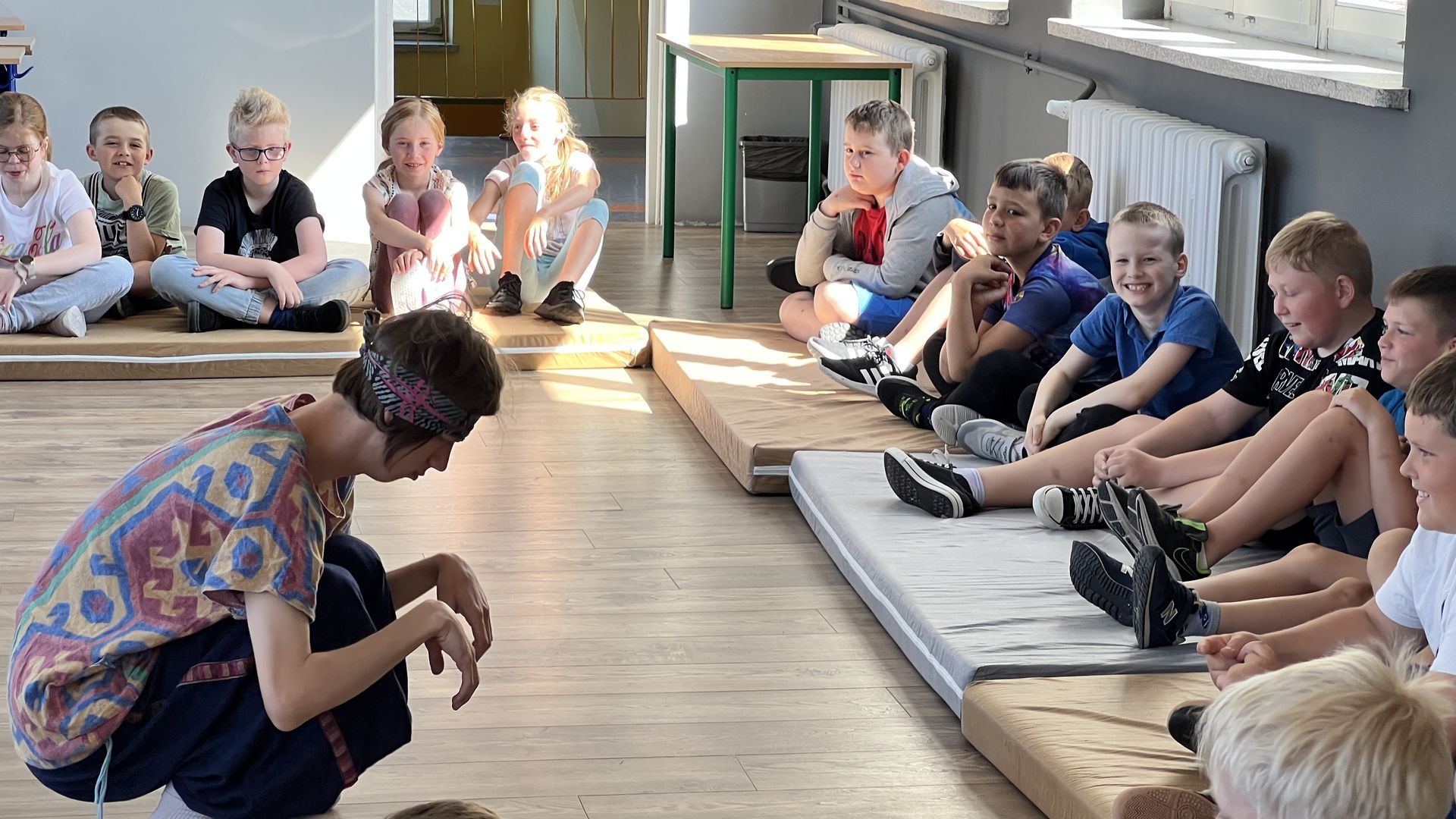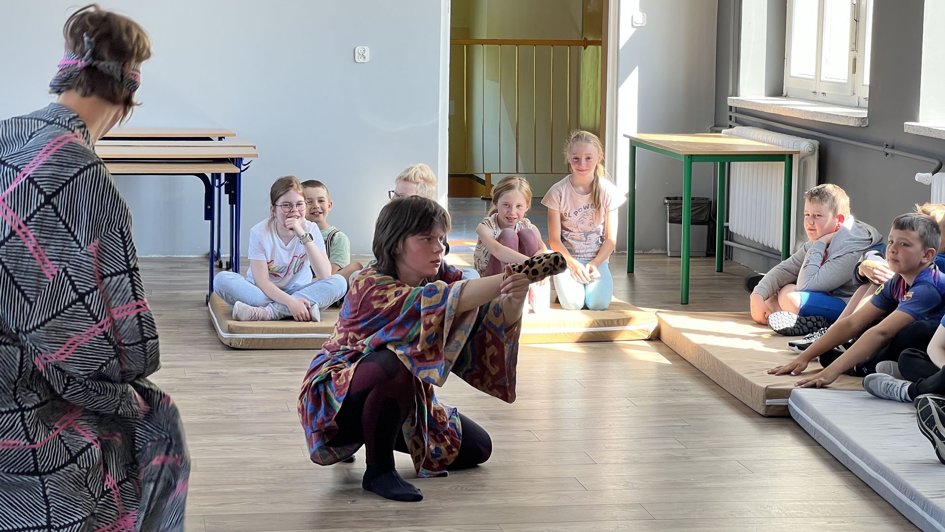 12 czerwca gościła w naszej szkole Fundacja Banina ze sztuką „Klimat” w reżyserii Bartka Miernika. Temat przedstawienia wpisał się do szkolnych działań sprzyjających wdrażaniu do świadomego i odpowiedzialnego gospodarowania na planecie Ziemi - domu wszystkich stworzeń, dużych i małych. Bohaterowie, Matylda i Dawid, w postacie których wcielili się Alicja Stankiewicz i Denis Jakubowski, otworzyli przed publicznością wrota wyobraźni, by w tej podróży doświadczyć problemów zagrożonego świata przyrody i nauczyć się pokonywać trudności, wspomagać, aktywnie podejmować nawet małe zadania w ważnej sprawie.