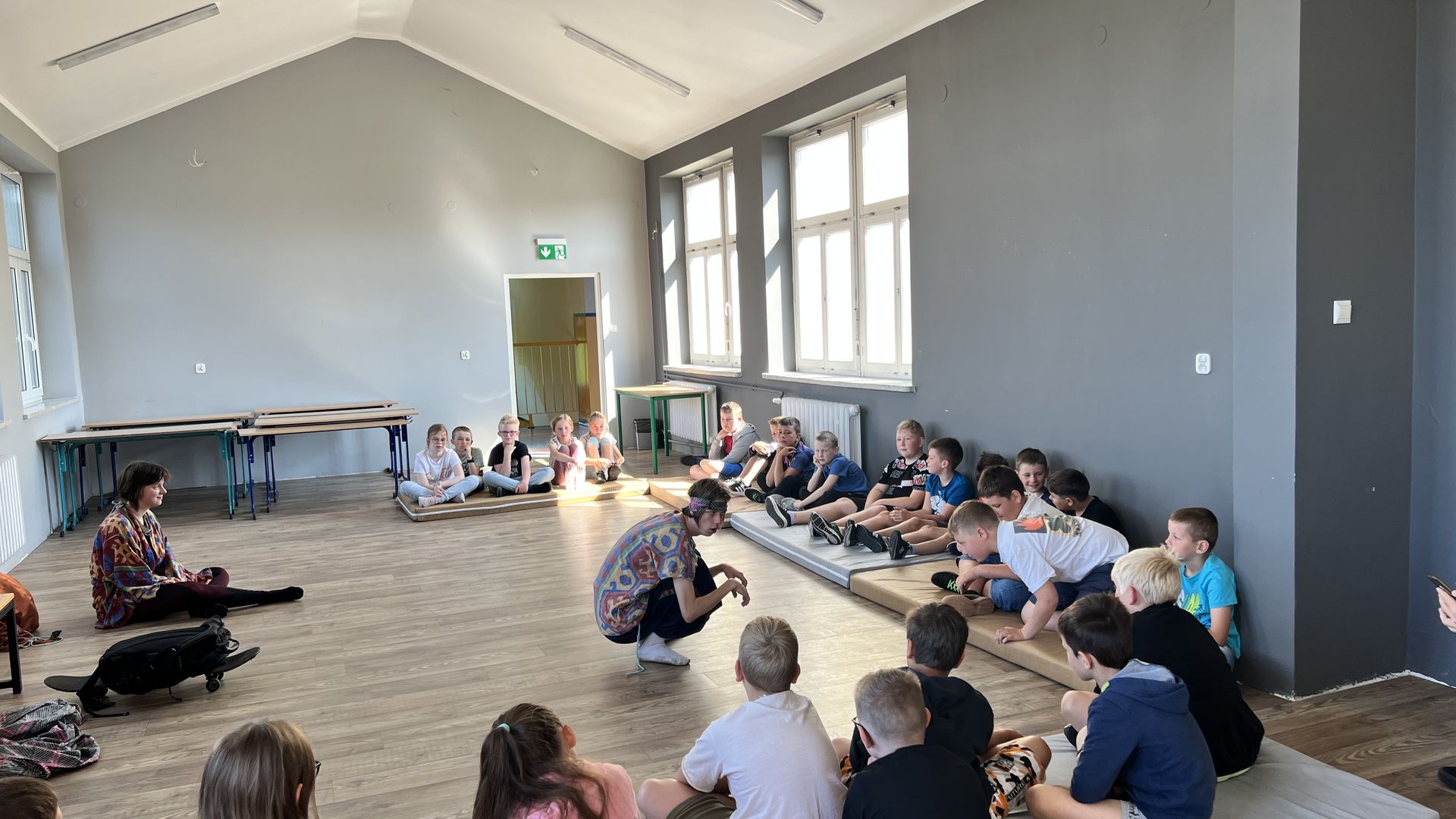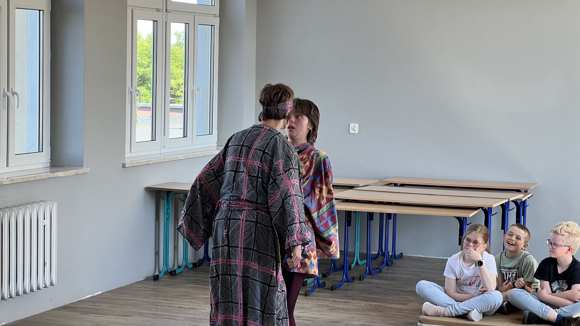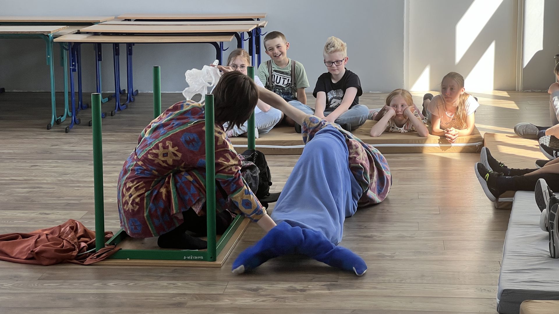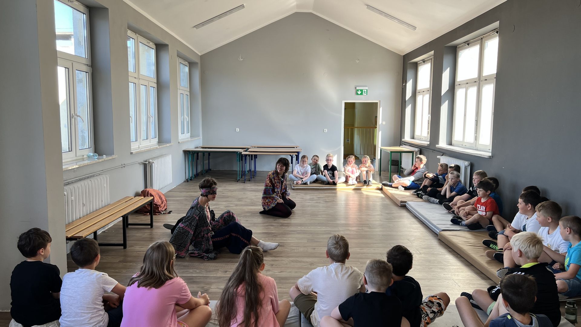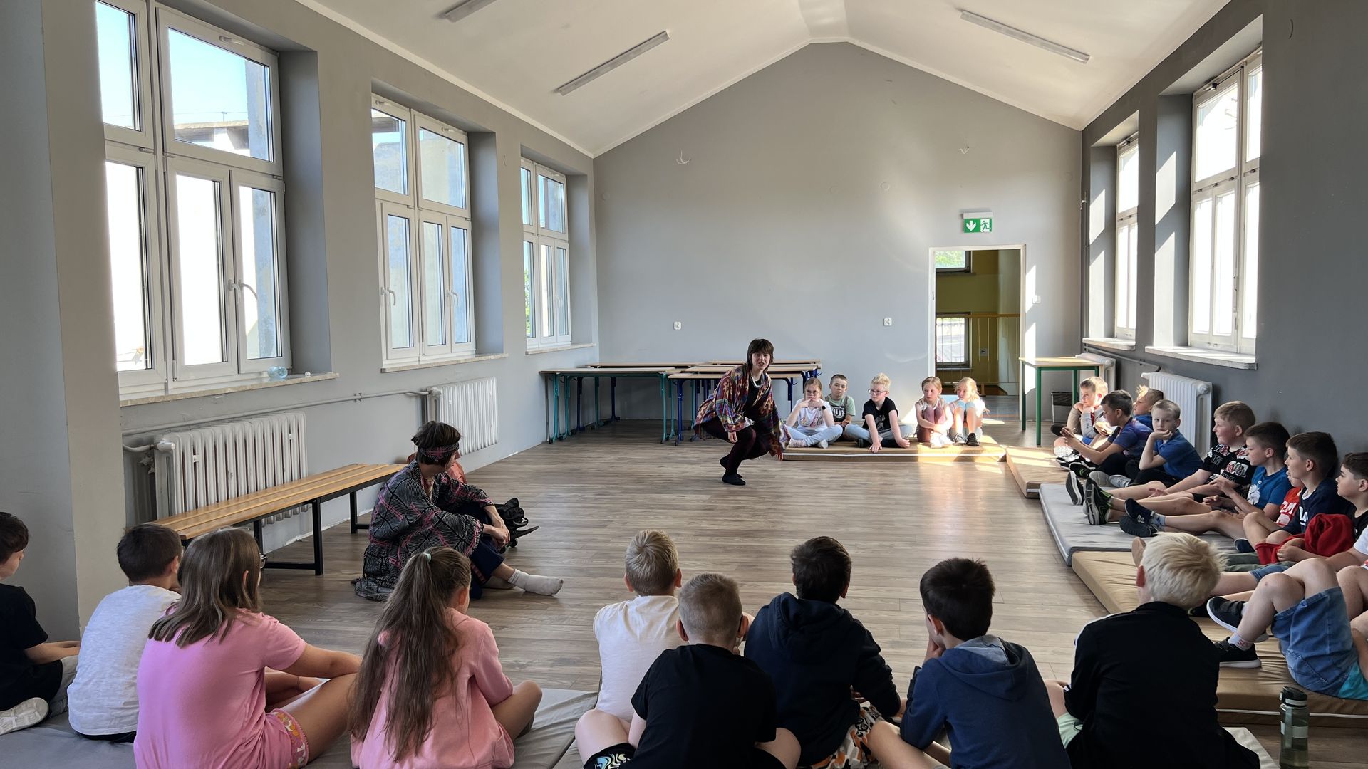 12 czerwca gościła w naszej szkole Fundacja Banina ze sztuką „Klimat” w reżyserii Bartka Miernika. Temat przedstawienia wpisał się do szkolnych działań sprzyjających wdrażaniu do świadomego i odpowiedzialnego gospodarowania na planecie Ziemi - domu wszystkich stworzeń, dużych i małych. Bohaterowie, Matylda i Dawid, w postacie których wcielili się Alicja Stankiewicz i Denis Jakubowski, otworzyli przed publicznością wrota wyobraźni, by w tej podróży doświadczyć problemów zagrożonego świata przyrody i nauczyć się pokonywać trudności, wspomagać, aktywnie podejmować nawet małe zadania w ważnej sprawie.