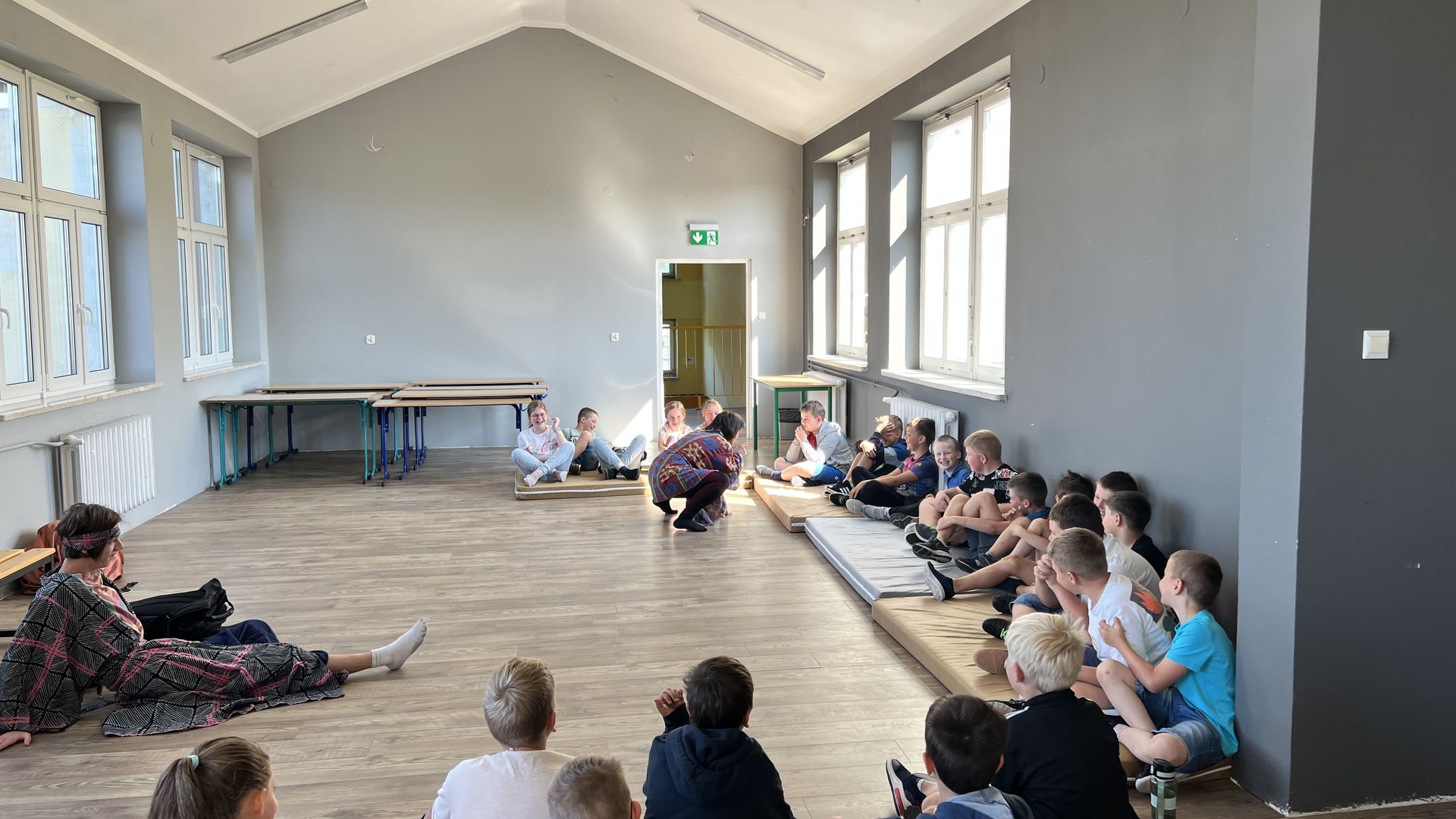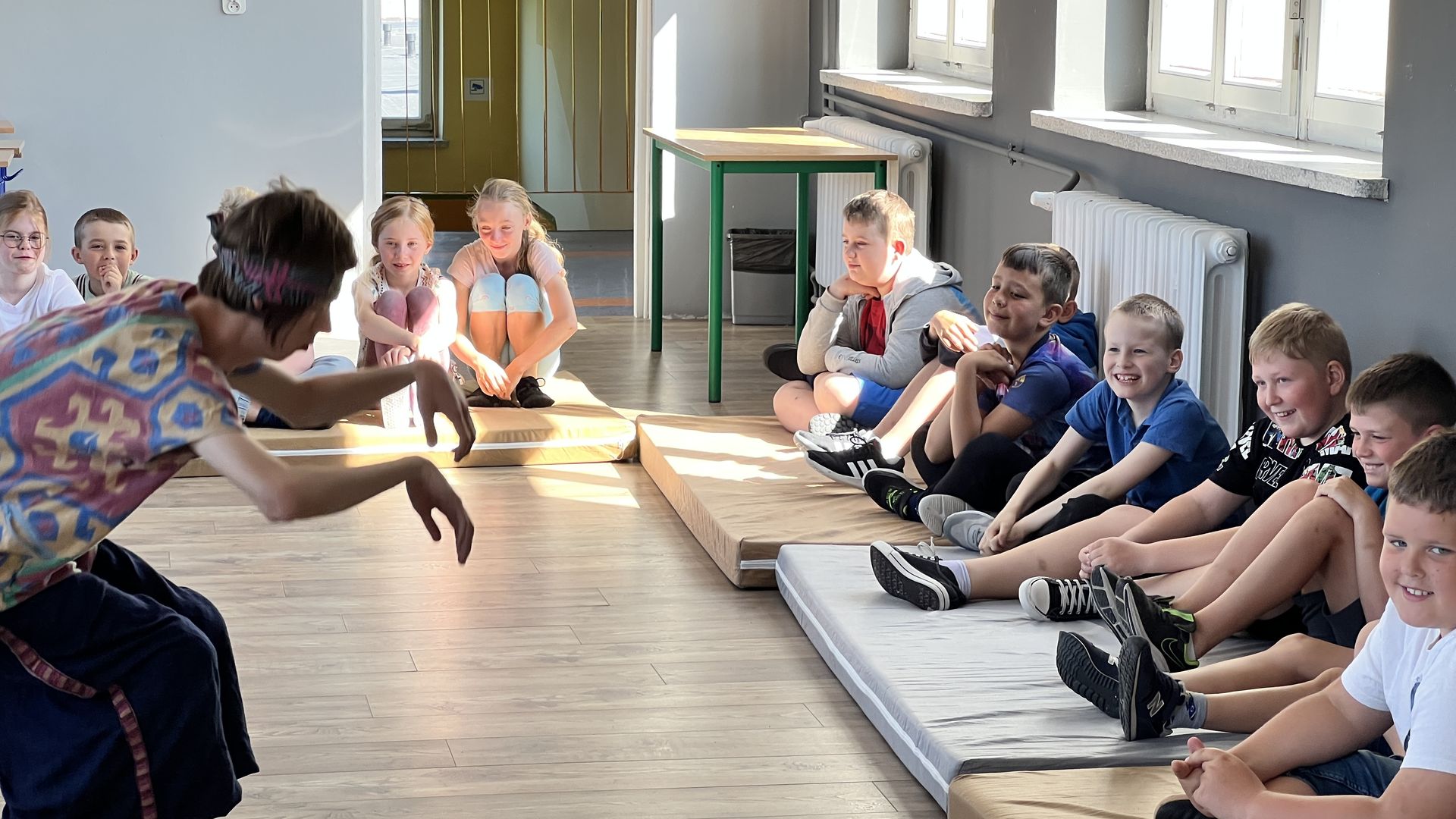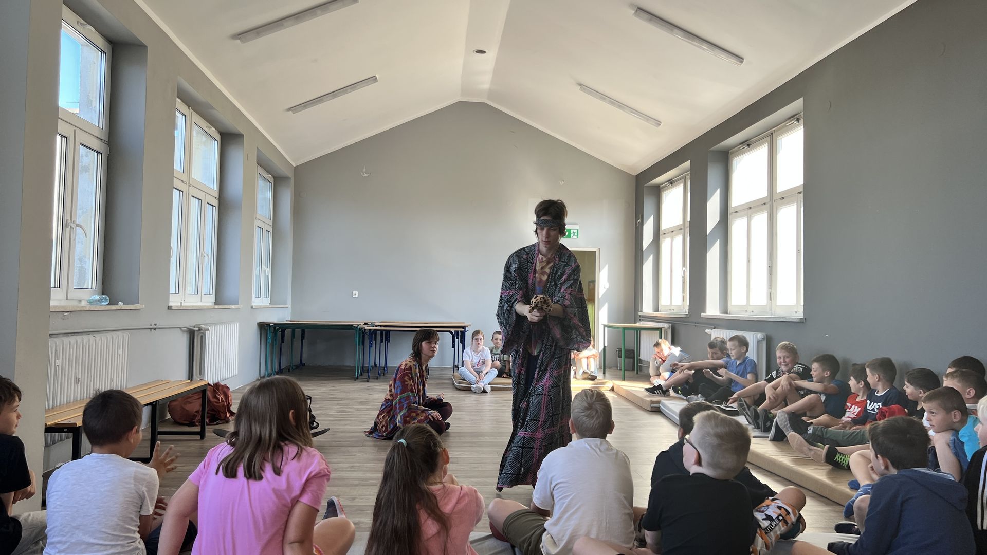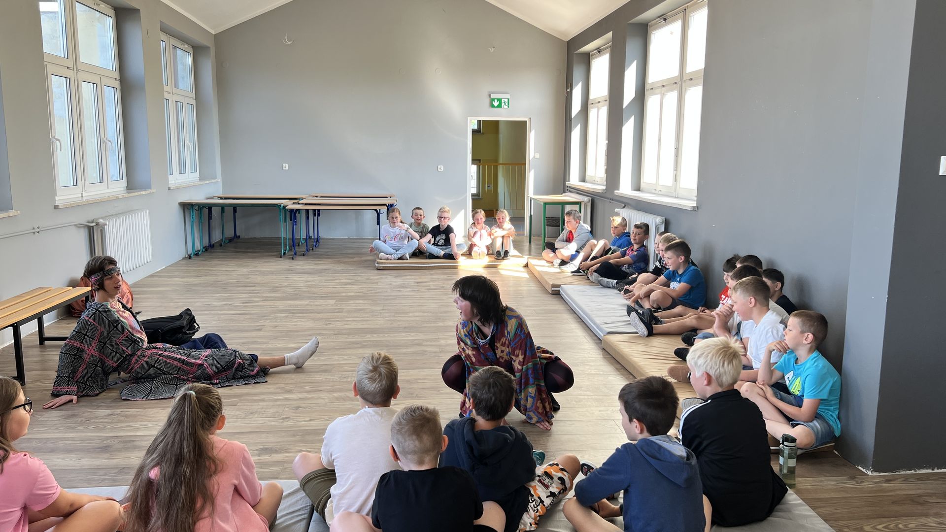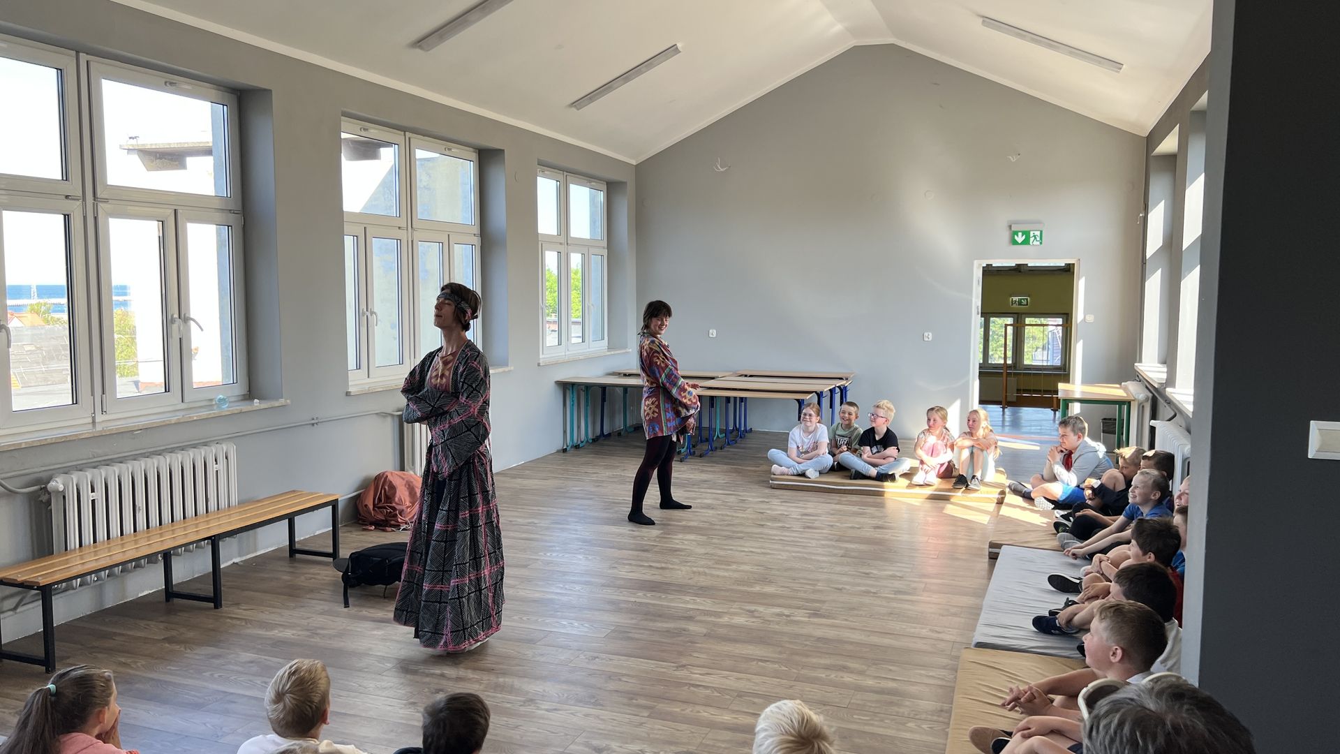 12 czerwca gościła w naszej szkole Fundacja Banina ze sztuką „Klimat” w reżyserii Bartka Miernika. Temat przedstawienia wpisał się do szkolnych działań sprzyjających wdrażaniu do świadomego i odpowiedzialnego gospodarowania na planecie Ziemi - domu wszystkich stworzeń, dużych i małych. Bohaterowie, Matylda i Dawid, w postacie których wcielili się Alicja Stankiewicz i Denis Jakubowski, otworzyli przed publicznością wrota wyobraźni, by w tej podróży doświadczyć problemów zagrożonego świata przyrody i nauczyć się pokonywać trudności, wspomagać, aktywnie podejmować nawet małe zadania w ważnej sprawie.