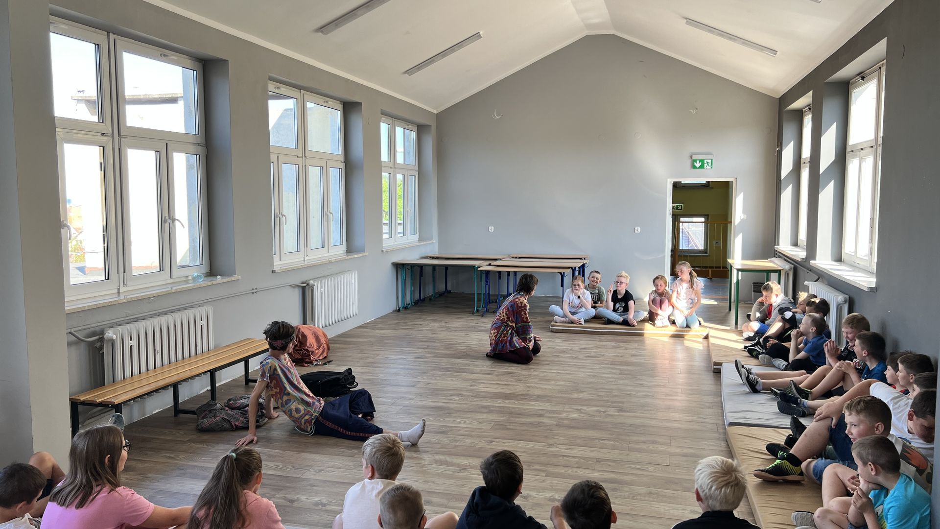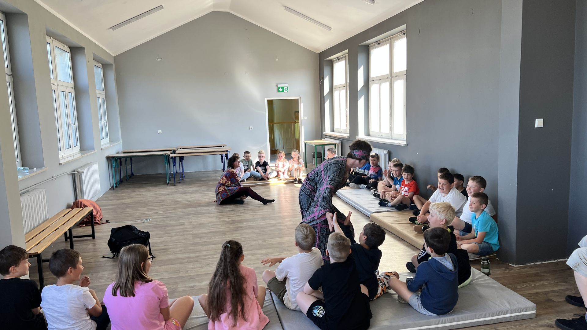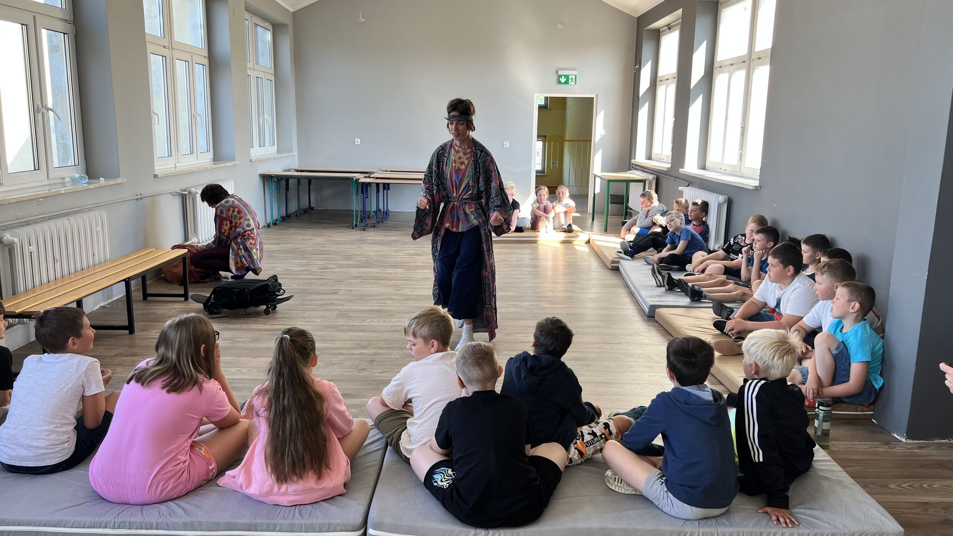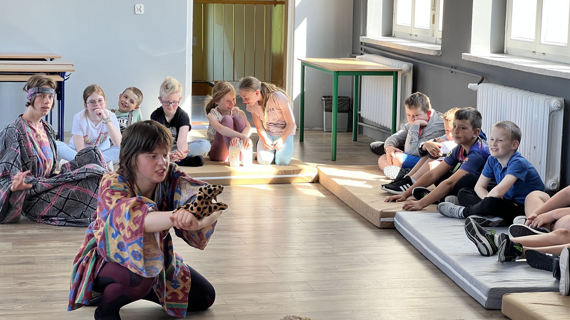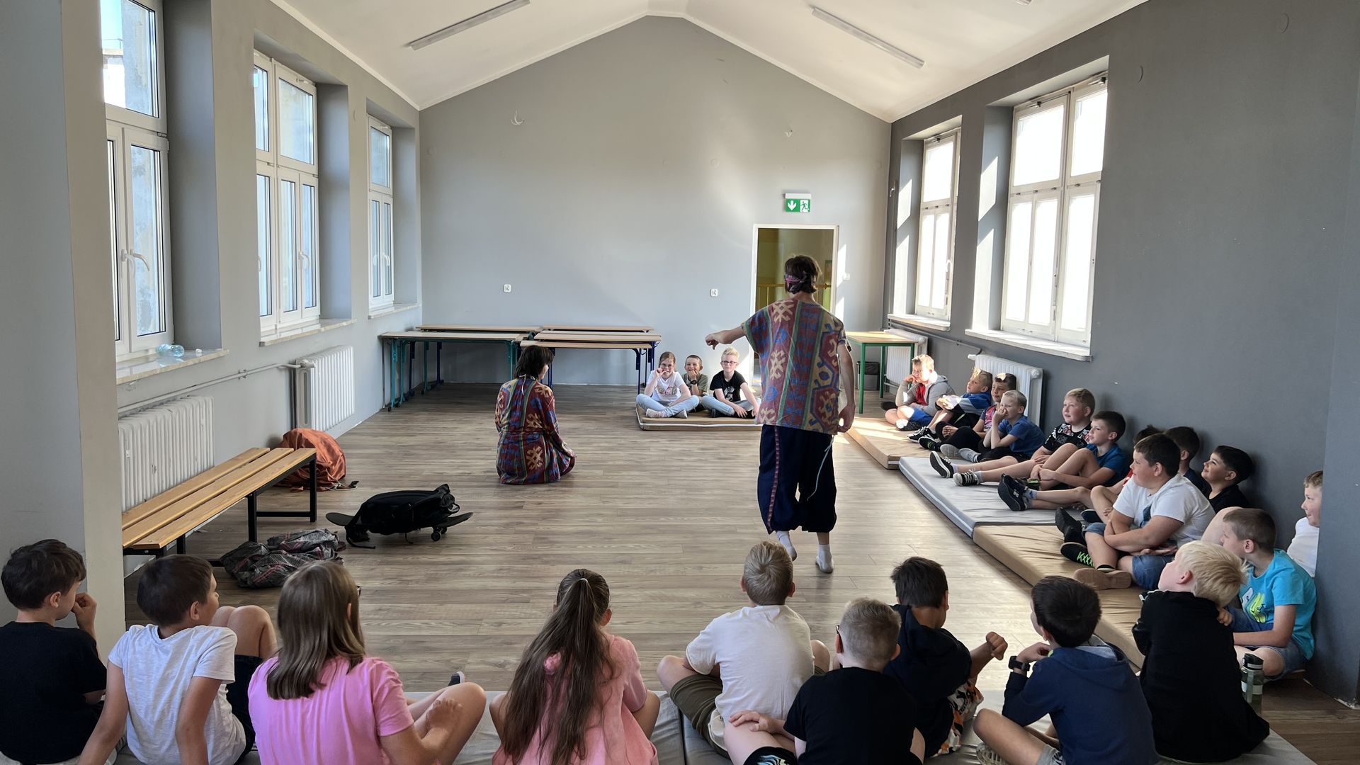 12 czerwca gościła w naszej szkole Fundacja Banina ze sztuką „Klimat” w reżyserii Bartka Miernika. Temat przedstawienia wpisał się do szkolnych działań sprzyjających wdrażaniu do świadomego i odpowiedzialnego gospodarowania na planecie Ziemi - domu wszystkich stworzeń, dużych i małych. Bohaterowie, Matylda i Dawid, w postacie których wcielili się Alicja Stankiewicz i Denis Jakubowski, otworzyli przed publicznością wrota wyobraźni, by w tej podróży doświadczyć problemów zagrożonego świata przyrody i nauczyć się pokonywać trudności, wspomagać, aktywnie podejmować nawet małe zadania w ważnej sprawie.