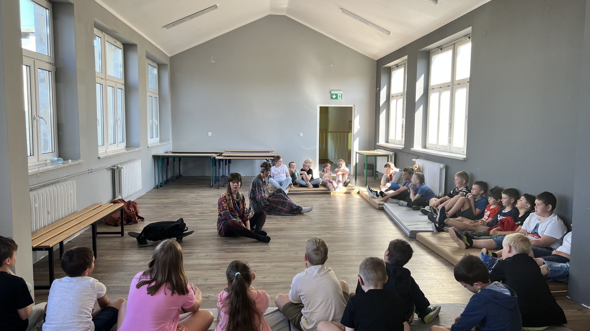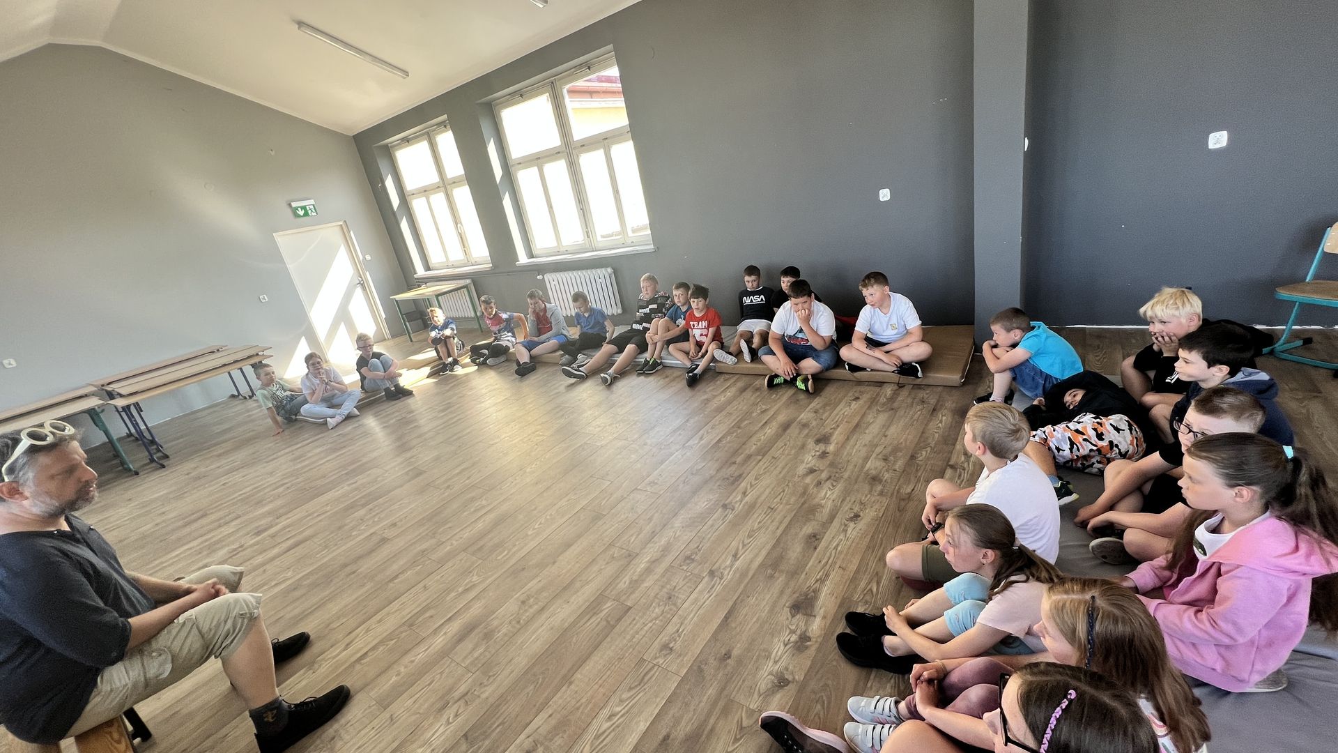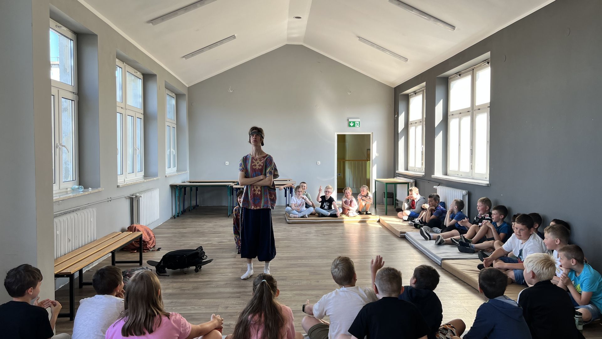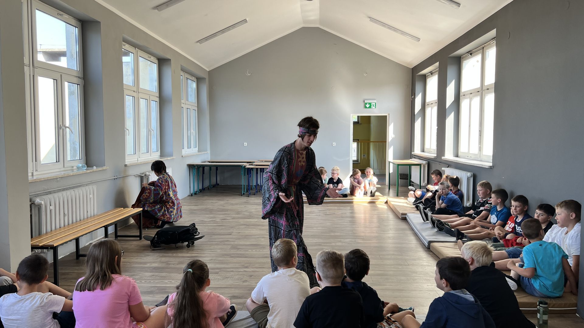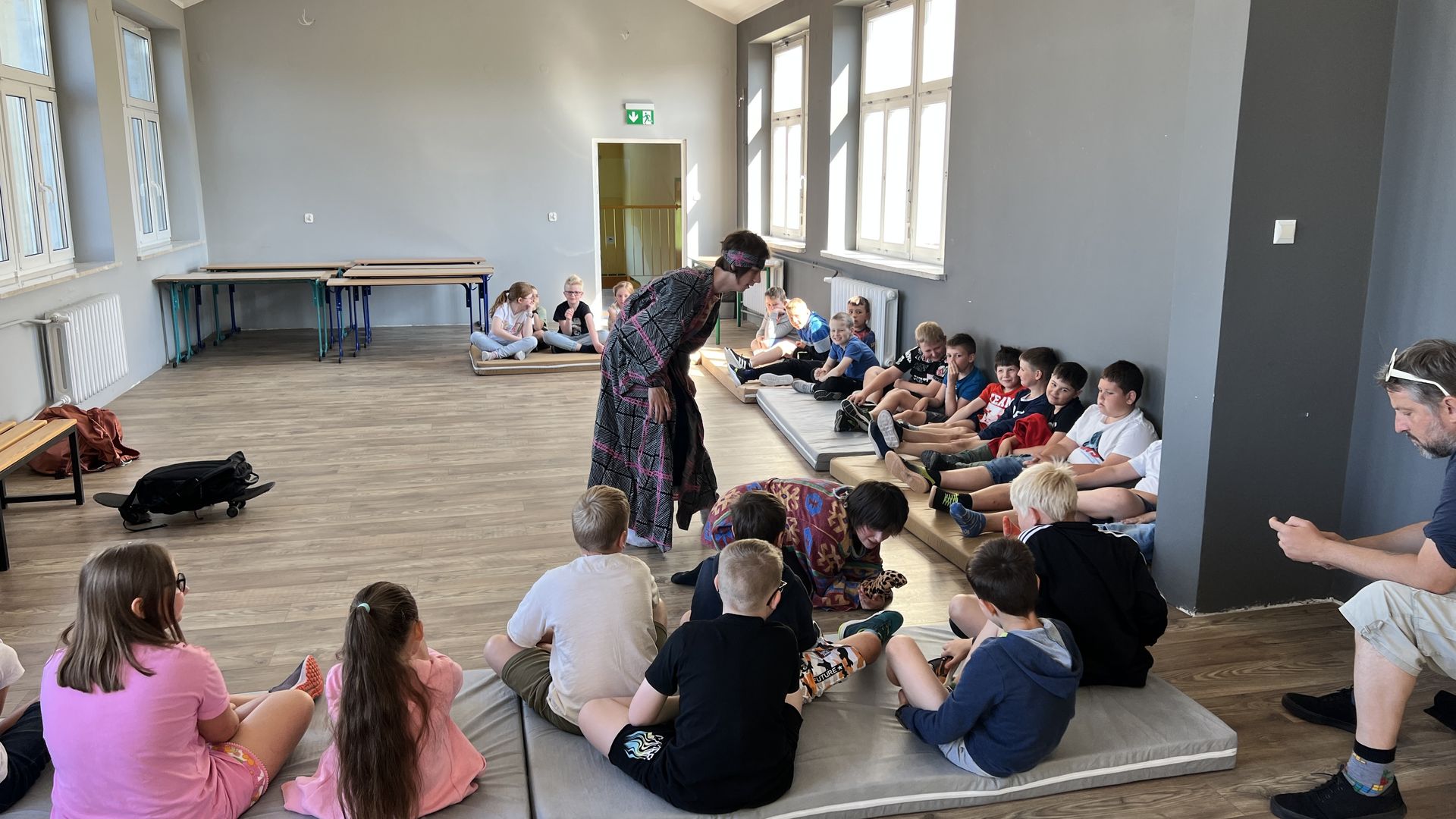 12 czerwca gościła w naszej szkole Fundacja Banina ze sztuką „Klimat” w reżyserii Bartka Miernika. Temat przedstawienia wpisał się do szkolnych działań sprzyjających wdrażaniu do świadomego i odpowiedzialnego gospodarowania na planecie Ziemi - domu wszystkich stworzeń, dużych i małych. Bohaterowie, Matylda i Dawid, w postacie których wcielili się Alicja Stankiewicz i Denis Jakubowski, otworzyli przed publicznością wrota wyobraźni, by w tej podróży doświadczyć problemów zagrożonego świata przyrody i nauczyć się pokonywać trudności, wspomagać, aktywnie podejmować nawet małe zadania w ważnej sprawie.