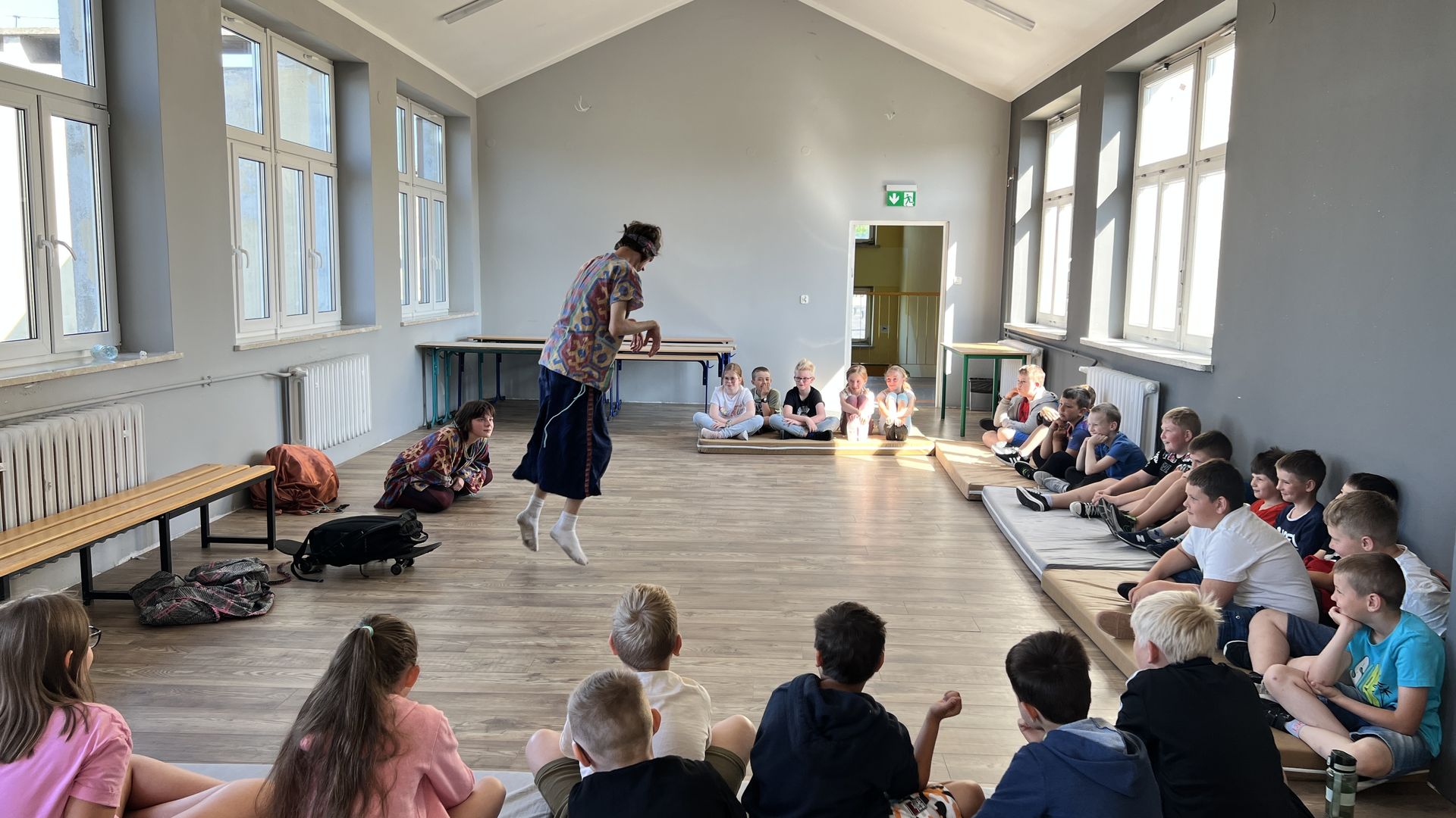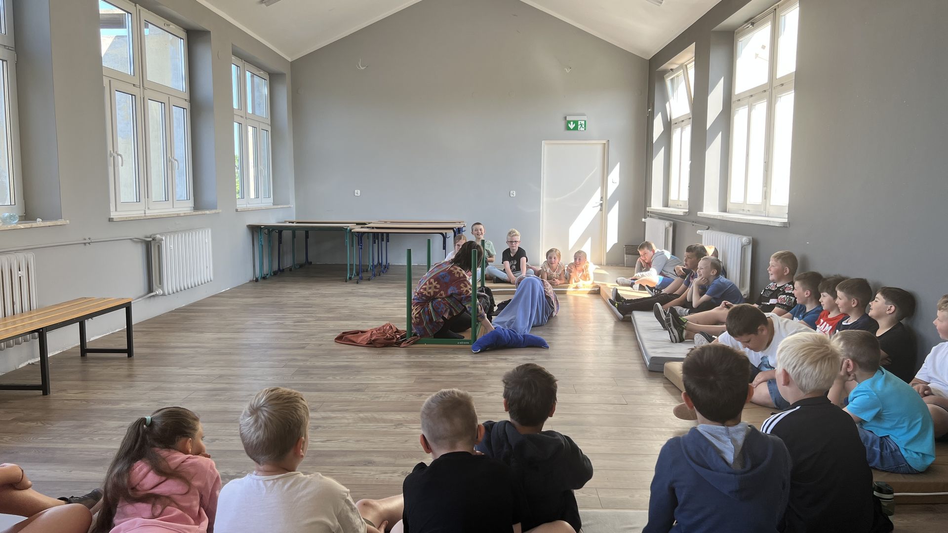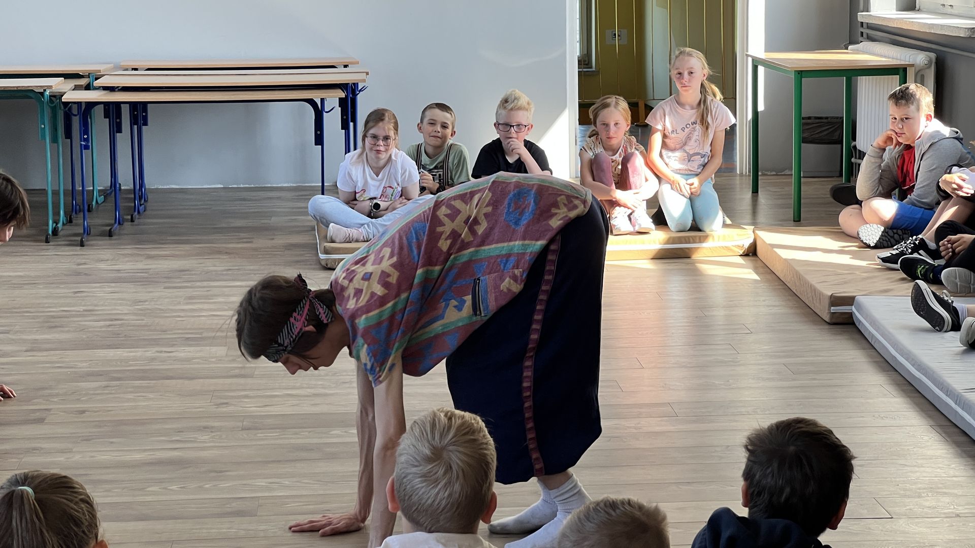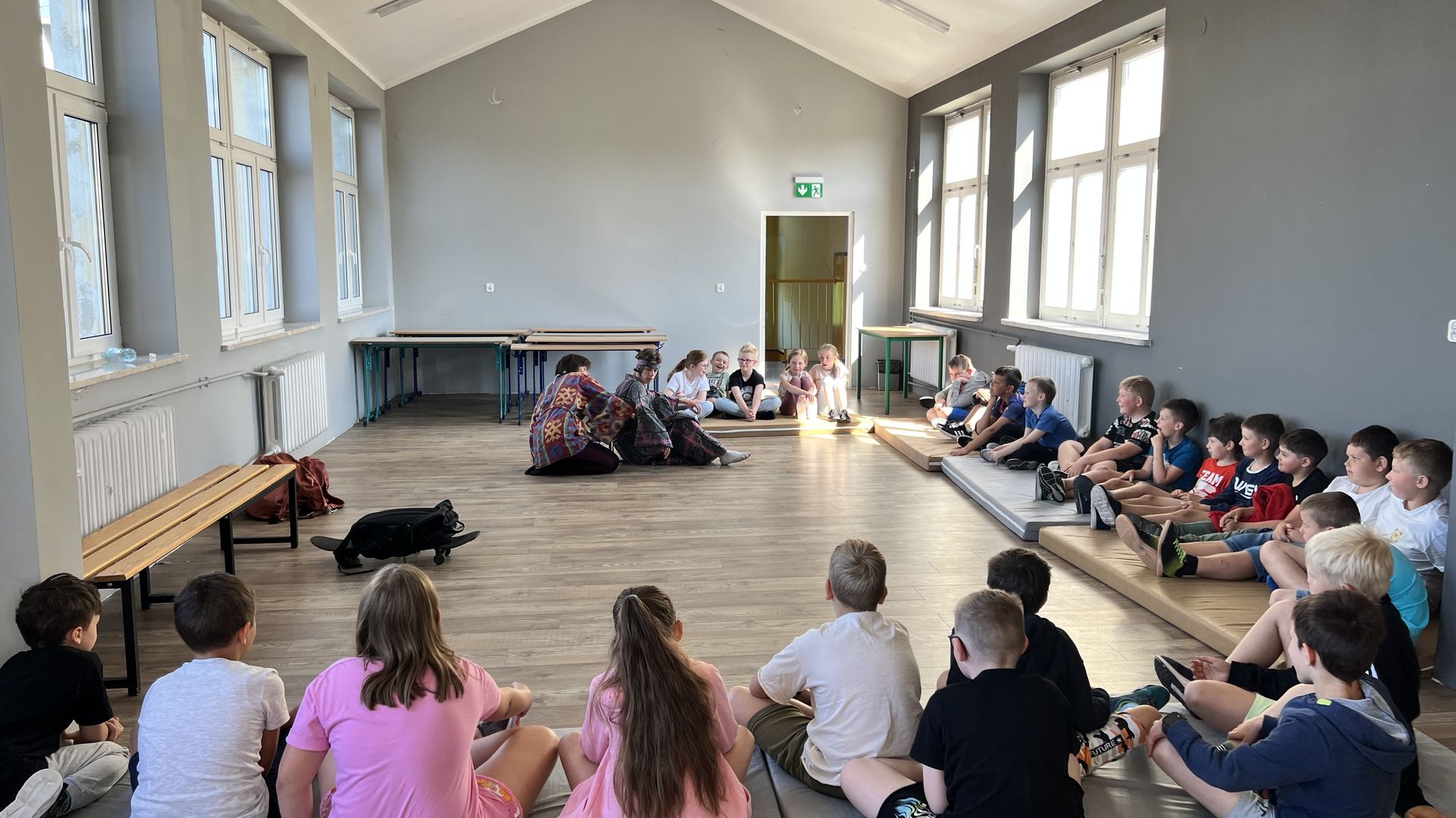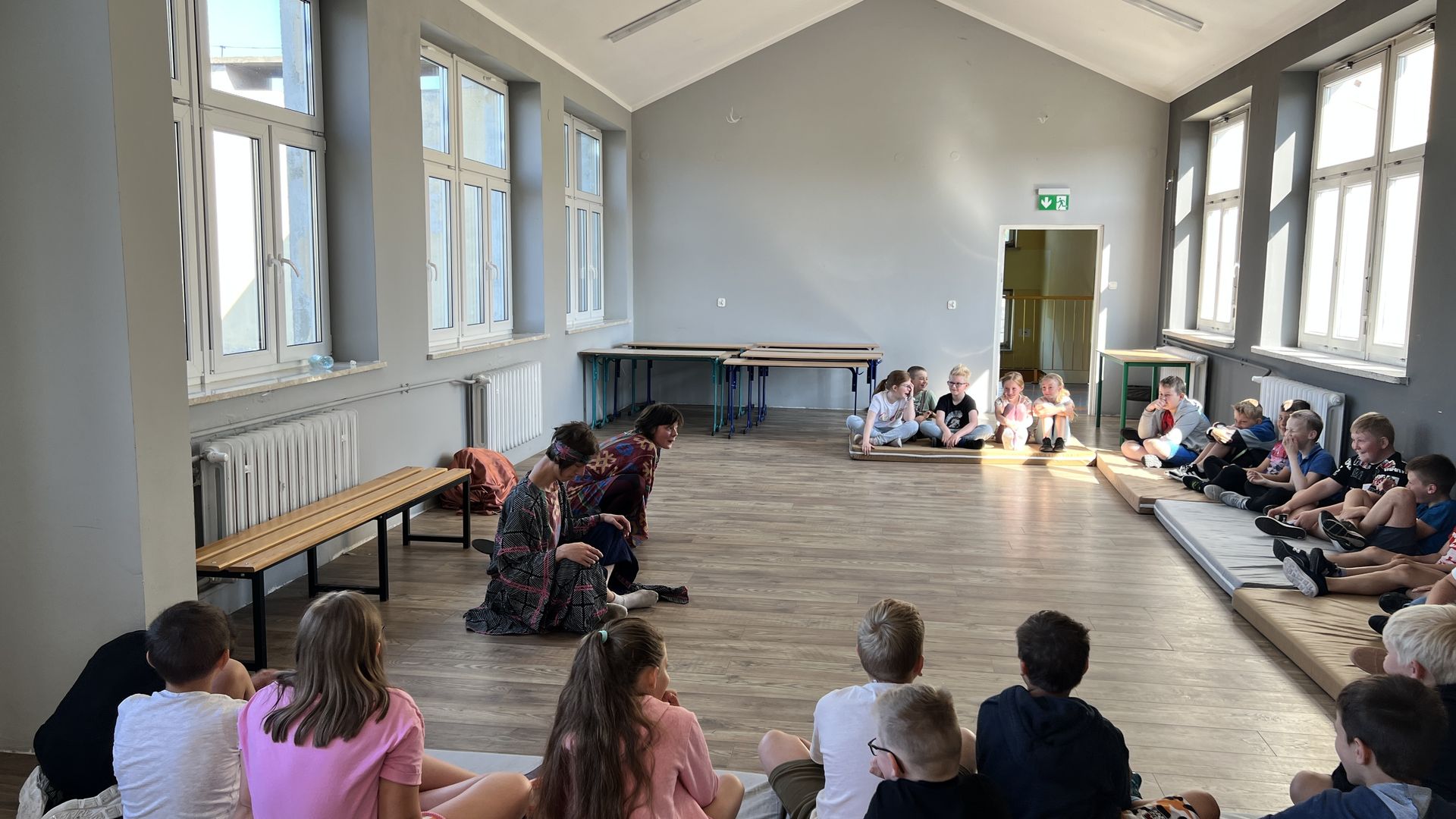 12 czerwca gościła w naszej szkole Fundacja Banina ze sztuką „Klimat” w reżyserii Bartka Miernika. Temat przedstawienia wpisał się do szkolnych działań sprzyjających wdrażaniu do świadomego i odpowiedzialnego gospodarowania na planecie Ziemi - domu wszystkich stworzeń, dużych i małych. Bohaterowie, Matylda i Dawid, w postacie których wcielili się Alicja Stankiewicz i Denis Jakubowski, otworzyli przed publicznością wrota wyobraźni, by w tej podróży doświadczyć problemów zagrożonego świata przyrody i nauczyć się pokonywać trudności, wspomagać, aktywnie podejmować nawet małe zadania w ważnej sprawie.