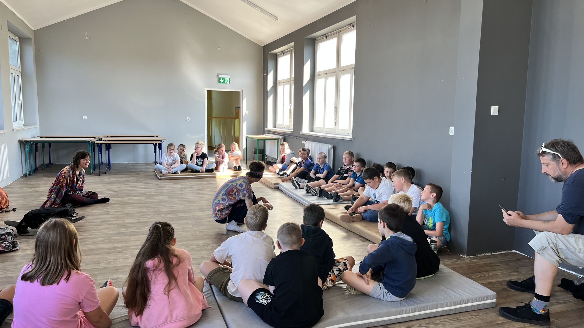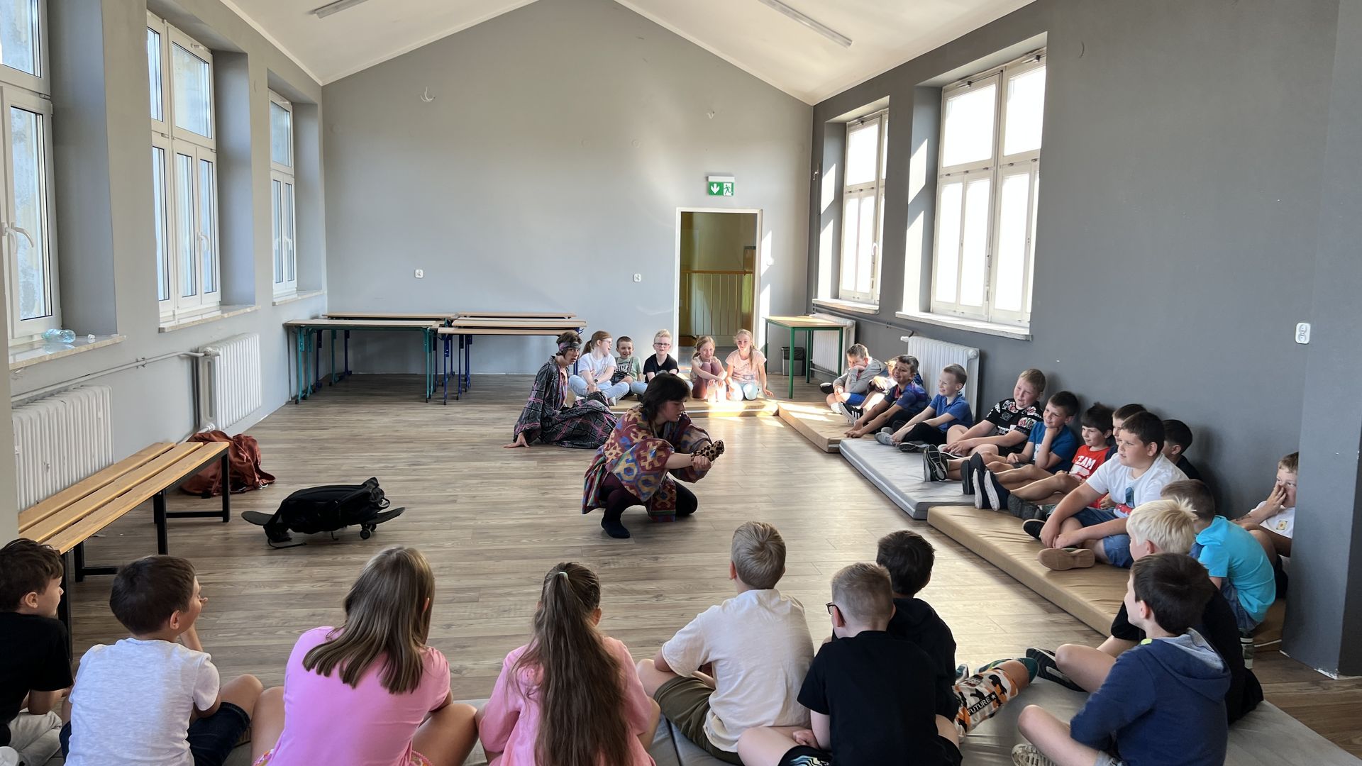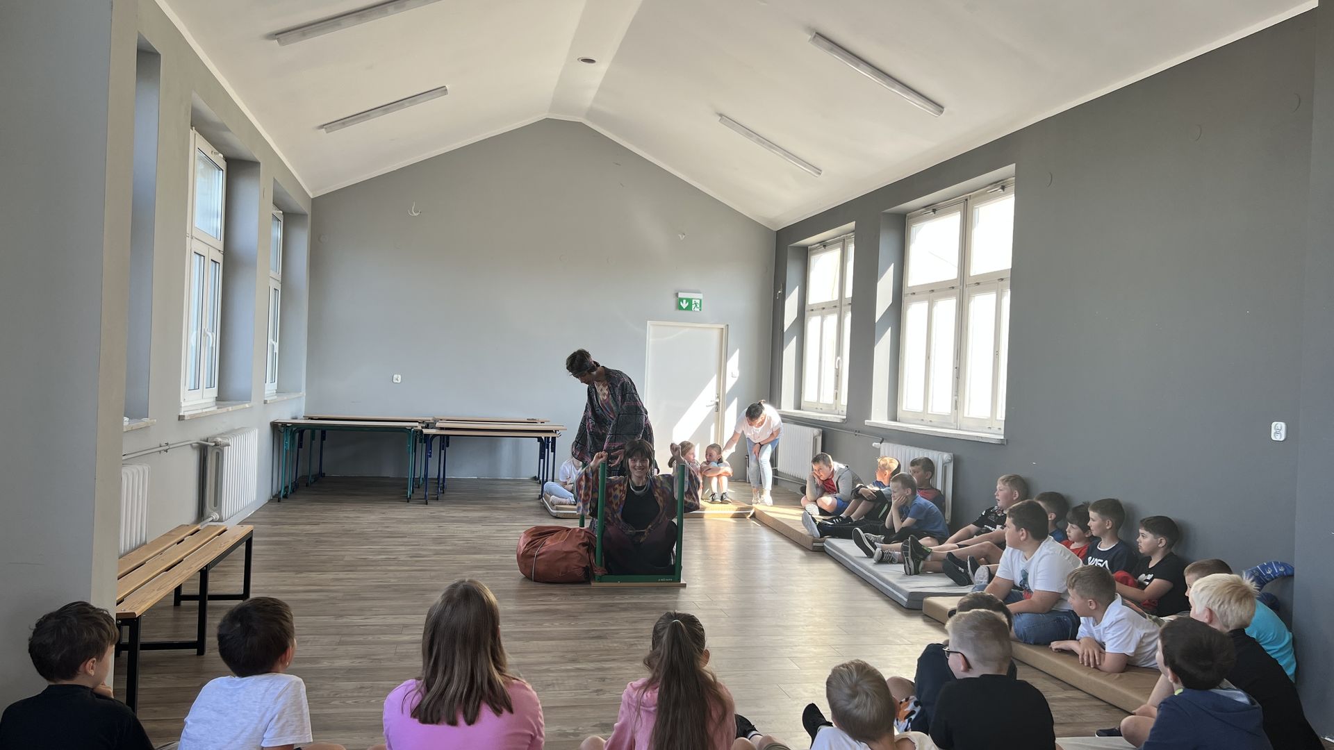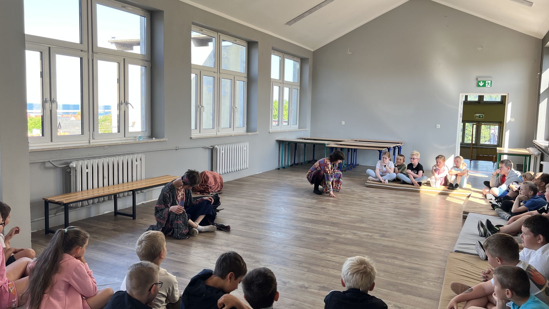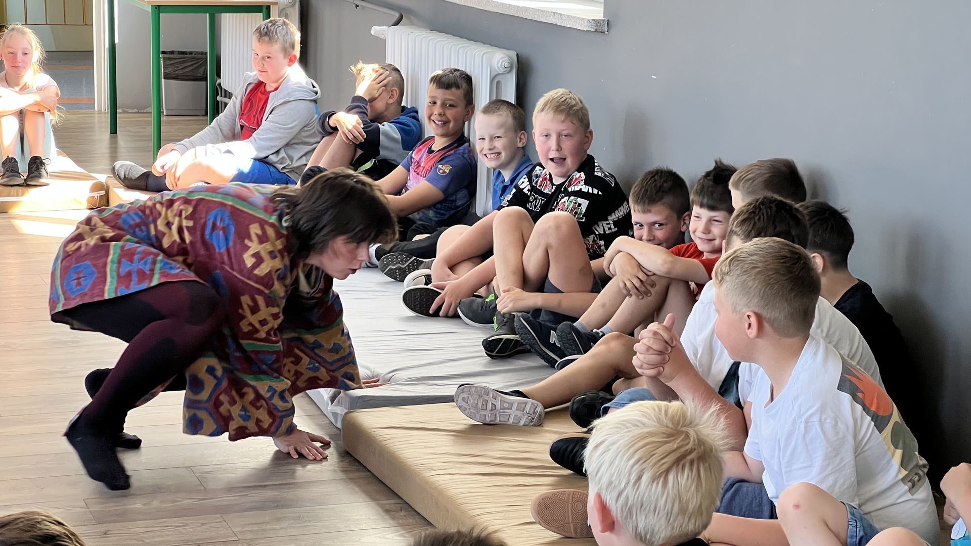 12 czerwca gościła w naszej szkole Fundacja Banina ze sztuką „Klimat” w reżyserii Bartka Miernika. Temat przedstawienia wpisał się do szkolnych działań sprzyjających wdrażaniu do świadomego i odpowiedzialnego gospodarowania na planecie Ziemi - domu wszystkich stworzeń, dużych i małych. Bohaterowie, Matylda i Dawid, w postacie których wcielili się Alicja Stankiewicz i Denis Jakubowski, otworzyli przed publicznością wrota wyobraźni, by w tej podróży doświadczyć problemów zagrożonego świata przyrody i nauczyć się pokonywać trudności, wspomagać, aktywnie podejmować nawet małe zadania w ważnej sprawie.