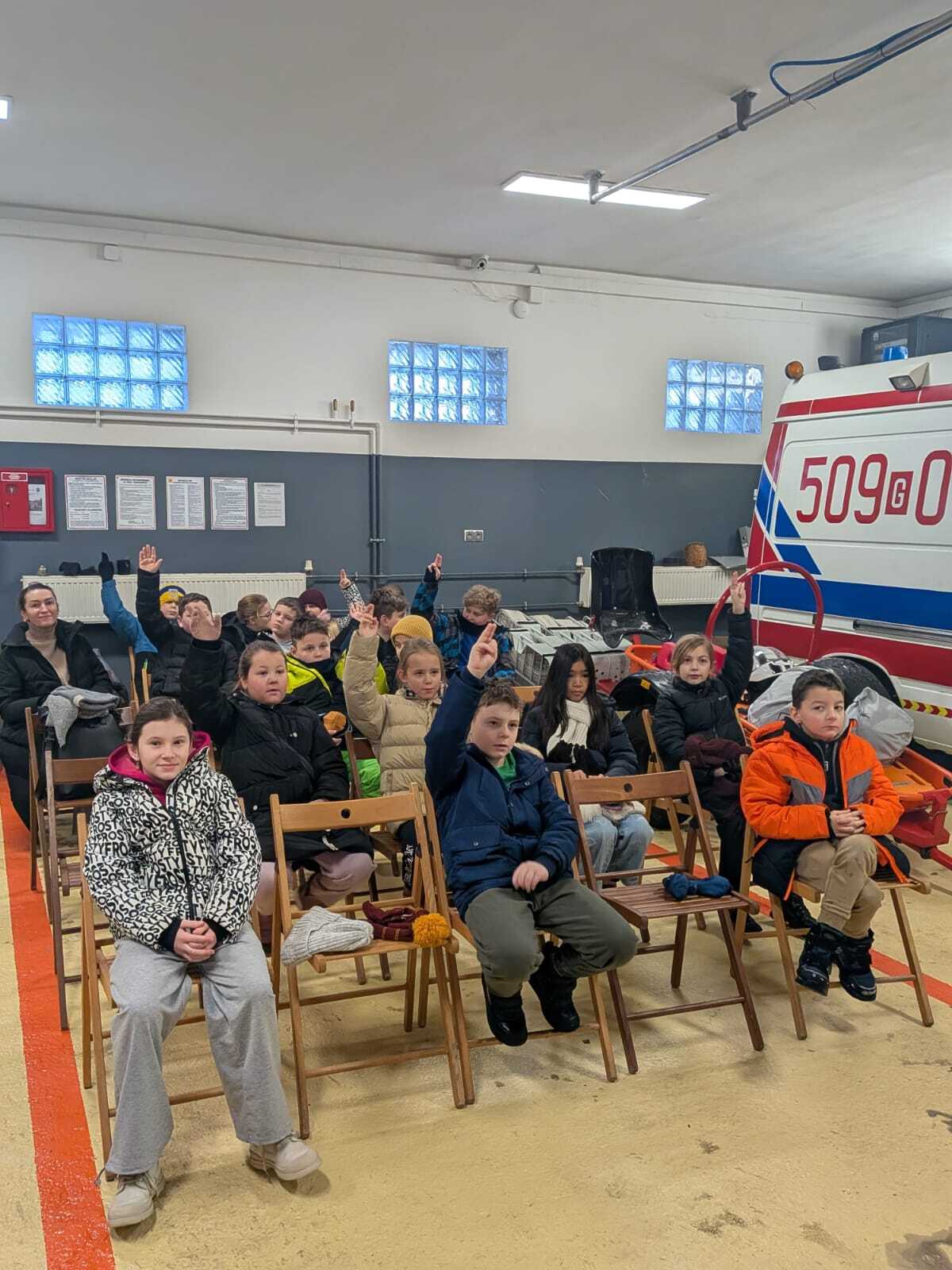 14.01.2026r. uczniowie klas 1–3 Szkoły Podstawowej w Helu odwiedzili Remizę OSP Hel, gdzie poznali zasady bezpiecznych zabaw zimowych ⛄🧤, utrwalili numery alarmowe 📞 oraz obejrzeli sprzęt ratowniczy 🚑.