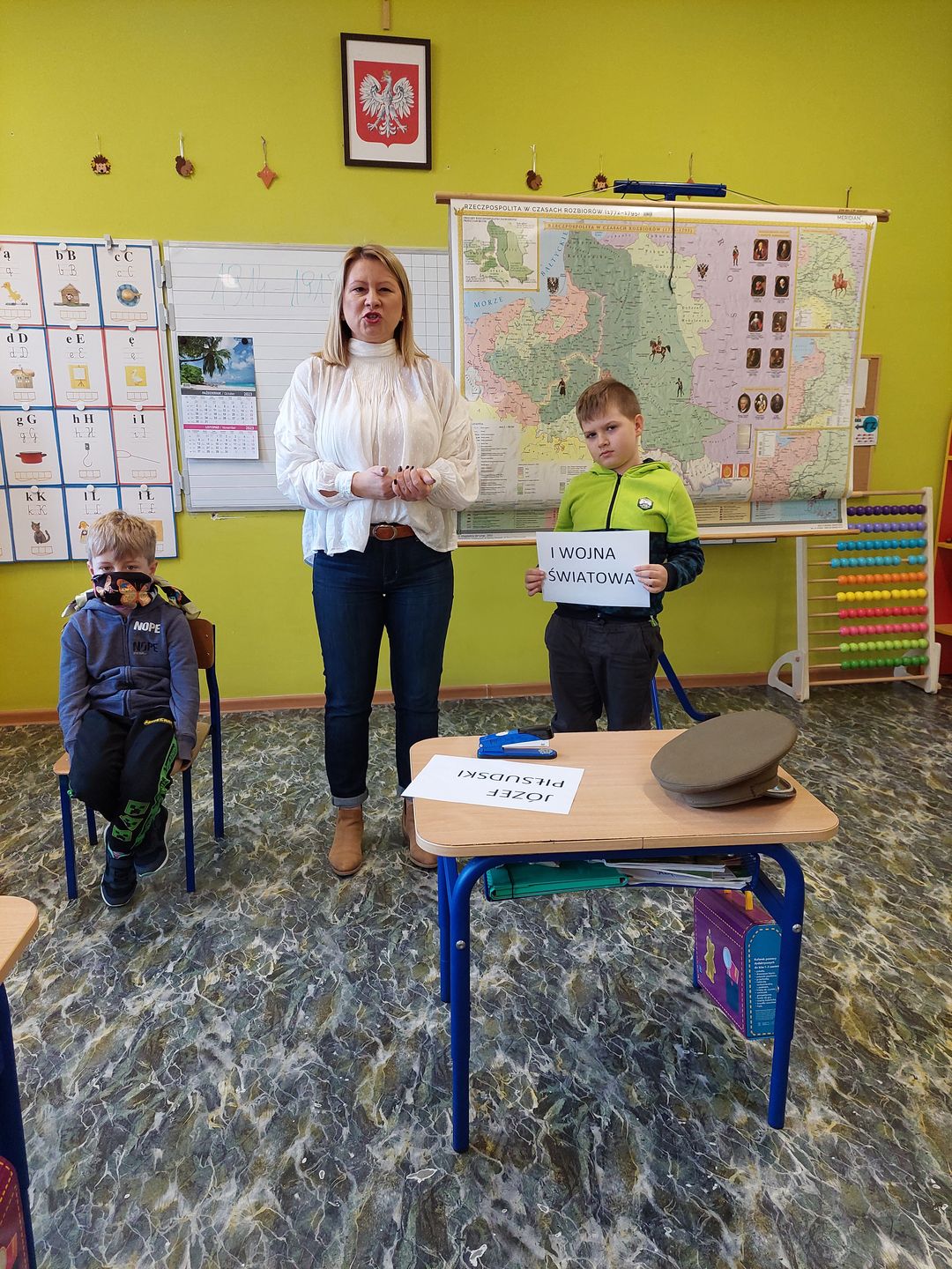 Aby znaleźć odpowiedź na to pytanie, zaprosiliśmy do naszej klasy eksperta z dziedziny historii – Panią Aleksandrę Muttke – Lamparską. Trudno opisać w jak malowniczy sposób Pani Ola zabrała nas w podróż w czasie. Teraz już wiemy co to niepodległość, a zdobytą przez nas wiedzę potwierdził doskonały wynik podczas rozwiązywania quizu na ten temat.