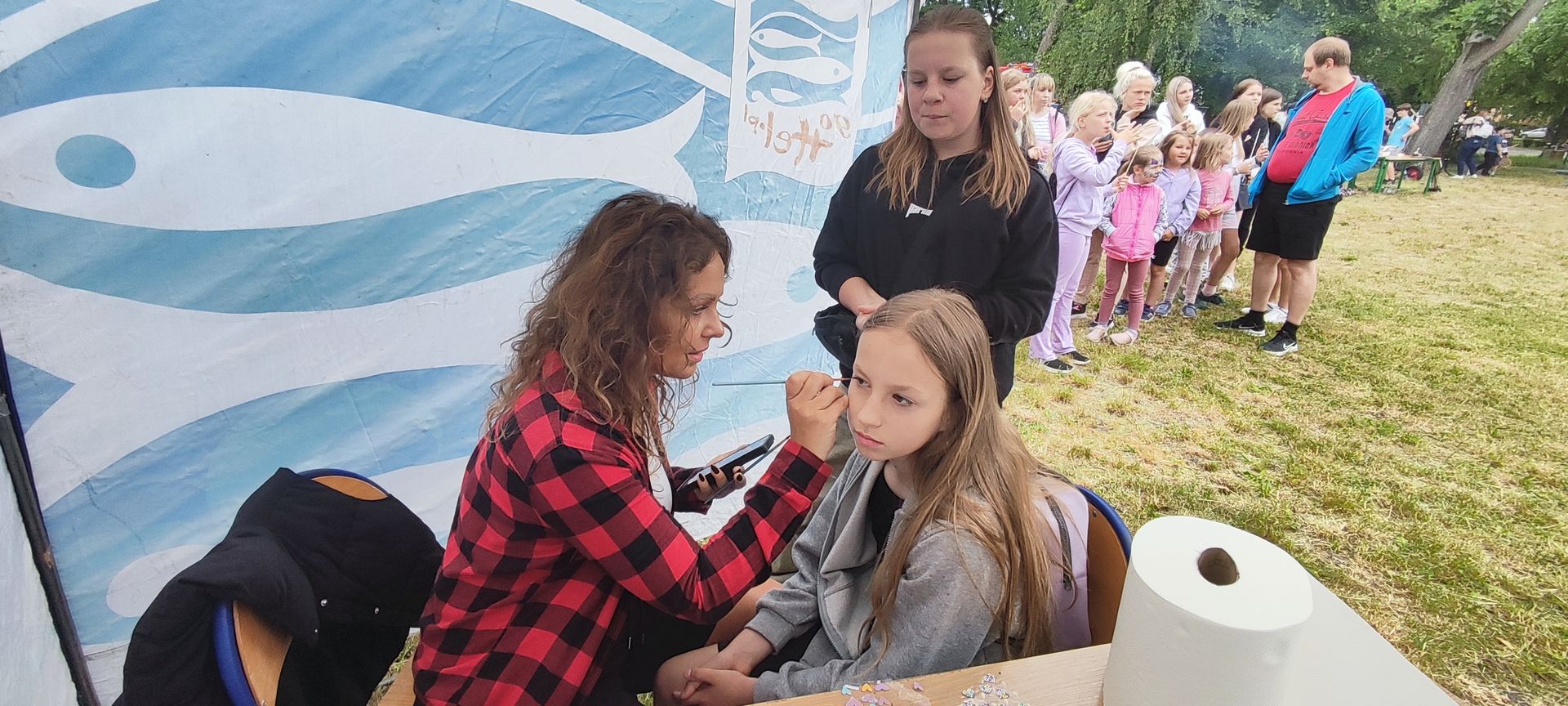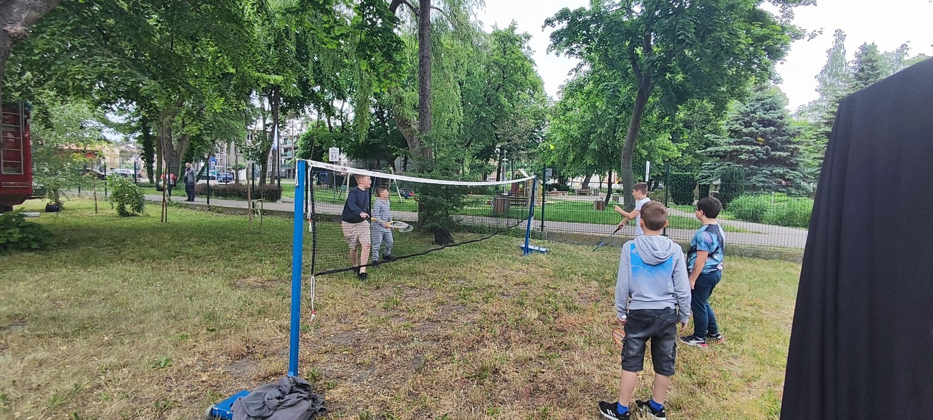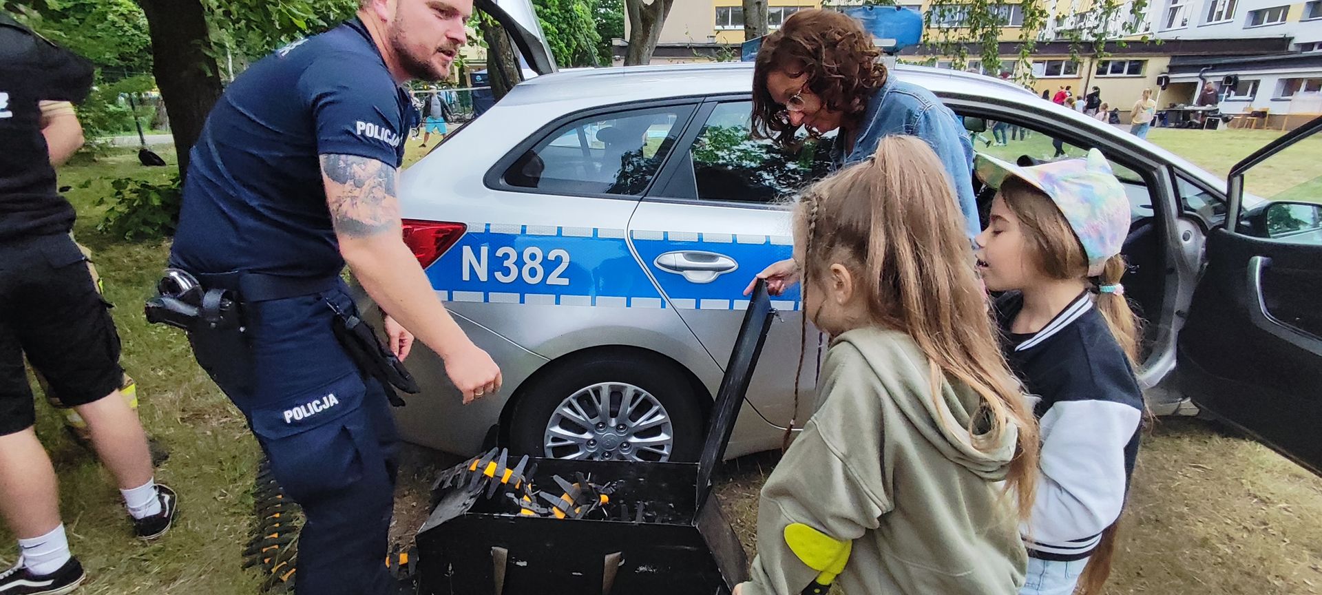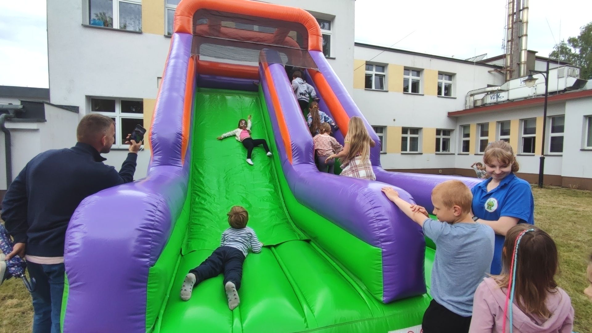W atmosferze świetnej zabawy, muzyki dziecięcej serwowanej przez DJ Glewicza, uśmiechów na twarzach wszystkich obecnych, dzieci korzystały do woli, do ostatnich minut z wielorakich atrakcji: kolejki do warkoczyków i tatuaży, do malowania buziek, na zamek dmuchany, do zdjęć w FOTOBUDCE trwały i trwały J. Wszyscy zajadali się pysznościami z poszczególnych stoisk RR, ZKP, goframi upieczonymi przez naszych nauczycieli, popcornem i watą cukrową przygotowywaną przez starszych uczniów, ugotowaną zupą vege w kociołku, kiełbaskami pieczonymi przy ognisku a z okienka stołówki pan Rysiu rozdawał lody na patyku J. OSP zaprezentowała się nam w niespodziankowym pokazie tanecznym, odwiedził nas funkcjonariusz policji FOKA, z którą wszyscy chcieli mieć zdjęcie, była karetka pogotowia, do której można było zajrzeć oraz przypomnieć sobie zasady udzielania I pomocy przedmedycznej. EKOHEL jak zawsze zabawiał dzieci ekologiczną grą terenową. Upust inwencji twórczej można było zrealizować na stanowisku cieczy nienewtonowskiej i malowania na folii. W tajemniczym namiocie dwie dobre wróżki czytały przyszłość z linii papilarnych dłoni oraz kryształowej kuli J Każdy zainteresowany wychodził od nich z magicznym talizmanem. Nieopodal można było zagrać w badmintona oraz inne gry sportowe.