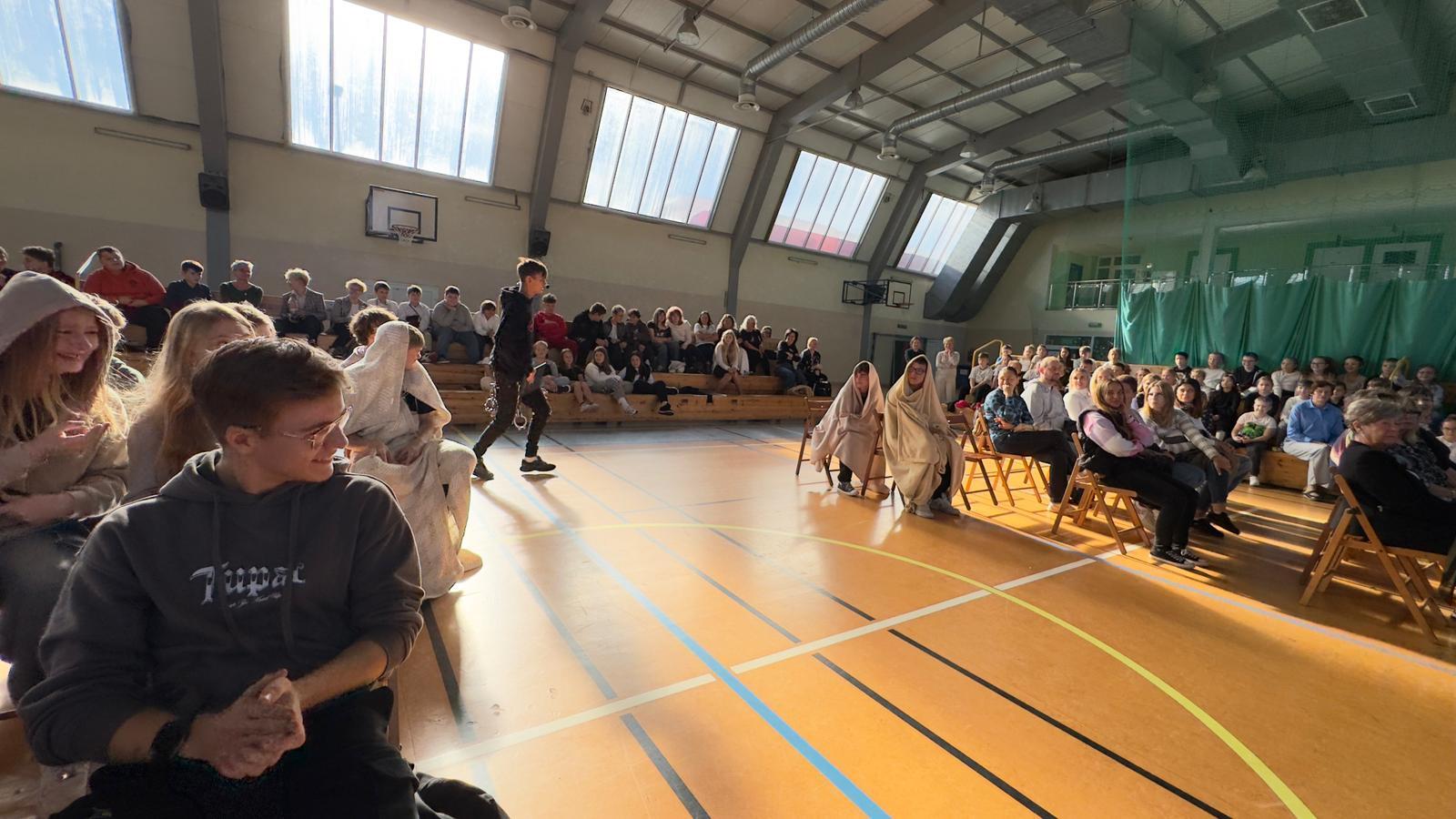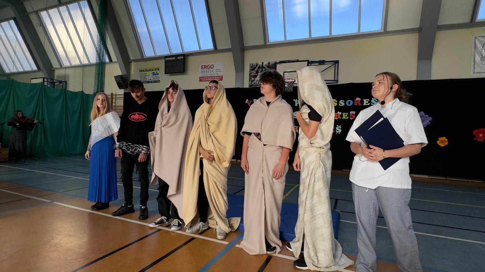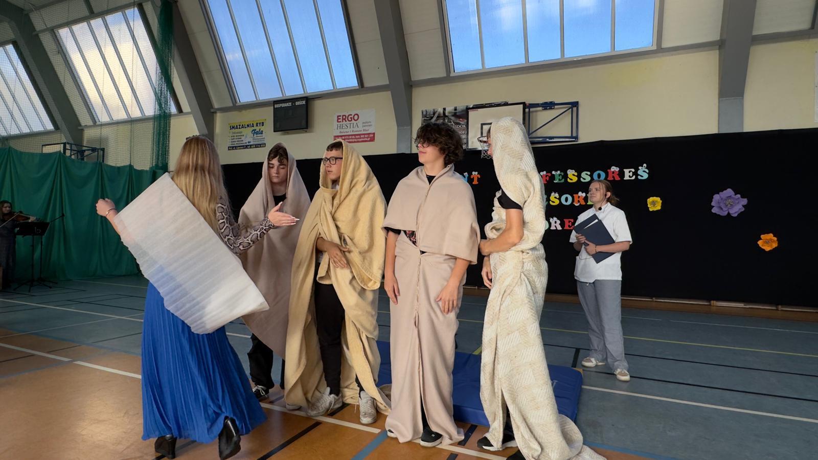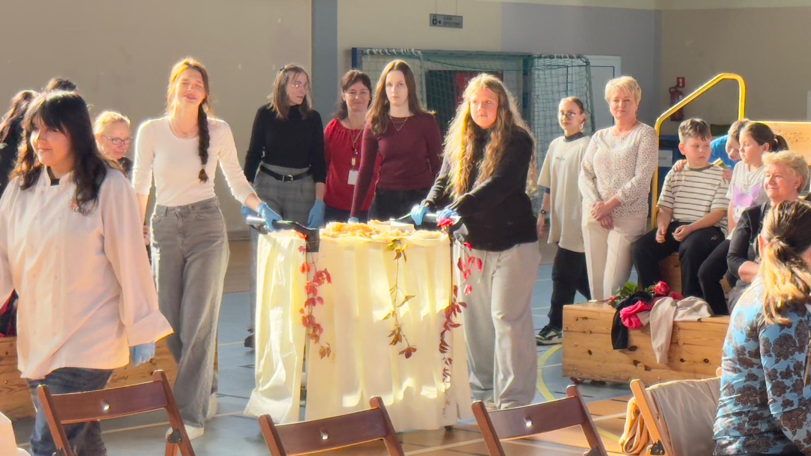We wtorek świętowaliśmy upamiętnienie rocznicy powstania Komisji Edukacji Narodowej, która została utworzona w dniu 14 października 1773 roku. Potocznie dzień ten zwany jest Dniem Nauczyciela, ale szkoły to przecież nie tylko nauczyciele, dlatego z radością witaliśmy wszystkich pracowników Oświaty, Gospodarzy Miasta, każdego Przyjaciela i Partnera. Wśród Gości znaleźli się Nauczyciele Seniorzy, którym ślemy pozdrowienia, dziękując za odwiedziny. Chór szkolny i licealiści przygotowali krótki program na wesoło, poddając rozważaniu złośliwość rzeczy martwych, jakże częstą okoliczność pracy szkolnej. Naleśniki były głównymi bohaterami przedstawienia na podstawie bajki filozoficznej Leszka Kołakowskiego i naleśnikami właśnie usmażonymi przez HEL~LO Team podjęliśmy wszystkich Gości. Święto wesołe i wspólne trzeba zakąsić na słodko