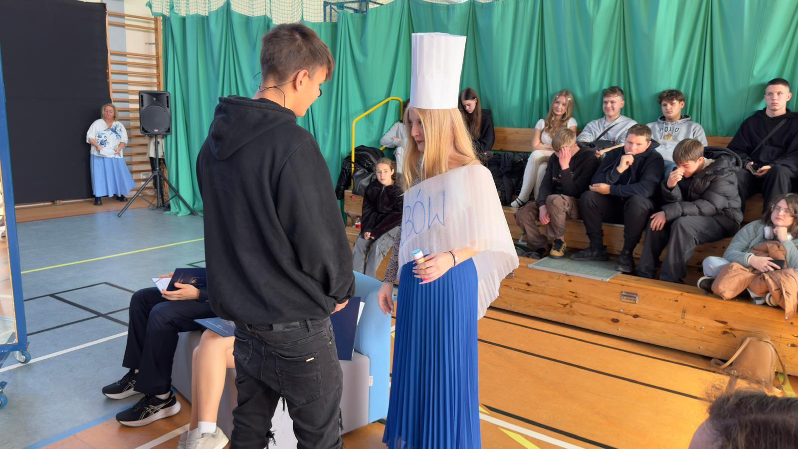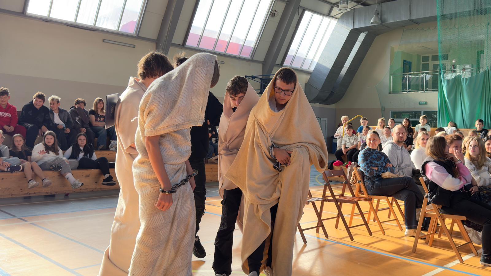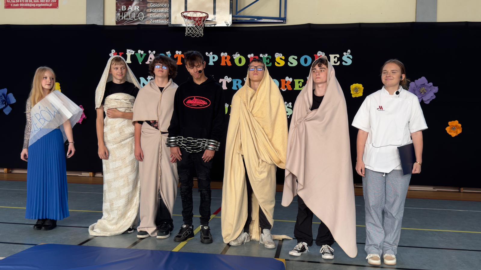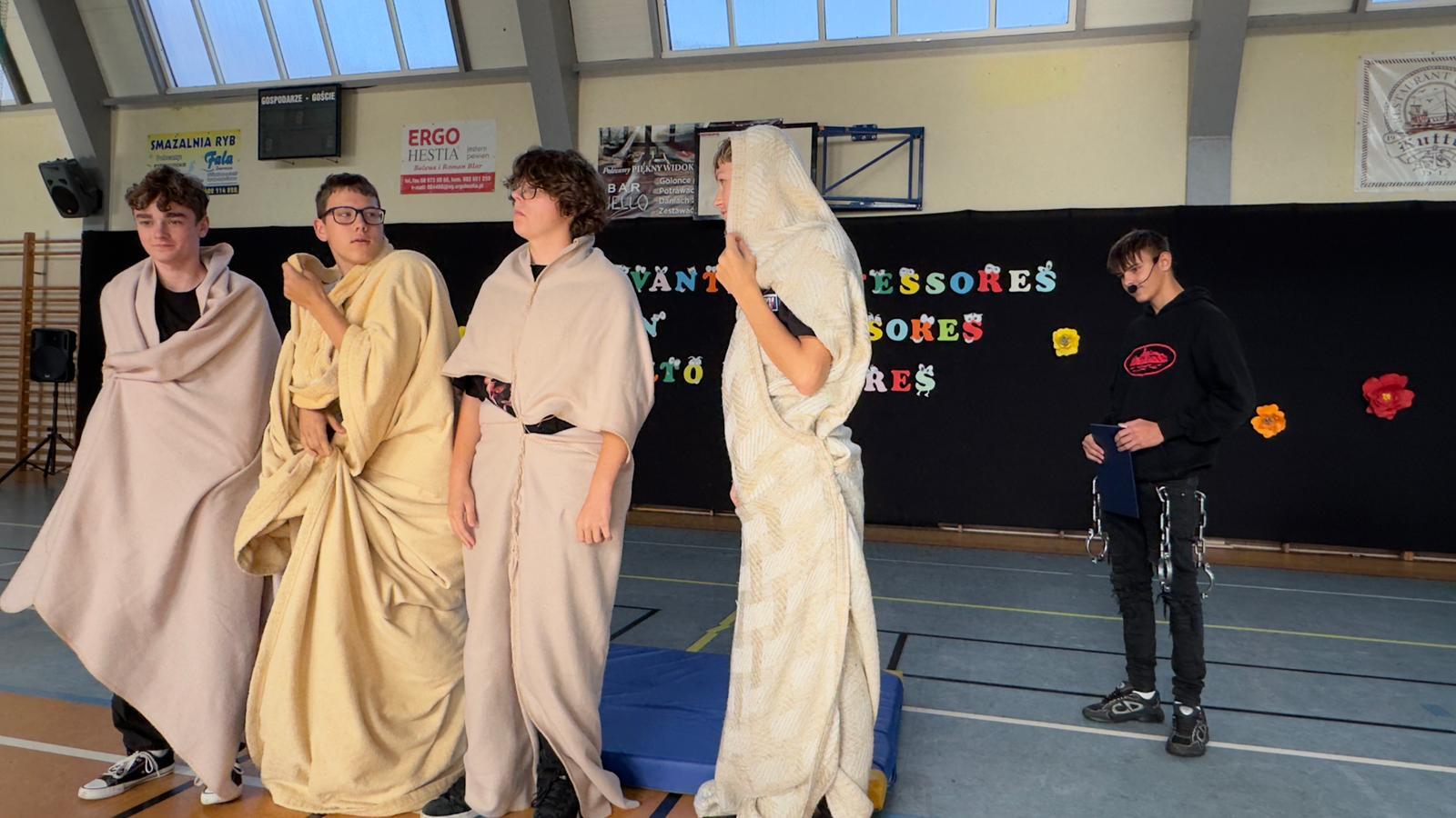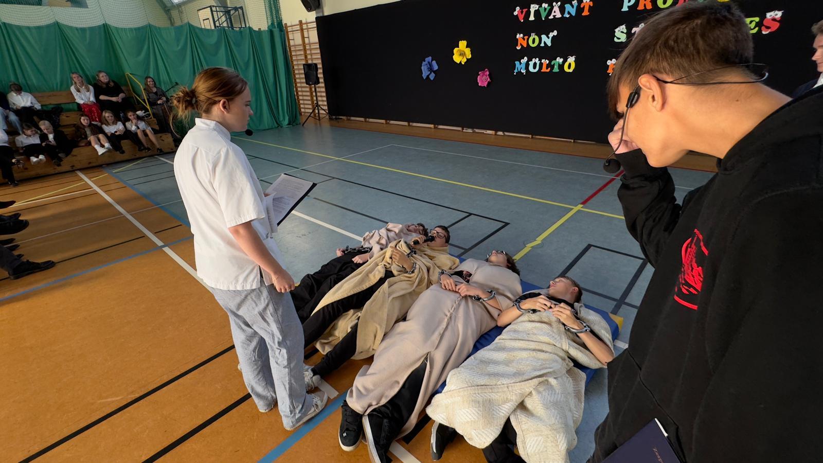 We wtorek świętowaliśmy upamiętnienie rocznicy powstania Komisji Edukacji Narodowej, która została utworzona w dniu 14 października 1773 roku. Potocznie dzień ten zwany jest Dniem Nauczyciela, ale szkoły to przecież nie tylko nauczyciele, dlatego z radością witaliśmy wszystkich pracowników Oświaty, Gospodarzy Miasta, każdego Przyjaciela i Partnera. Wśród Gości znaleźli się Nauczyciele Seniorzy, którym ślemy pozdrowienia, dziękując za odwiedziny. Chór szkolny i licealiści przygotowali krótki program na wesoło, poddając rozważaniu złośliwość rzeczy martwych, jakże częstą okoliczność pracy szkolnej. Naleśniki były głównymi bohaterami przedstawienia na podstawie bajki filozoficznej Leszka Kołakowskiego i naleśnikami właśnie usmażonymi przez HEL~LO Team podjęliśmy wszystkich Gości. Święto wesołe i wspólne trzeba zakąsić na słodko