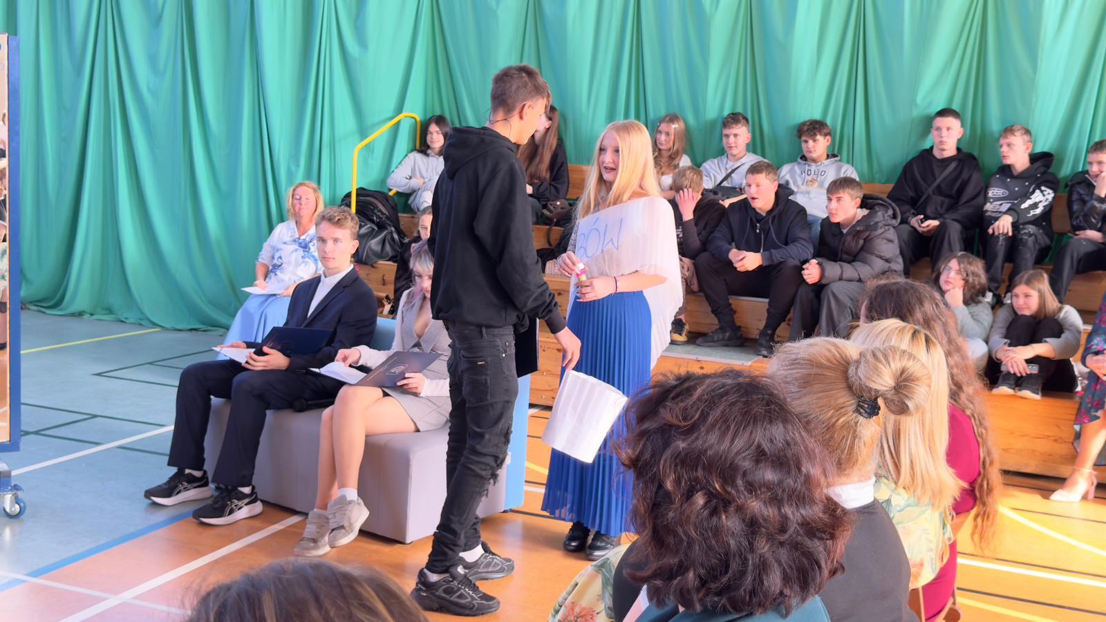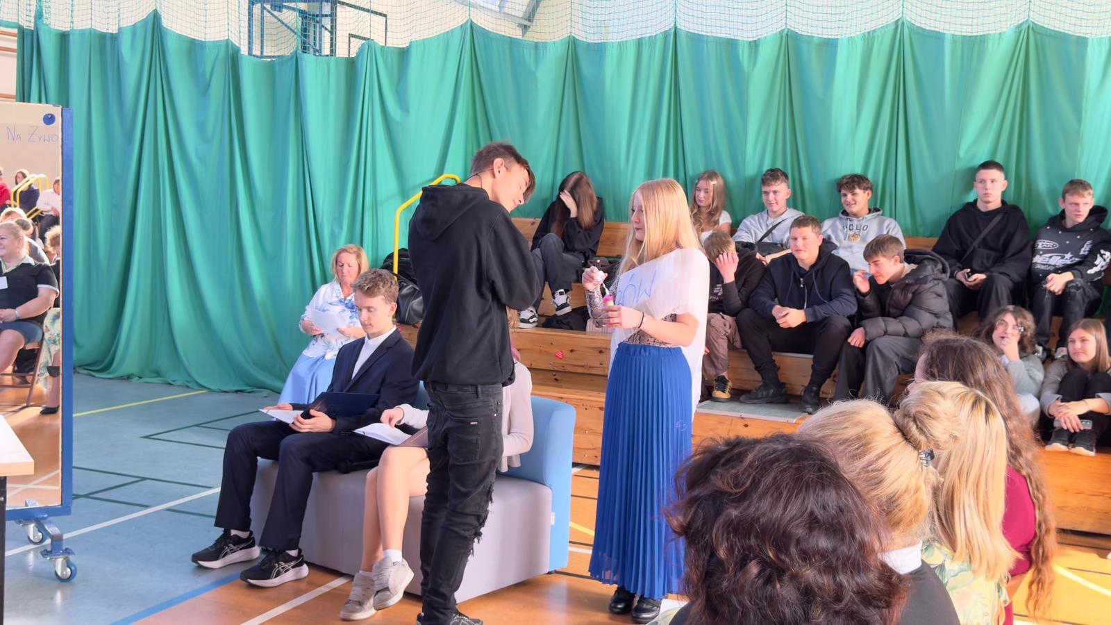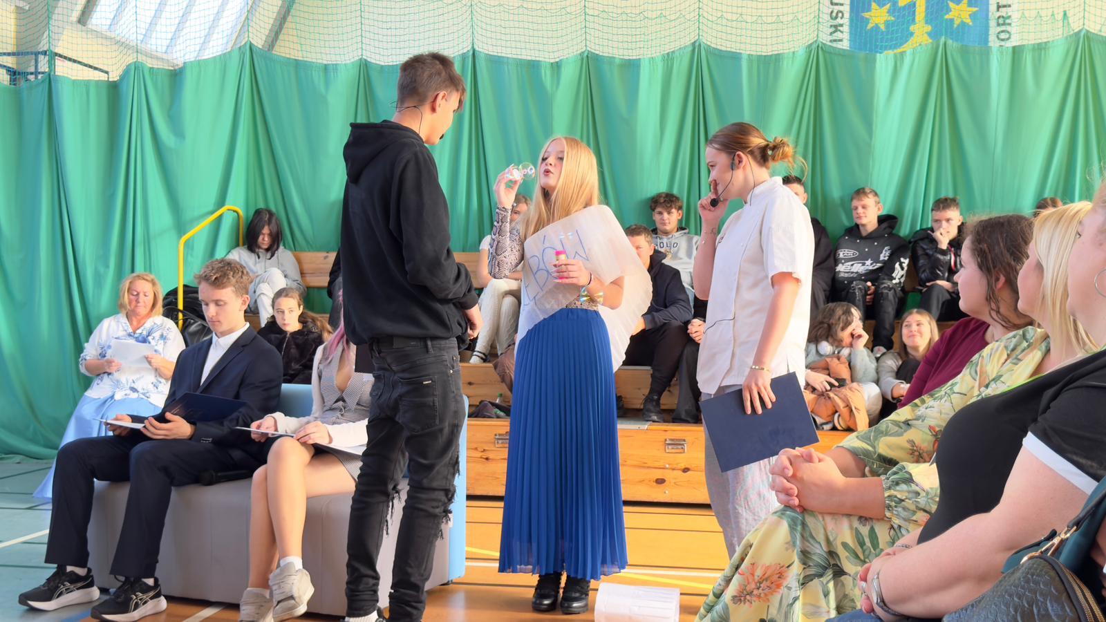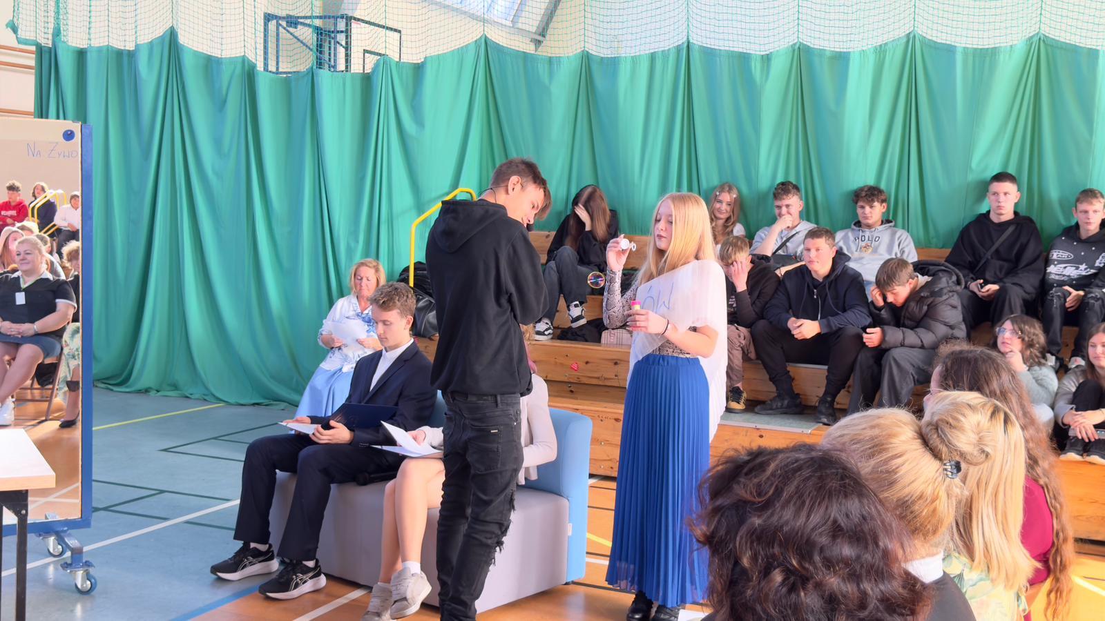 We wtorek świętowaliśmy upamiętnienie rocznicy powstania Komisji Edukacji Narodowej, która została utworzona w dniu 14 października 1773 roku. Potocznie dzień ten zwany jest Dniem Nauczyciela, ale szkoły to przecież nie tylko nauczyciele, dlatego z radością witaliśmy wszystkich pracowników Oświaty, Gospodarzy Miasta, każdego Przyjaciela i Partnera. Wśród Gości znaleźli się Nauczyciele Seniorzy, którym ślemy pozdrowienia, dziękując za odwiedziny. Chór szkolny i licealiści przygotowali krótki program na wesoło, poddając rozważaniu złośliwość rzeczy martwych, jakże częstą okoliczność pracy szkolnej. Naleśniki były głównymi bohaterami przedstawienia na podstawie bajki filozoficznej Leszka Kołakowskiego i naleśnikami właśnie usmażonymi przez HEL~LO Team podjęliśmy wszystkich Gości. Święto wesołe i wspólne trzeba zakąsić na słodko