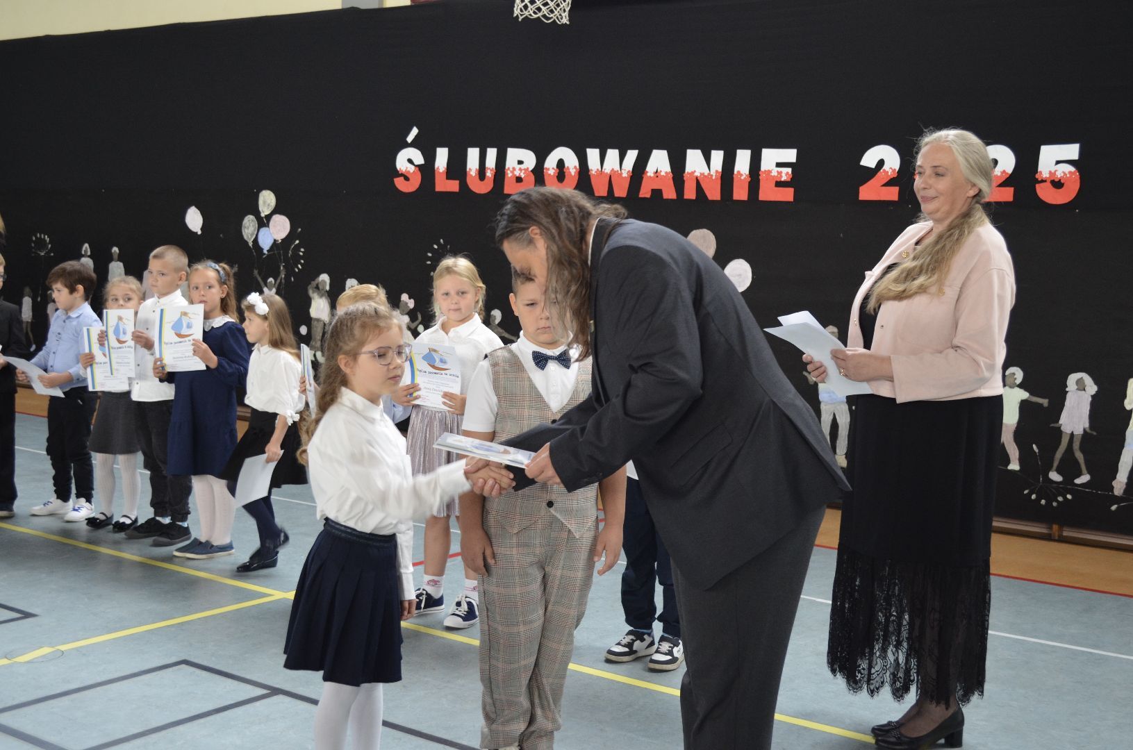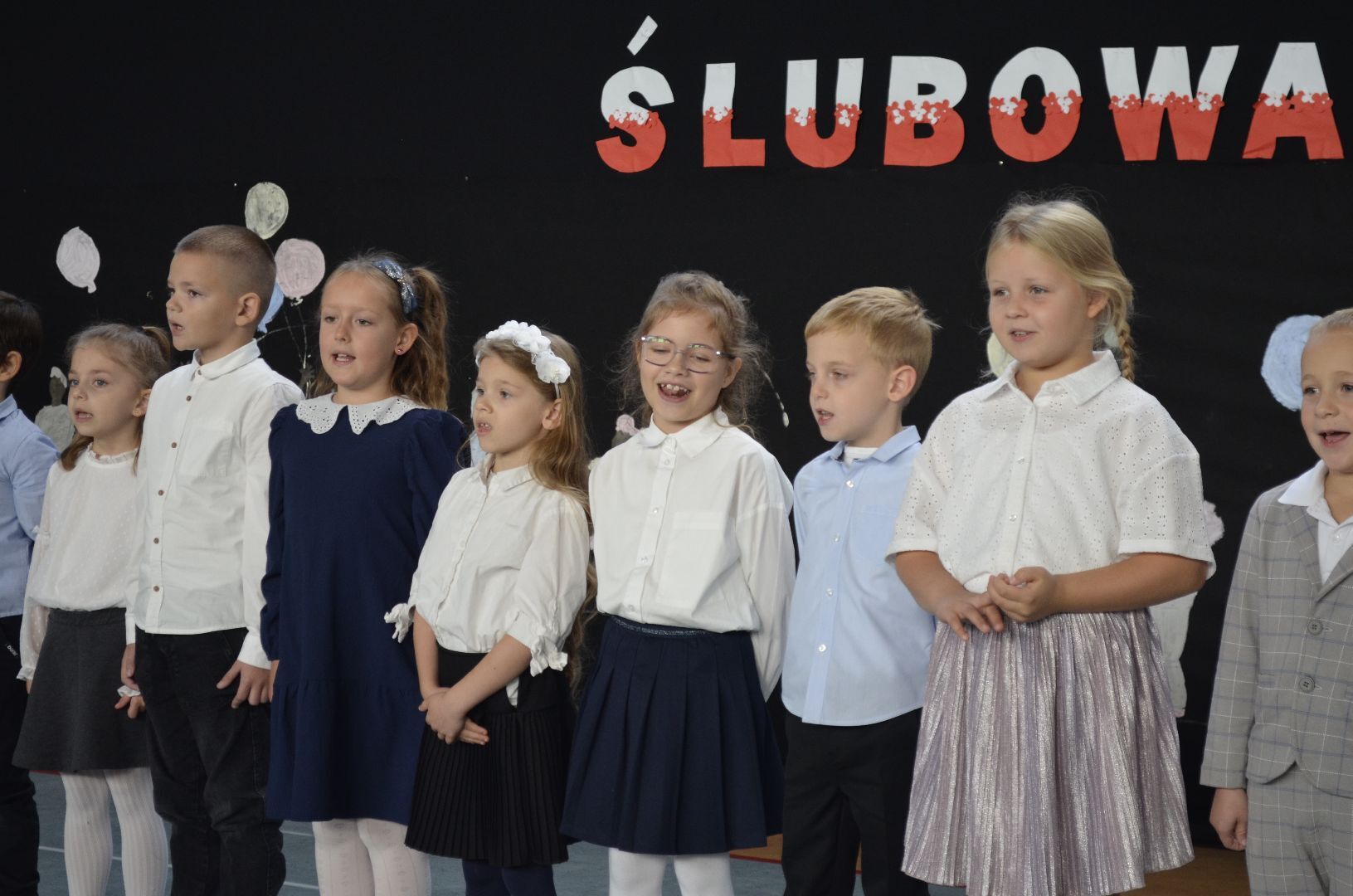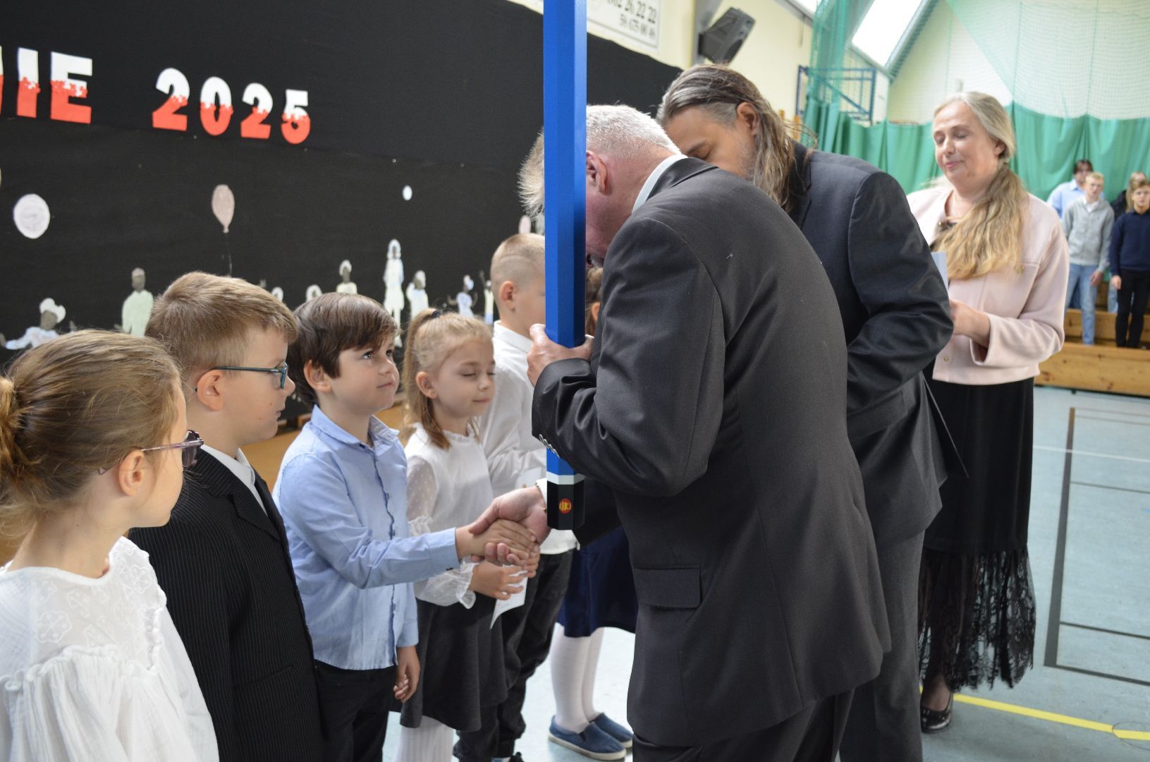 2 X 2025r. uczniowie klasy 1a mieli swoje święto. Zostali przyjęci w poczet uczniów Szkoły Podstawowej im. Obrońców Helu.