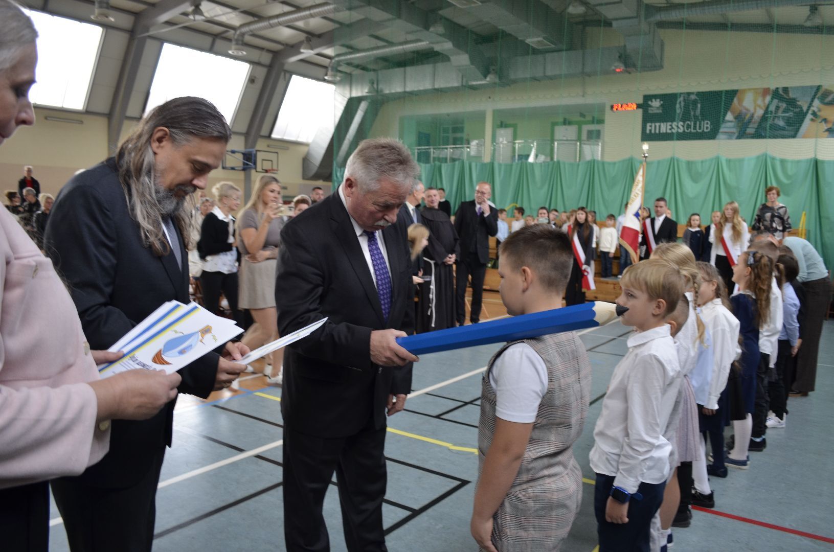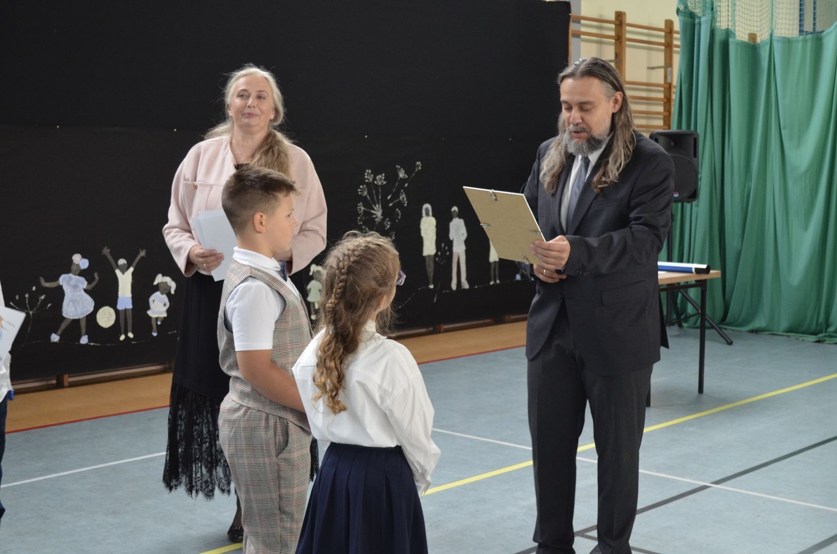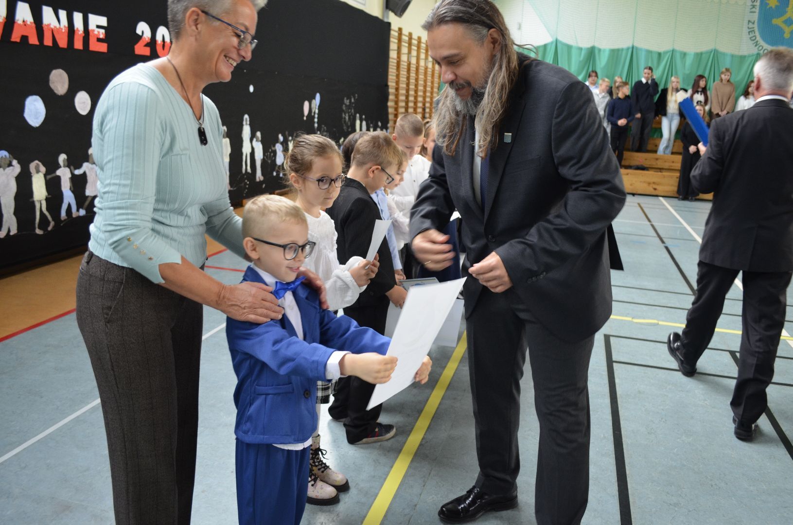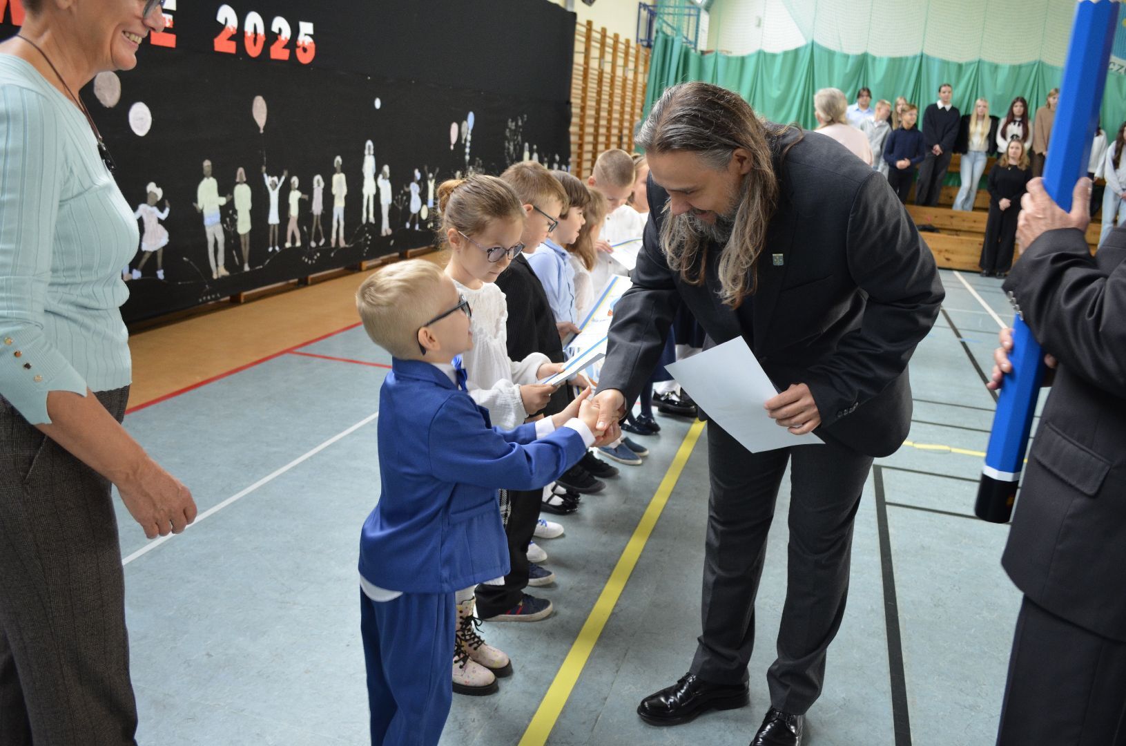 Po oficjalnej części, na której odbyło się ich ślubowanie na sztandar szkoły, oraz pasowanie, którego dokonał Burmistrz Miasta Hel Pan Mirosław Wądołowski - dzieci otrzymały z rąk Pana Dyrektora Dawida Migacza piękne pamiątkowe dyplomy.