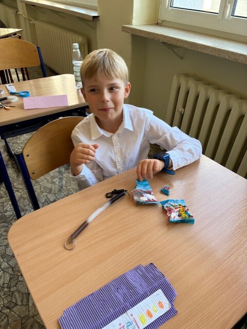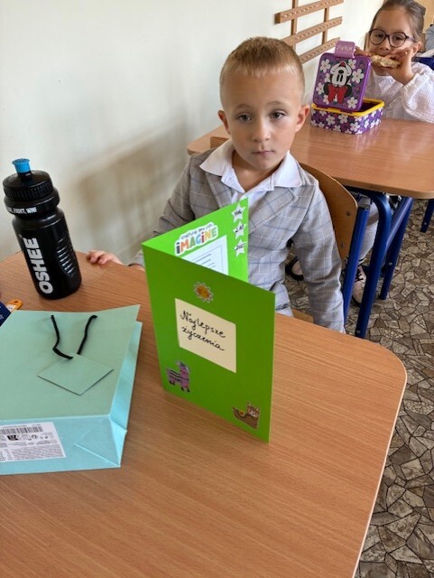 Starsi koledzy z klasy 3a obdarowali pierwszaki prezentami. Upominki otrzymały dzieci również od Pani Jadwigi Loose.