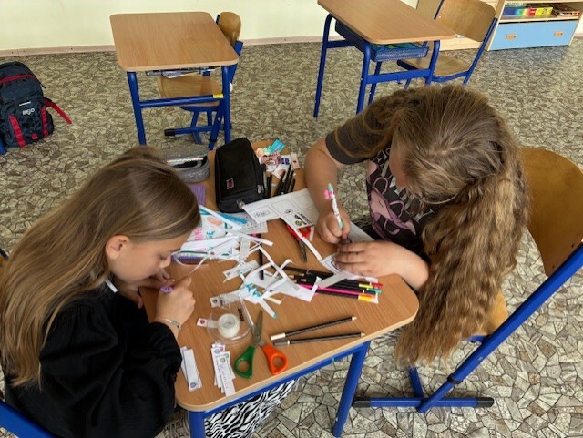 Uczniowie klasy 3A zawsze z wielkim zainteresowaniem oczekują na spotkanie z Panią Joanną Mormul i na plastyczne wyzwanie w ramach Międzynarodowego Projektu Edukacyjnego "Kreatywne prace plastyczne". Ich przepiękne prace są eksponowane na parterze oraz klatce schodowej starej szkoły. Oni także stworzyli niezwykły napis towarzyszący ich dziełom.
