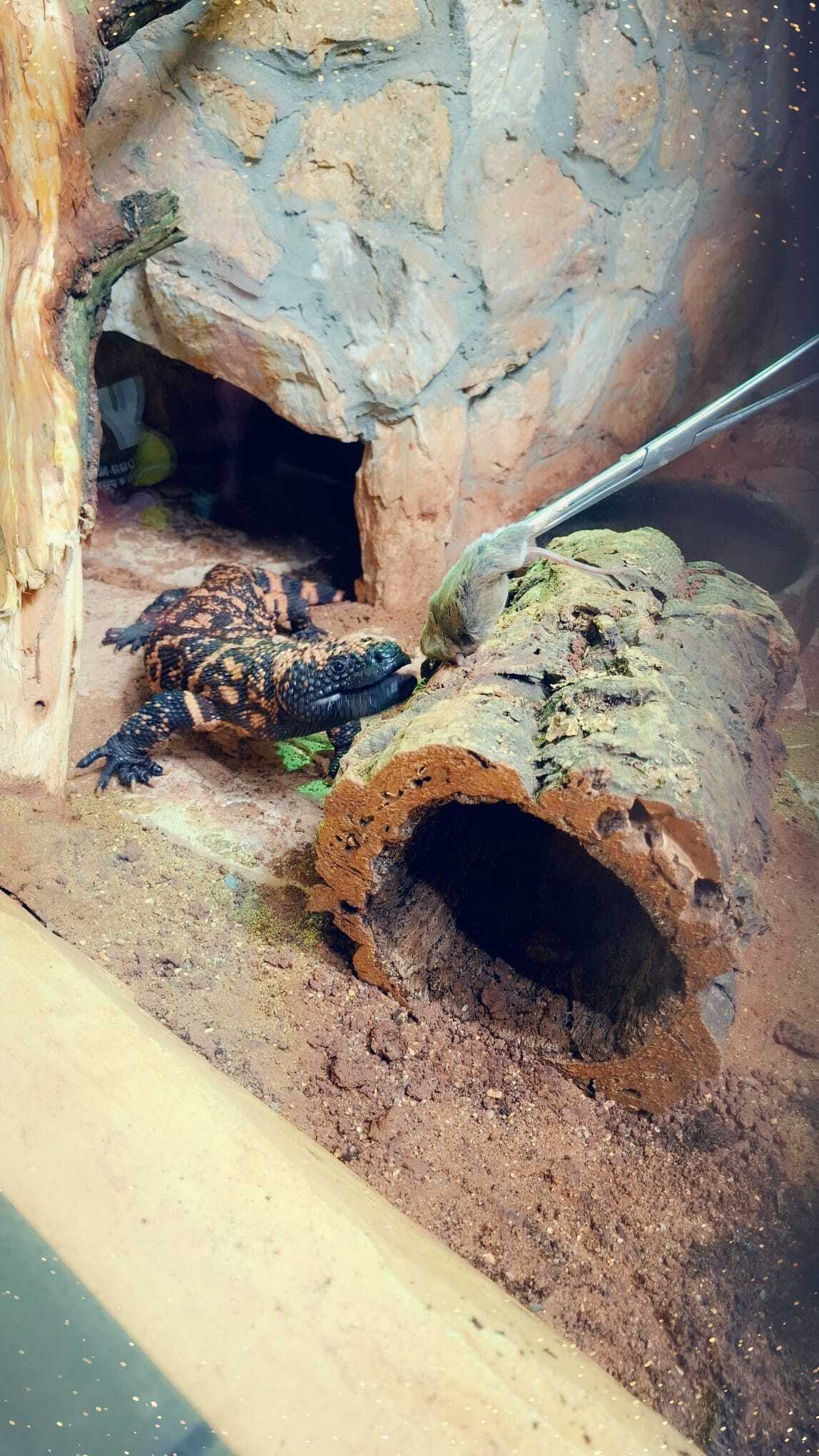 Pierwsze kroki podczas naszej wędrówki skierowaliśmy do pawilonu gadów, gdzie odwiedziliśmy helodermy, które są pod opieką społeczności ZSO Hel. Mieliśmy ogromne szczęście, gdyż odwiedziliśmy je w dniu i porze posiłku. Ależ to był niesamowity widok!