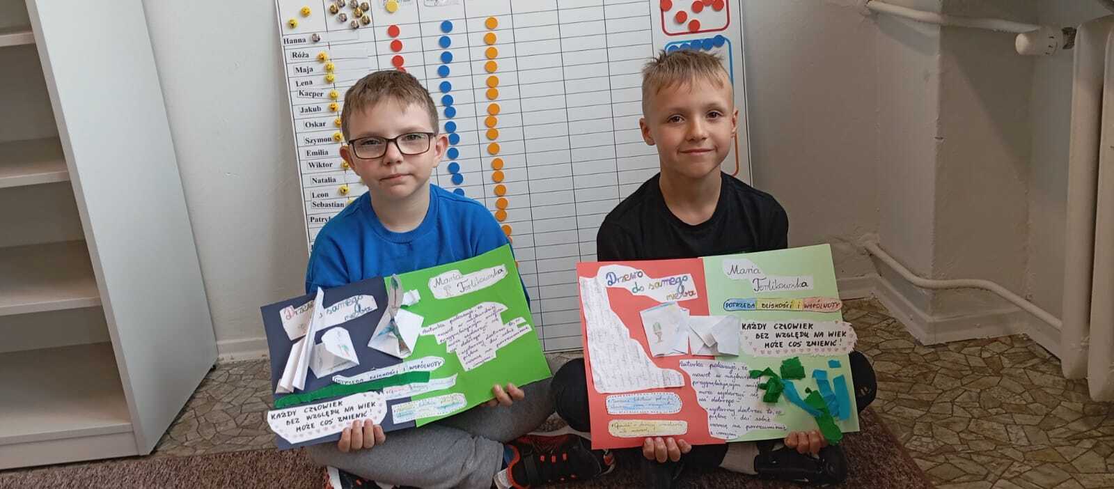 Dzieci przerabiały lekturę autorki Marii Terlikowskiej pod tytułem "Drzewo do samego nieba", a podsumowaniem zajęć było stworzenie przepięknych lapbooków.