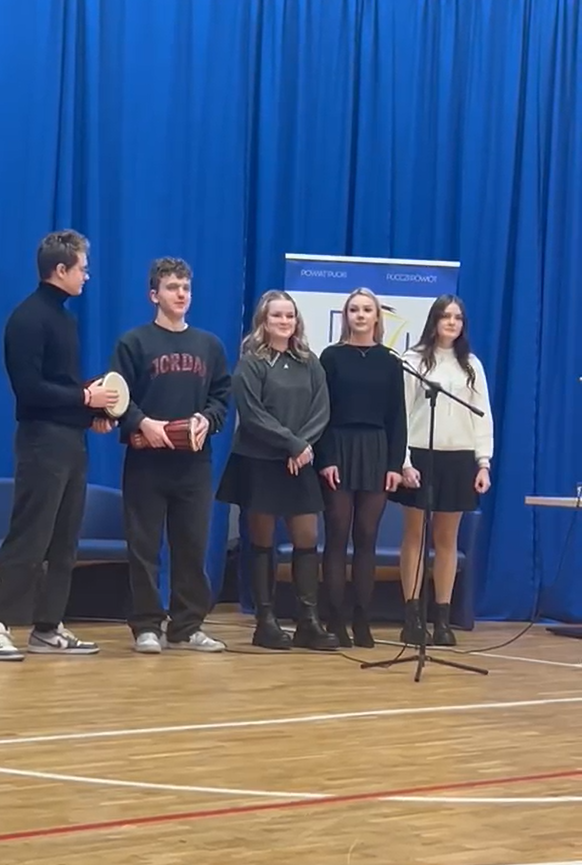 26 listopada 20 osobowa grupa naszych licealistów uczestniczyła w spotkaniu szkół ponadpodstawowych powiatu puckiego, które było sposobnością do podjęcia szerokiego zagadnienia wartości języka kaszubskiego dla pokolenia dorastających mieszkańców regionu. Nasi delegowani reprezentanci, Paulina Latosińska i Stanisław Figurski, podkreślali, że język kaszubski jest nie tylko komunikatorem „swoich ze swoimi”, jest źródłem kultury fascynującej innych i pozostaje narzędziem budującym tożsamość, wspomagającym rozwój Każdego zdecydowanego zrozumieć ziemię, na której żyje. Nasz muzyczny TEAM: Jadzia Narkowicz, Agata Wirwińska, Karolina Pawlak oraz Cezary Krawiec i Paweł Muża wyśpiewali Królewą Damroki, a wcześniej na dobry początek przedstawiliśmy krótkie kaszubskie anegdoty w wykonaniu: Aleksandra Tarnowskiego, Cezarego Krawca, Wiktora Herrmanna, Pauli Latosińskiej i Stasia Figurskiego. Gospodarze ugościli nas kaszëbsczim kùchã a na koniec wspólnie, organizatorzy i uczestnicy z różnych szkół, zaśpiewaliśmy Kaszëbsczé nótë. Oby renesans kultury regionalnej nie zgasł wraz z końcem Roku Języka Kaszubskiego. Dopingujemy żywej kaszubszczyźnie. Już niedługo kolejny Kaszëbsczi Czwiôrtk!