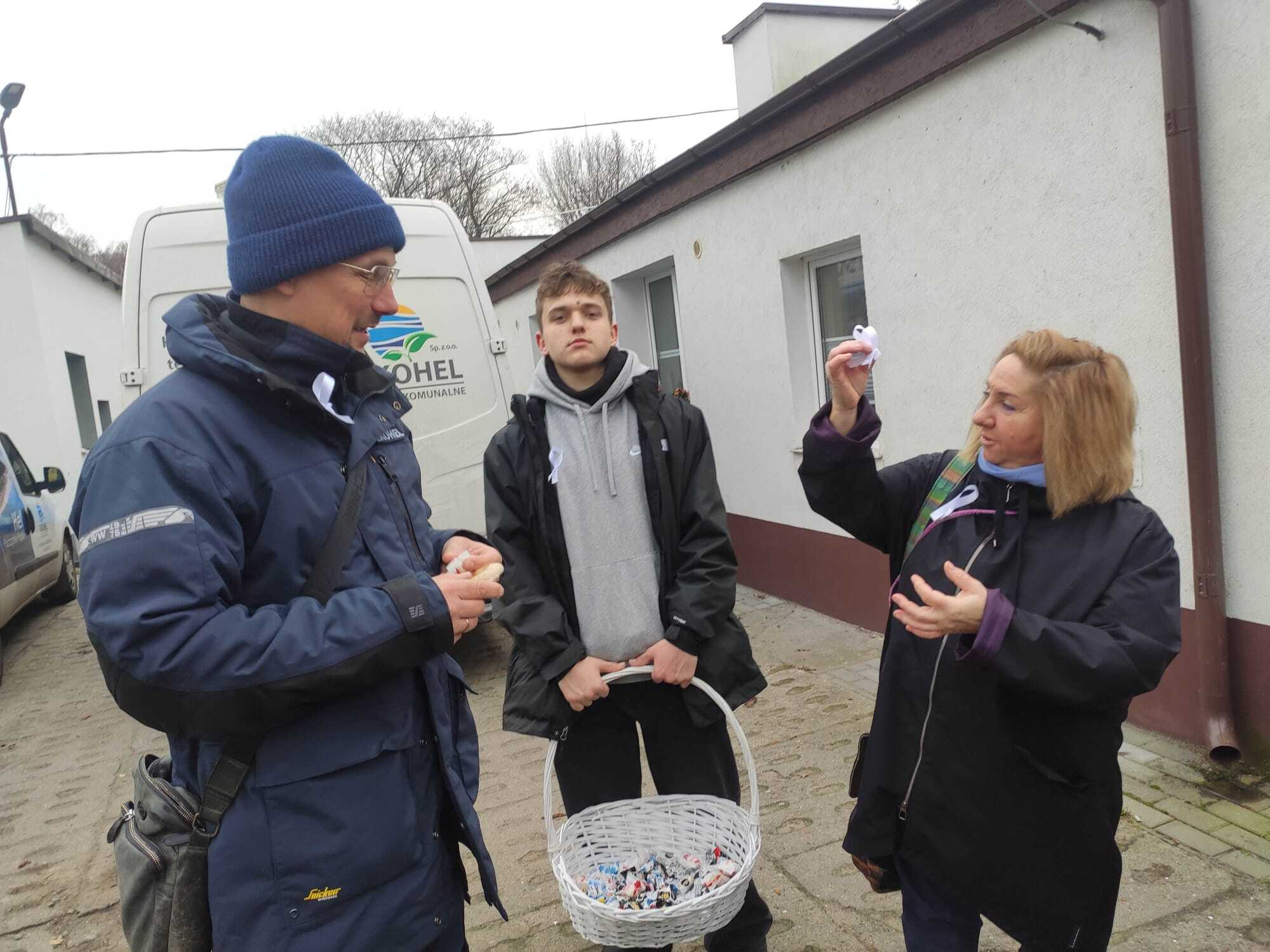 25 listopada Młodzież naszej szkoły wzięła udział w społecznej, symbolicznej akcji sprzeciwu wobec przemocy oraz solidarności z osobami jej doświadczającymi. Przeszliśmy główną ulicą Helu, przypinając Chętnym białe wstążki i częstując białymi łakociami. Symboliczny kolor miał prowadzić skojarzenia do niewinności tych, którzy stają się ofiarami różnych przejawów przemocy i czystości intencji uczestników kampanii. Przygotowaliśmy wstążki jeszcze w Tygodniu Edukacji Globalnej, realizując aktywności związane z powszechnymi prawami człowieka do życia w pokoju, dobrobycie i bez przemocy - CEL 5. Zrównoważony świat to dążenie zabezpieczające każdego obywatela Ziemi. Tym bardziej cieszymy się, że tego dnia gościliśmy w Urzędzie Miasta Hel, gdzie przyjęto nas ze zrozumieniem i entuzjazmem. Białe wstążki przypięliśmy wszystkim Mężczyznom w Urzędzie i wspierającym inicjatywę Kobietom. Świat bez przemocy to ciągle utopia, dlatego każdy głos w sprawie jest ważny.