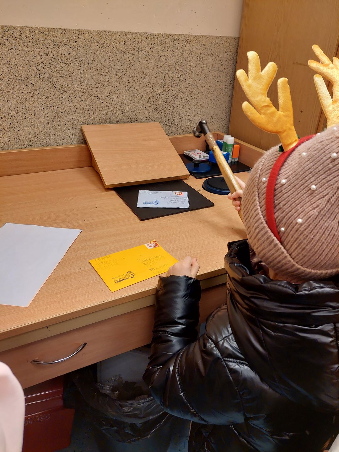 Przy pomocy naszych miłych gospodarzy podstemplowaliśmy samodzielnie nasze listy i opatrzyliśmy je pieczęcią „Priorytet”, bo to przecież bardzo ważne, aby na czas trafiły w ręce Świętego Mikołaja.
