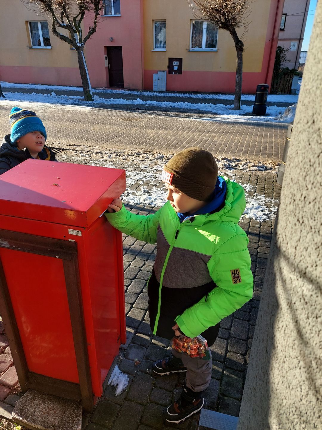 Dopiero uczymy się pisać listy, więc z zaciekawieniem słuchaliśmy opowieści Pana Sławka o tym, jak poprawnie zaadresować kopertę, by korespondencja trafiła do adresata. Poznaliśmy drogę listu od momentu wrzucenia go do skrzynki aż do momentu, kiedy trafi do odbiorcy.