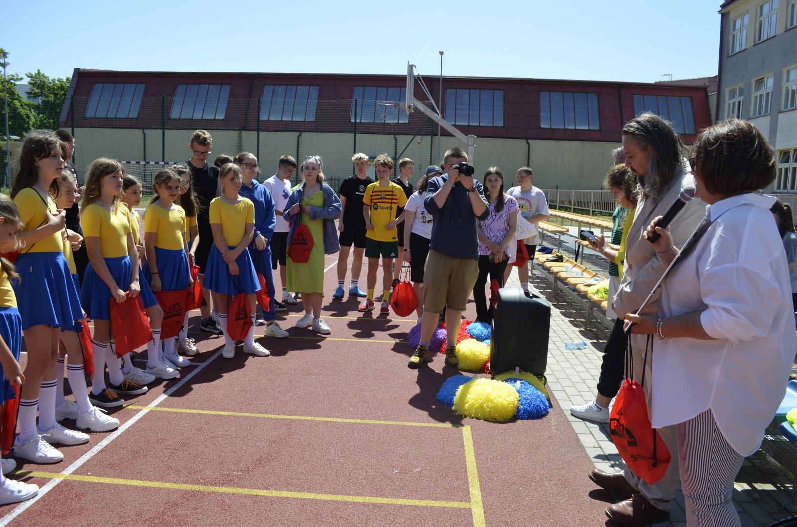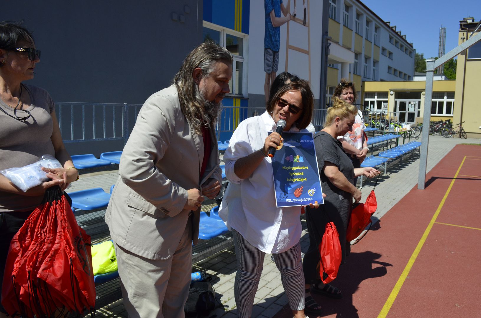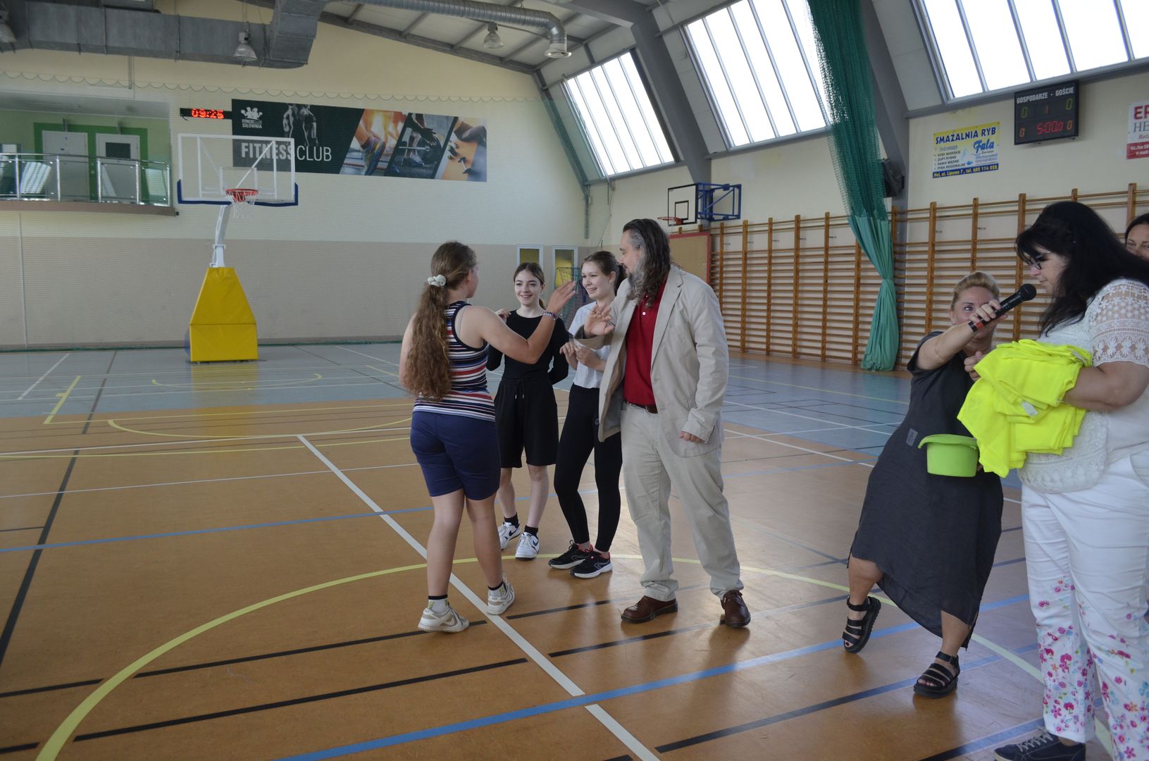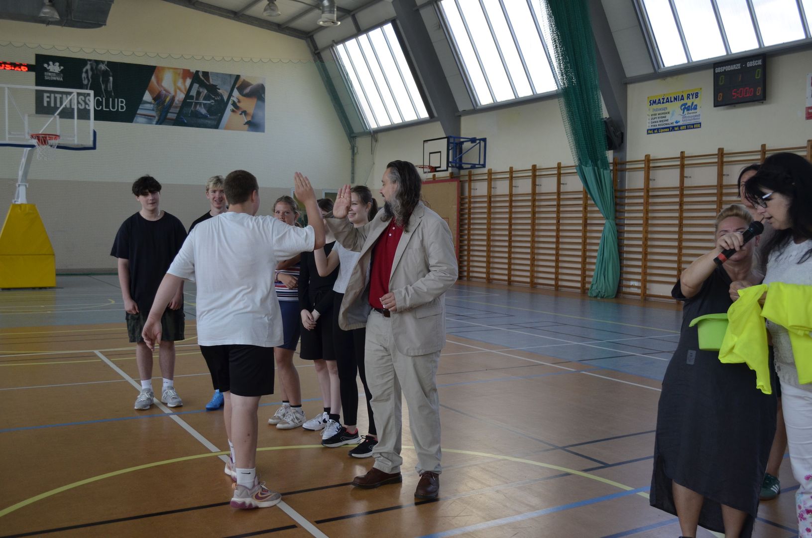 I stało się: we wtorek 28 maja w przyjacielskich meczach spotkały się drużyny z dwóch odległych acz lubiących się planet galaktyki półwyspu. Mecze piłki koszykowej, siatkowej i nożnej były od dawna wyczekiwaną sportową przygodą, w której wzięli udział ósmoklasiści z Jastarni i Helu podejmowani przez HEL-LO. Ta niezwykła koniunkcja przyniosła wiele dobrych emocji, kreatywną energię i zapał. W przerwach tanecznym dopingiem zagrzewały zawodników szkolne cheerleaderki a owocowy gościniec wzmacniał kondycję uczestników igrzysk. Niewątpliwie nasi sąsiedzi triumfowali na boiskach i serdecznie im gratulujemy. W majowym słonecznym dniu bawiliśmy się, budując planetarny aspekt zgody.