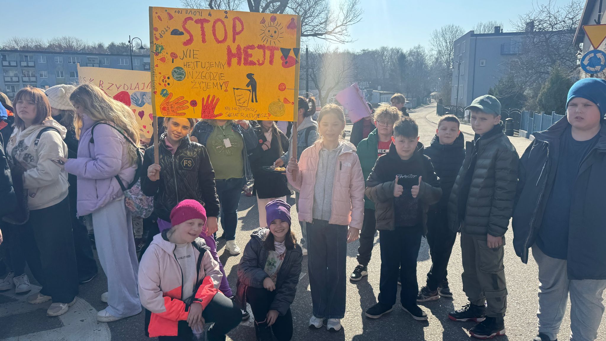 28.03.2025r godz. 9.00, niby zwykły poranek, jak co dzień, ale jakże wyjątkowy nie tylko przez piękne promienie słoneczne bijące nam z nieba. Bowiem dziś obchodzimy Międzynarodowy Dzień bez Kłamstwa i w ramach prowadzonego w tym roku szkolnym przez całą społeczność szkolną ZSO oraz Radę Rodziców projektu STOP HEJT, którego patronem jest Burmistrz Helu Pan Mirosław Wądołowski odbyliśmy miły spacer ulicami naszego miasta. Manifestowaliśmy przeciwko mowie nienawiści, a niosąc transparenty przekazaliśmy wszystkim ważne słowa STOP HEJT. Dziękujemy władzom miasta za przywitanie nas przy urzędzie miasta. Uczniowie każdego przechodnia poczęstowali słodką babeczką. Mamy nadzieję, że nasz przekaz będzie zawsze aktualny i nie będziemy obojętni na mowę nienawiści!!! Podziękowania ślemy dla Straży Miejskiej w Helu oraz wszystkim, którzy przyczynili się do organizacji tego wydarzenia.
