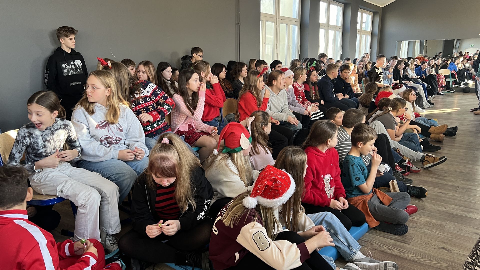 Na zakończenie mikołajkowego spotkania uczniowie HEL-LO pracujący z reżyserem p. Bartkiem Miernikiem i aktorką p. Alicją Stankiewicz nad fragmentami „Romea i Julii” stanęli przed publicznością szkolną, by w różnych konwencjach zmierzyć się najsłynniejszym tekstem o miłości. Różne Julie i inni od siebie a tak samo zakochani Romeowie, wcielenia piastunki Marty i towarzyszy Romea. Nieco klasyki, odrobina horroru, satyra i groteska. Emocje zawładnęły publicznością, pełni podziwu obserwowaliśmy licealistów mocno osadzonych w rolach, przeistoczonych i władających „szekspirowską mową”. Wielu słuchaczy przeżyło szok artystyczny. W lustrach teatru wszyscy, tak widz jak aktor, doznają wrażeń. Dziękujemy. Bardzo.