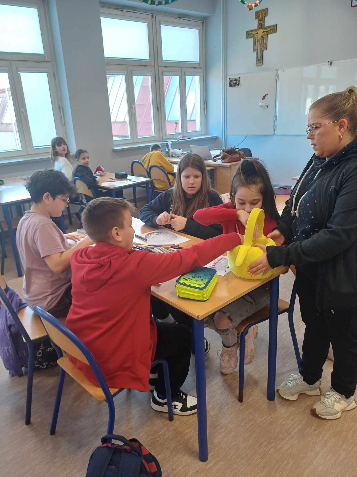 Dzisiaj w szkole świąteczna atmosfera. Rada Rodziców obdarowała wszystkich uczniów słodkościami, a w zamian otrzymaliśmy wiele uśmiechów i życzeń z okazji zbliżających się Świąt Wielkanocnych. To prawda, że gdy śmieje się dziecko śmieje się cały świat.