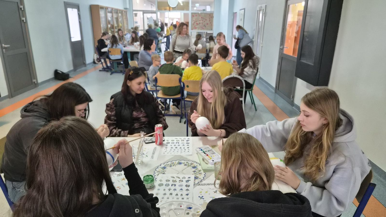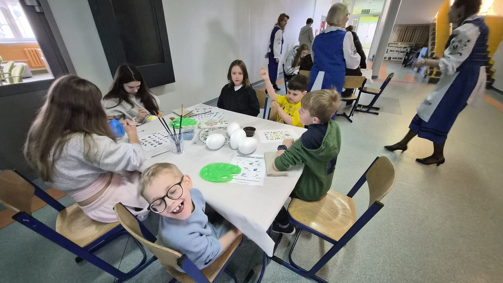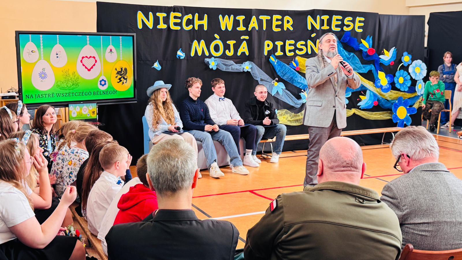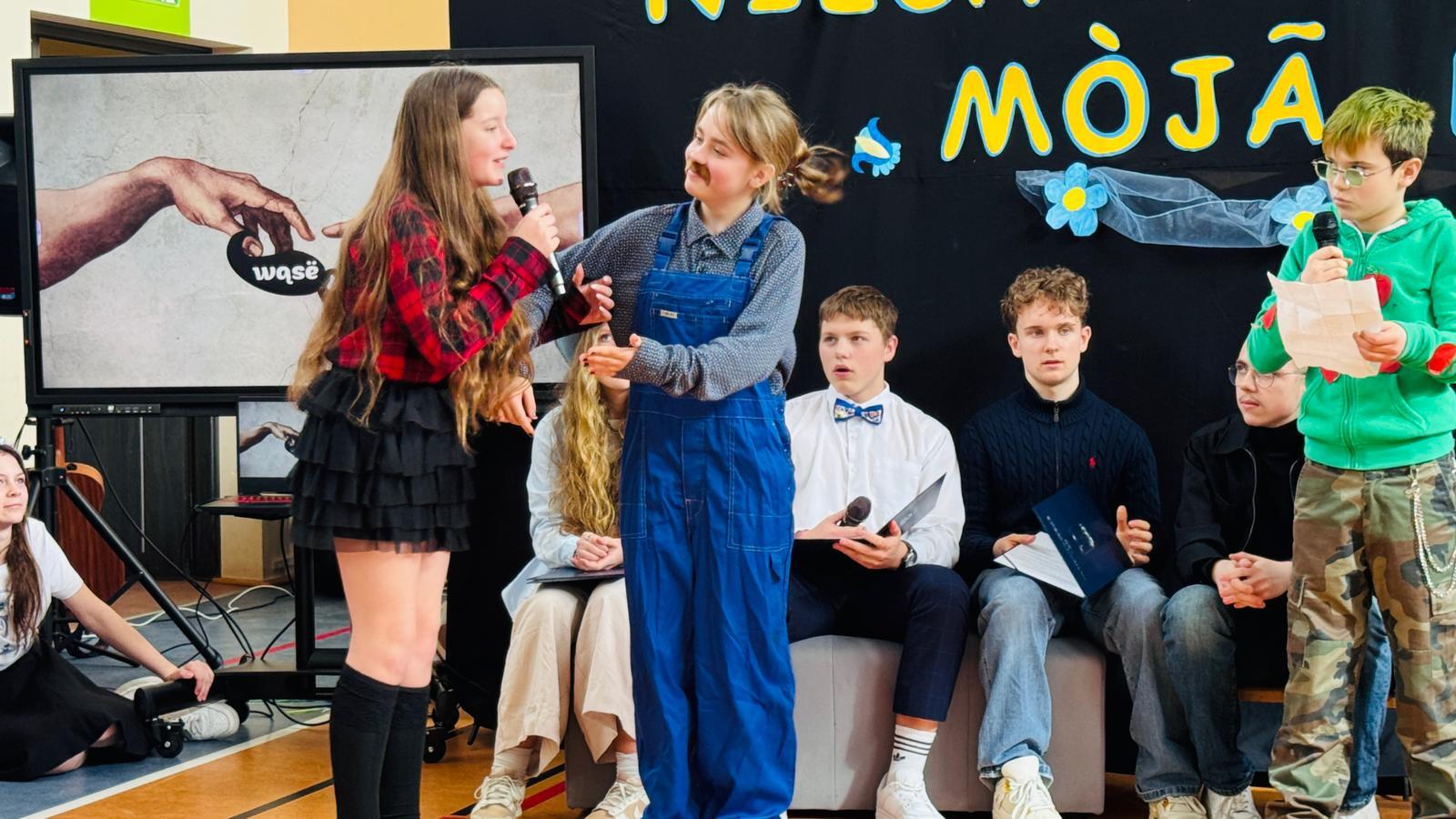 Po raz kolejny świętowaliśmy w szkole przynależność do małej ojczyzny - Kaszëbsczi. Właśnie 19 marca, tyle że 1238 roku, Kaszubi pojawili się oficjalnie na kartach historii, w dokumentach bulli wydanej przez papieża Grzegorza IX. Oczywiście Kaszubi już w VI wieku naszej ery zamieszkali na południowym brzegu Morza Bałtyckiego, związani z nim umacniali więź, która do dzisiaj jest żywa w świadomości wielu żyjących Tu od pokoleń ludzi i Tych, którzy wybrali to miejsce oczarowani jej echem. To je nasza zemia śpiewali Uczniowie, otwierając przedstawienie, które tym razem dotyczyło różnorodności kultury kaszubskiej. Podążało za fascynacjami: haftem kaszubskim, Bałtykiem, figurą zakochanych i wiecznie tęskniących, a także wyjaśniało zapisane w powiastkach kaszubskich tajemnice świata. I tak dowiedzieliśmy się, w jakim celu mężczyźni noszą wąsy i dlaczego pszczoły pracują nawet w niedzielę. Było wesoło, swobodnie, z myślą o prawdziwym świętowaniu. Nie zawiedli nas Goście, licznie przybyli przedstawiciele miasta i instytucji działających w Helu, a Zrzeszenie Kaszubsko Pomorskie oddział Hel od rana partnerowało nam w edukacyjnych działaniach. Licealiści podczas warsztatów kulinarnych przygotowywali śledzie w trzech odsłonach, zainteresowani zdobieniem jajek w charakterystyczne motywy haftu kaszubskiego pracowali na warsztatach plastycznych. Dodatkowo każda klasa w Szkole Podstawowej dzięki zajęciom prowadzonym przez najstarszych kaszubistów dowiedziała się o jastrowëch zwyczajach. Chętni wzięli udział w zajęciach o Rybim skarbcu Bałtyku i mogli pospacerować śladami gryfa. Tego dnia przypadł nam także kolejny szósti KASZËBSCZI CZWIÔRTK, gospodarzami wydarzenia była klasa 4 SP, która wraz z Rodzicami, wychowawcą oraz nauczycielem współorganizującym kształcenie przygotowywała dania na kaszubski gościniec i jednocześnie opiekowała się warsztatami zdobienia jajek.