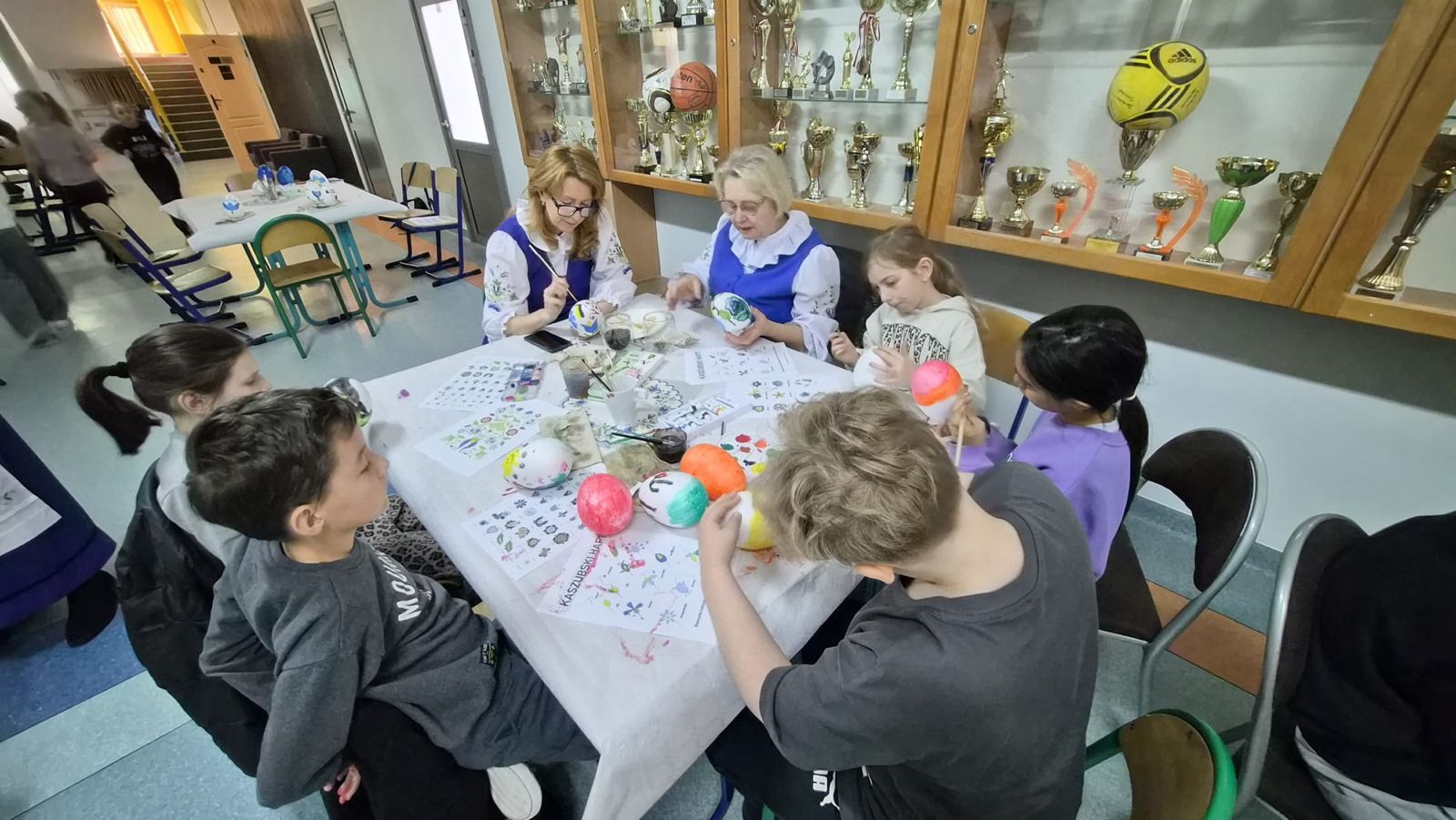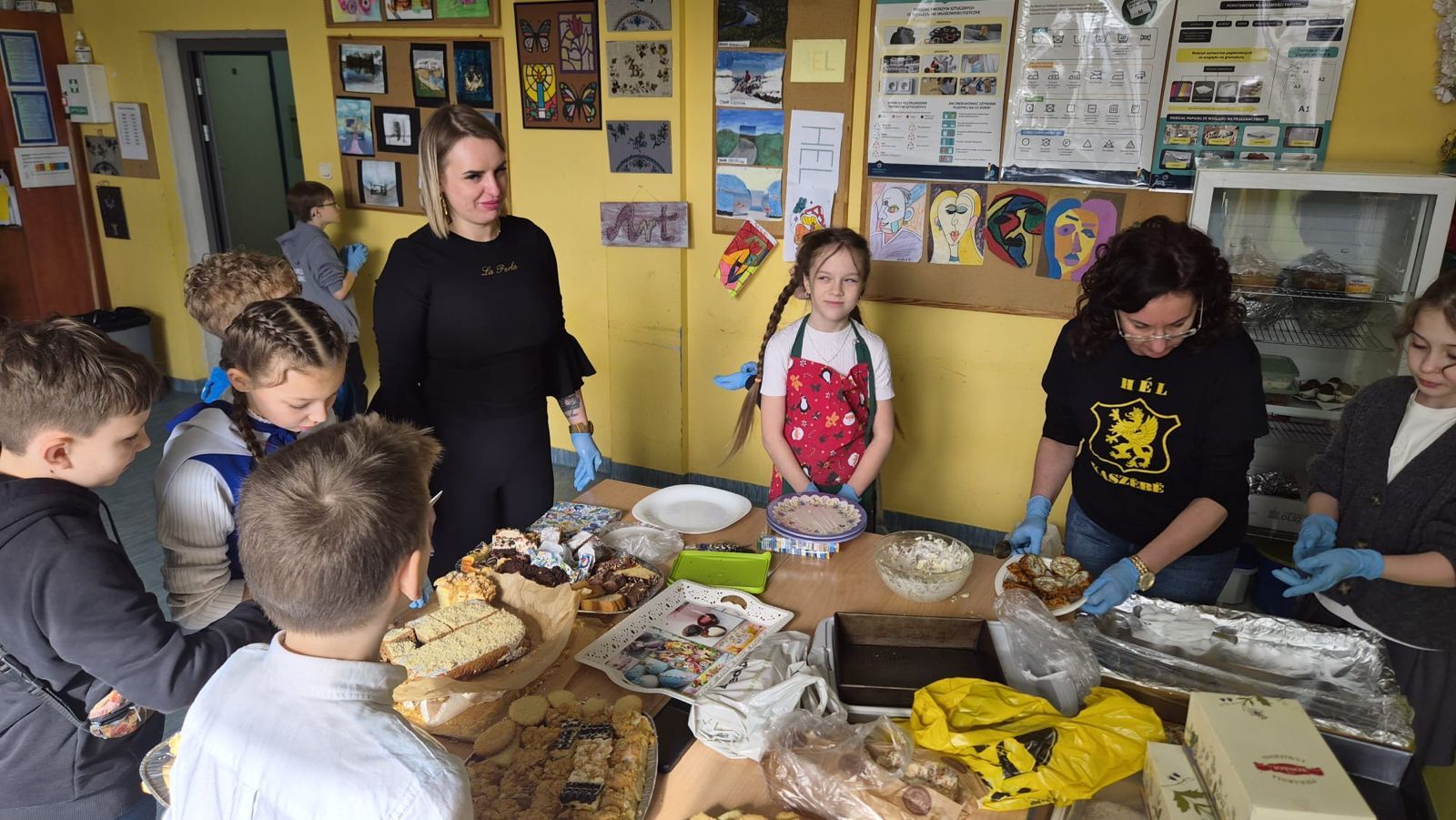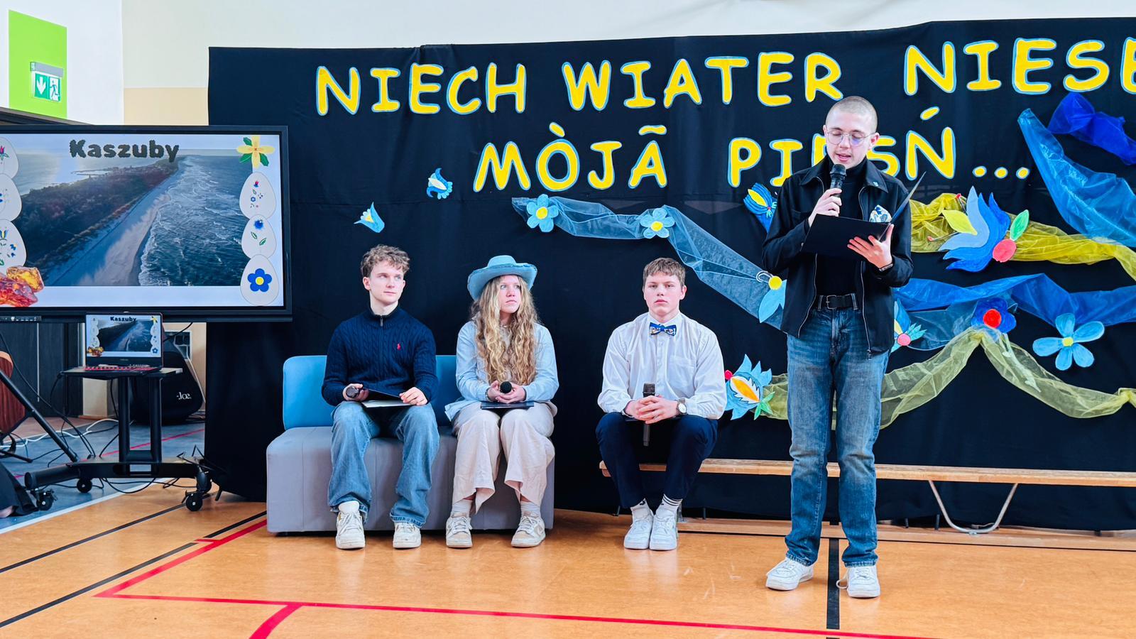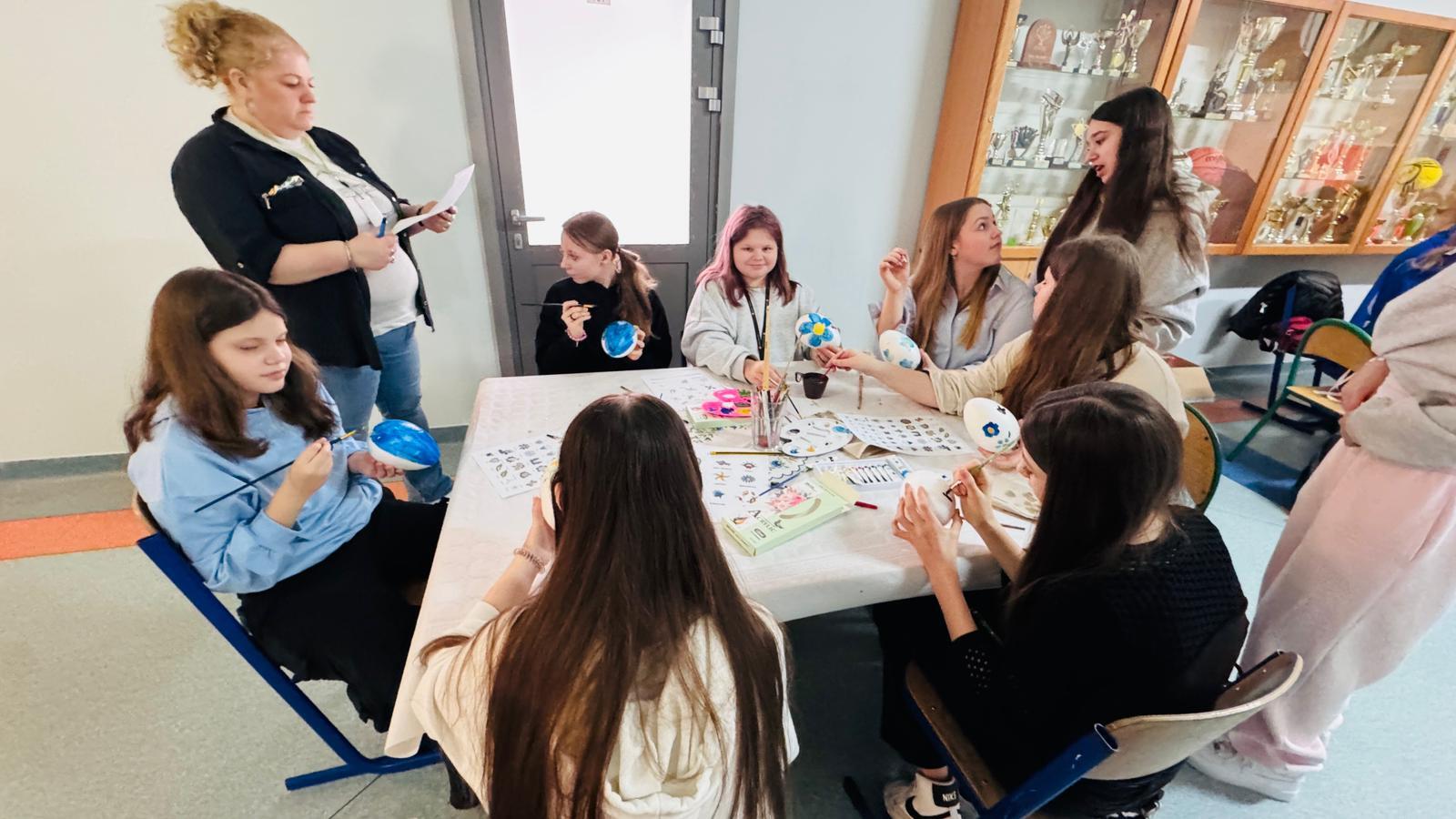 Po raz kolejny świętowaliśmy w szkole przynależność do małej ojczyzny - Kaszëbsczi. Właśnie 19 marca, tyle że 1238 roku, Kaszubi pojawili się oficjalnie na kartach historii, w dokumentach bulli wydanej przez papieża Grzegorza IX. Oczywiście Kaszubi już w VI wieku naszej ery zamieszkali na południowym brzegu Morza Bałtyckiego, związani z nim umacniali więź, która do dzisiaj jest żywa w świadomości wielu żyjących Tu od pokoleń ludzi i Tych, którzy wybrali to miejsce oczarowani jej echem. To je nasza zemia śpiewali Uczniowie, otwierając przedstawienie, które tym razem dotyczyło różnorodności kultury kaszubskiej. Podążało za fascynacjami: haftem kaszubskim, Bałtykiem, figurą zakochanych i wiecznie tęskniących, a także wyjaśniało zapisane w powiastkach kaszubskich tajemnice świata. I tak dowiedzieliśmy się, w jakim celu mężczyźni noszą wąsy i dlaczego pszczoły pracują nawet w niedzielę. Było wesoło, swobodnie, z myślą o prawdziwym świętowaniu. Nie zawiedli nas Goście, licznie przybyli przedstawiciele miasta i instytucji działających w Helu, a Zrzeszenie Kaszubsko Pomorskie oddział Hel od rana partnerowało nam w edukacyjnych działaniach. Licealiści podczas warsztatów kulinarnych przygotowywali śledzie w trzech odsłonach, zainteresowani zdobieniem jajek w charakterystyczne motywy haftu kaszubskiego pracowali na warsztatach plastycznych. Dodatkowo każda klasa w Szkole Podstawowej dzięki zajęciom prowadzonym przez najstarszych kaszubistów dowiedziała się o jastrowëch zwyczajach. Chętni wzięli udział w zajęciach o Rybim skarbcu Bałtyku i mogli pospacerować śladami gryfa. Tego dnia przypadł nam także kolejny szósti KASZËBSCZI CZWIÔRTK, gospodarzami wydarzenia była klasa 4 SP, która wraz z Rodzicami, wychowawcą oraz nauczycielem współorganizującym kształcenie przygotowywała dania na kaszubski gościniec i jednocześnie opiekowała się warsztatami zdobienia jajek.
