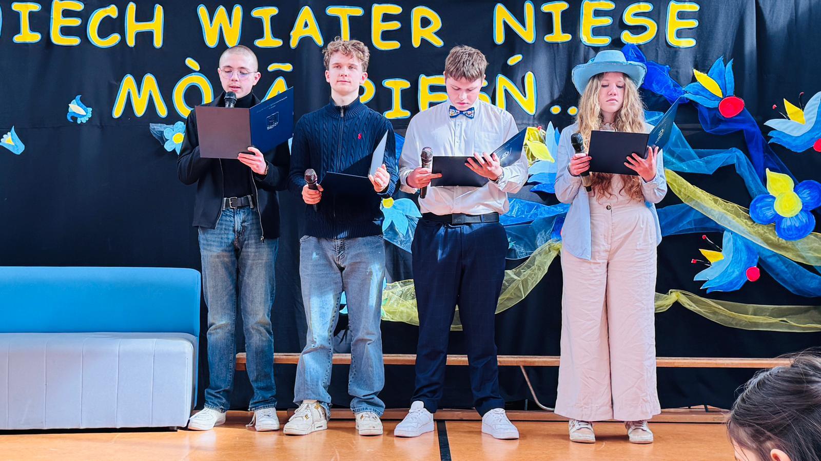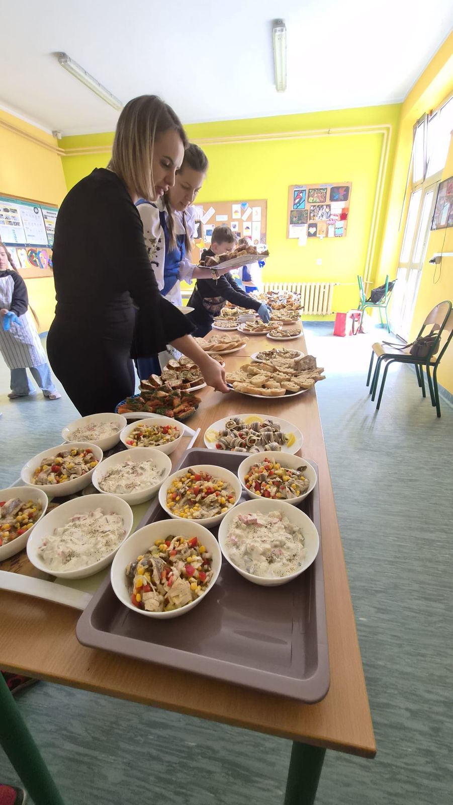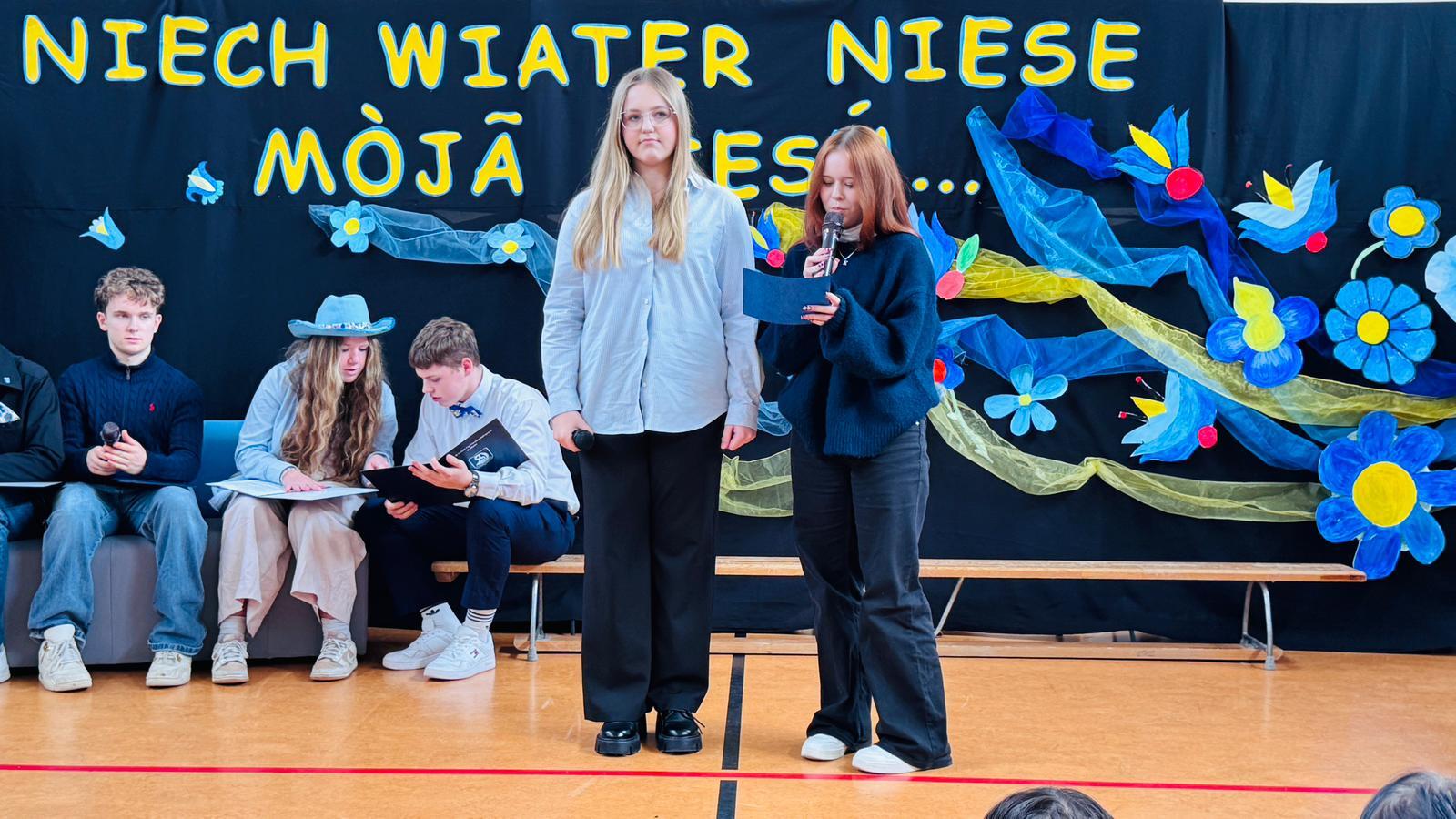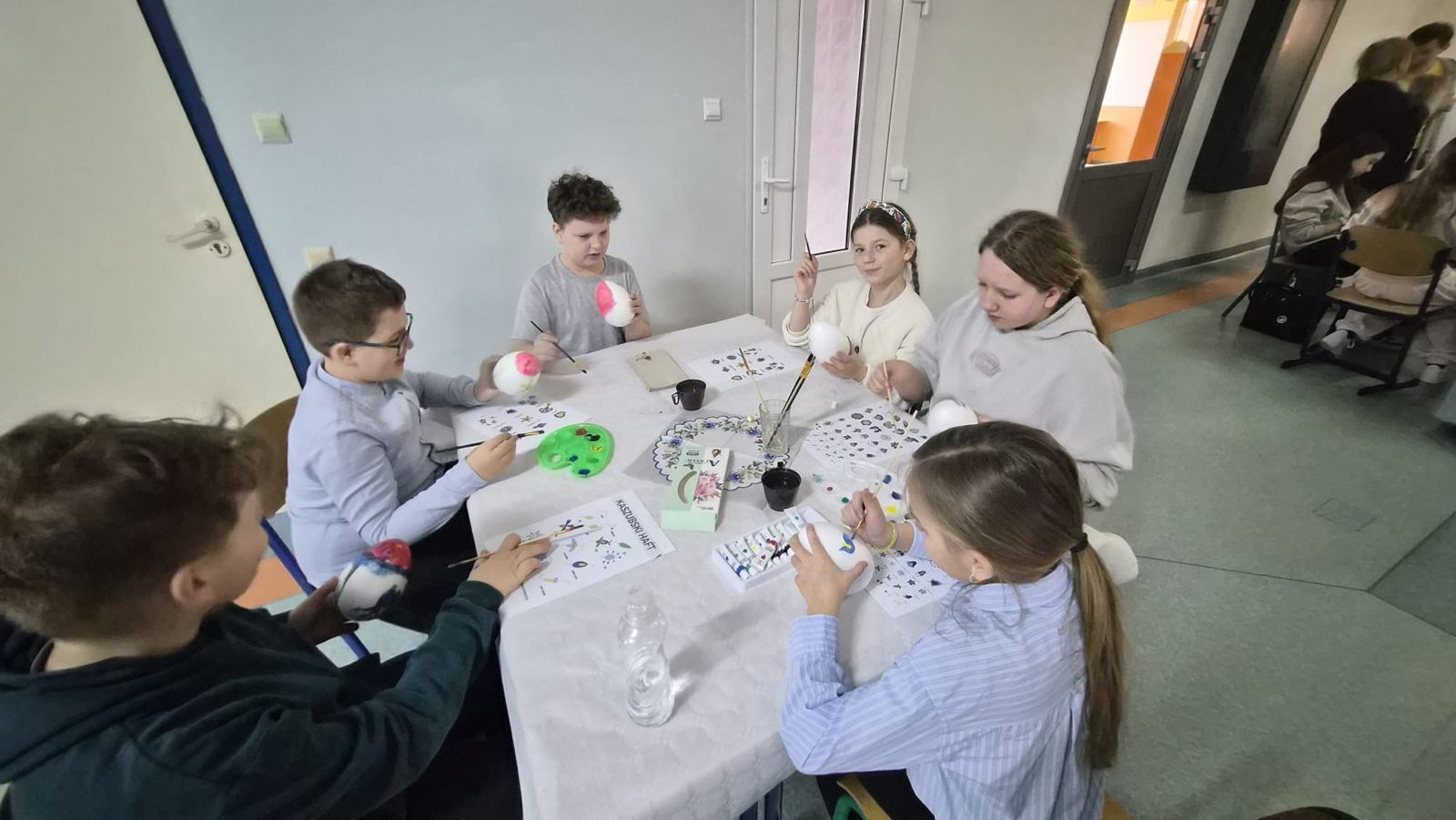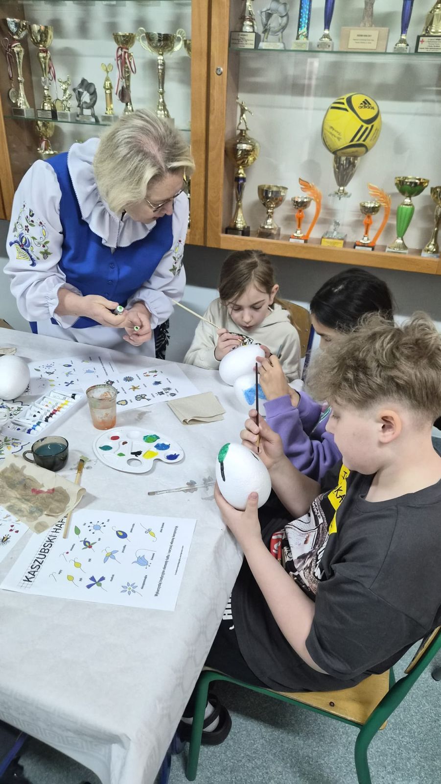 Po raz kolejny świętowaliśmy w szkole przynależność do małej ojczyzny - Kaszëbsczi. Właśnie 19 marca, tyle że 1238 roku, Kaszubi pojawili się oficjalnie na kartach historii, w dokumentach bulli wydanej przez papieża Grzegorza IX. Oczywiście Kaszubi już w VI wieku naszej ery zamieszkali na południowym brzegu Morza Bałtyckiego, związani z nim umacniali więź, która do dzisiaj jest żywa w świadomości wielu żyjących Tu od pokoleń ludzi i Tych, którzy wybrali to miejsce oczarowani jej echem. To je nasza zemia śpiewali Uczniowie, otwierając przedstawienie, które tym razem dotyczyło różnorodności kultury kaszubskiej. Podążało za fascynacjami: haftem kaszubskim, Bałtykiem, figurą zakochanych i wiecznie tęskniących, a także wyjaśniało zapisane w powiastkach kaszubskich tajemnice świata. I tak dowiedzieliśmy się, w jakim celu mężczyźni noszą wąsy i dlaczego pszczoły pracują nawet w niedzielę. Było wesoło, swobodnie, z myślą o prawdziwym świętowaniu. Nie zawiedli nas Goście, licznie przybyli przedstawiciele miasta i instytucji działających w Helu, a Zrzeszenie Kaszubsko Pomorskie oddział Hel od rana partnerowało nam w edukacyjnych działaniach. Licealiści podczas warsztatów kulinarnych przygotowywali śledzie w trzech odsłonach, zainteresowani zdobieniem jajek w charakterystyczne motywy haftu kaszubskiego pracowali na warsztatach plastycznych. Dodatkowo każda klasa w Szkole Podstawowej dzięki zajęciom prowadzonym przez najstarszych kaszubistów dowiedziała się o jastrowëch zwyczajach. Chętni wzięli udział w zajęciach o Rybim skarbcu Bałtyku i mogli pospacerować śladami gryfa. Tego dnia przypadł nam także kolejny szósti KASZËBSCZI CZWIÔRTK, gospodarzami wydarzenia była klasa 4 SP, która wraz z Rodzicami, wychowawcą oraz nauczycielem współorganizującym kształcenie przygotowywała dania na kaszubski gościniec i jednocześnie opiekowała się warsztatami zdobienia jajek.