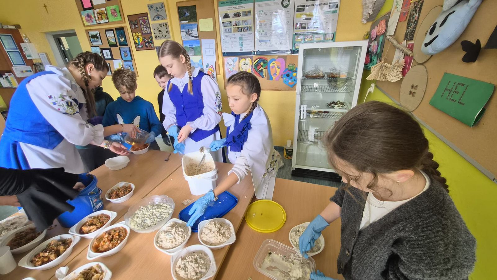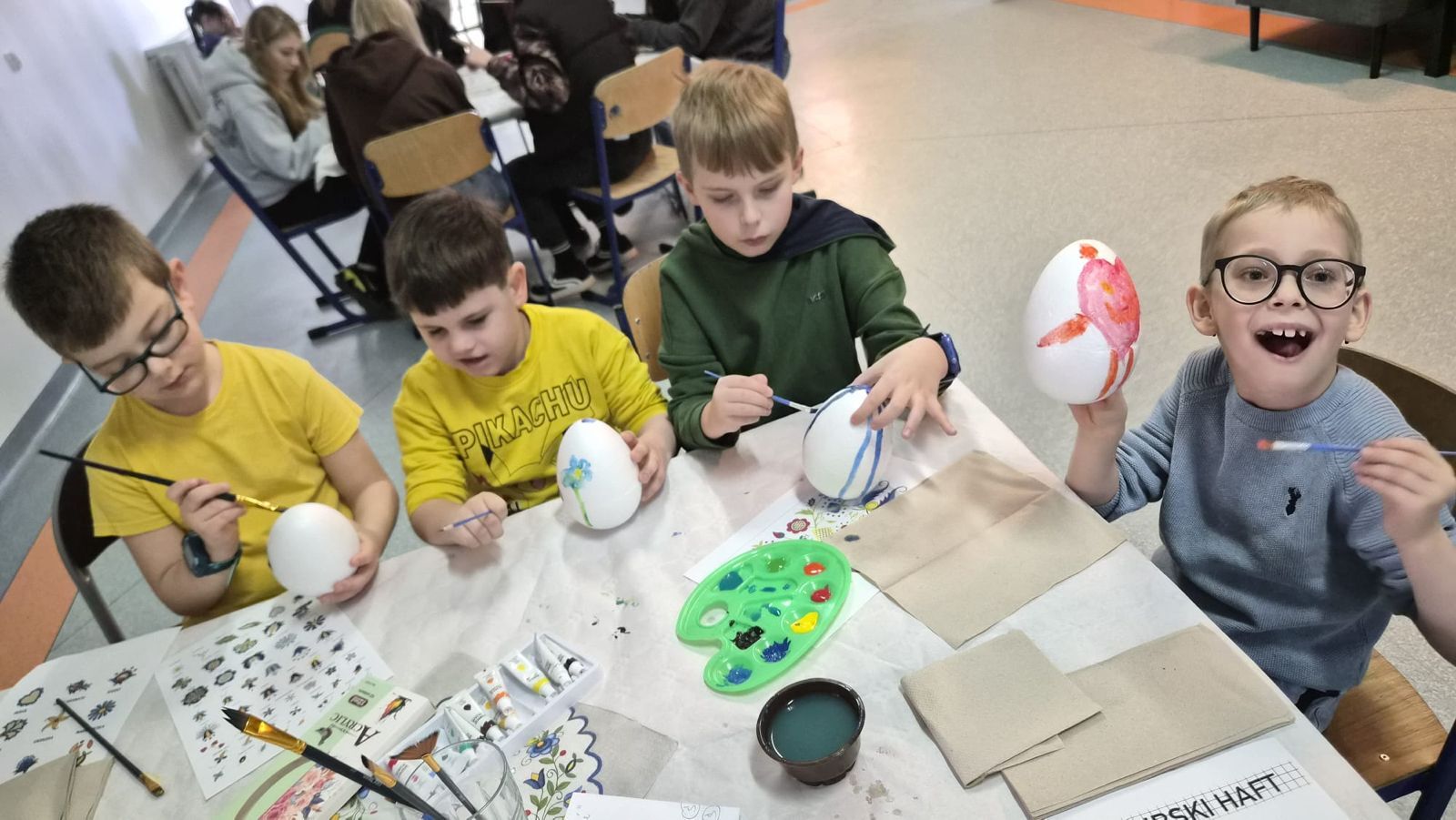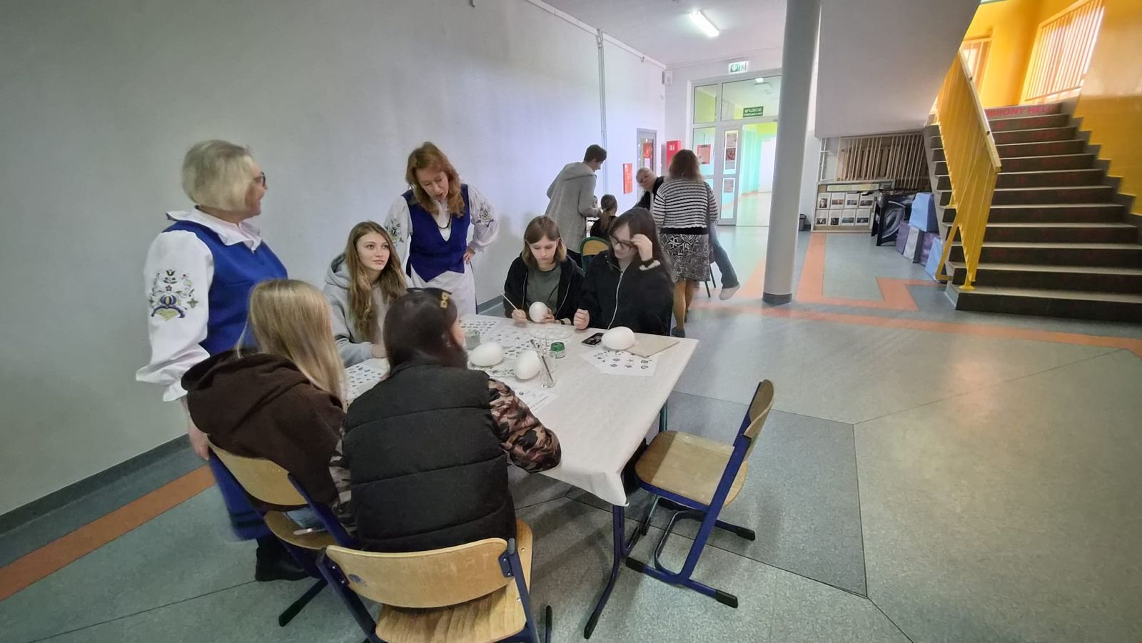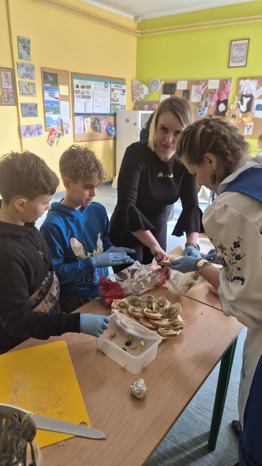 Po raz kolejny świętowaliśmy w szkole przynależność do małej ojczyzny - Kaszëbsczi. Właśnie 19 marca, tyle że 1238 roku, Kaszubi pojawili się oficjalnie na kartach historii, w dokumentach bulli wydanej przez papieża Grzegorza IX. Oczywiście Kaszubi już w VI wieku naszej ery zamieszkali na południowym brzegu Morza Bałtyckiego, związani z nim umacniali więź, która do dzisiaj jest żywa w świadomości wielu żyjących Tu od pokoleń ludzi i Tych, którzy wybrali to miejsce oczarowani jej echem. To je nasza zemia śpiewali Uczniowie, otwierając przedstawienie, które tym razem dotyczyło różnorodności kultury kaszubskiej. Podążało za fascynacjami: haftem kaszubskim, Bałtykiem, figurą zakochanych i wiecznie tęskniących, a także wyjaśniało zapisane w powiastkach kaszubskich tajemnice świata. I tak dowiedzieliśmy się, w jakim celu mężczyźni noszą wąsy i dlaczego pszczoły pracują nawet w niedzielę. Było wesoło, swobodnie, z myślą o prawdziwym świętowaniu. Nie zawiedli nas Goście, licznie przybyli przedstawiciele miasta i instytucji działających w Helu, a Zrzeszenie Kaszubsko Pomorskie oddział Hel od rana partnerowało nam w edukacyjnych działaniach. Licealiści podczas warsztatów kulinarnych przygotowywali śledzie w trzech odsłonach, zainteresowani zdobieniem jajek w charakterystyczne motywy haftu kaszubskiego pracowali na warsztatach plastycznych. Dodatkowo każda klasa w Szkole Podstawowej dzięki zajęciom prowadzonym przez najstarszych kaszubistów dowiedziała się o jastrowëch zwyczajach. Chętni wzięli udział w zajęciach o Rybim skarbcu Bałtyku i mogli pospacerować śladami gryfa. Tego dnia przypadł nam także kolejny szósti KASZËBSCZI CZWIÔRTK, gospodarzami wydarzenia była klasa 4 SP, która wraz z Rodzicami, wychowawcą oraz nauczycielem współorganizującym kształcenie przygotowywała dania na kaszubski gościniec i jednocześnie opiekowała się warsztatami zdobienia jajek.