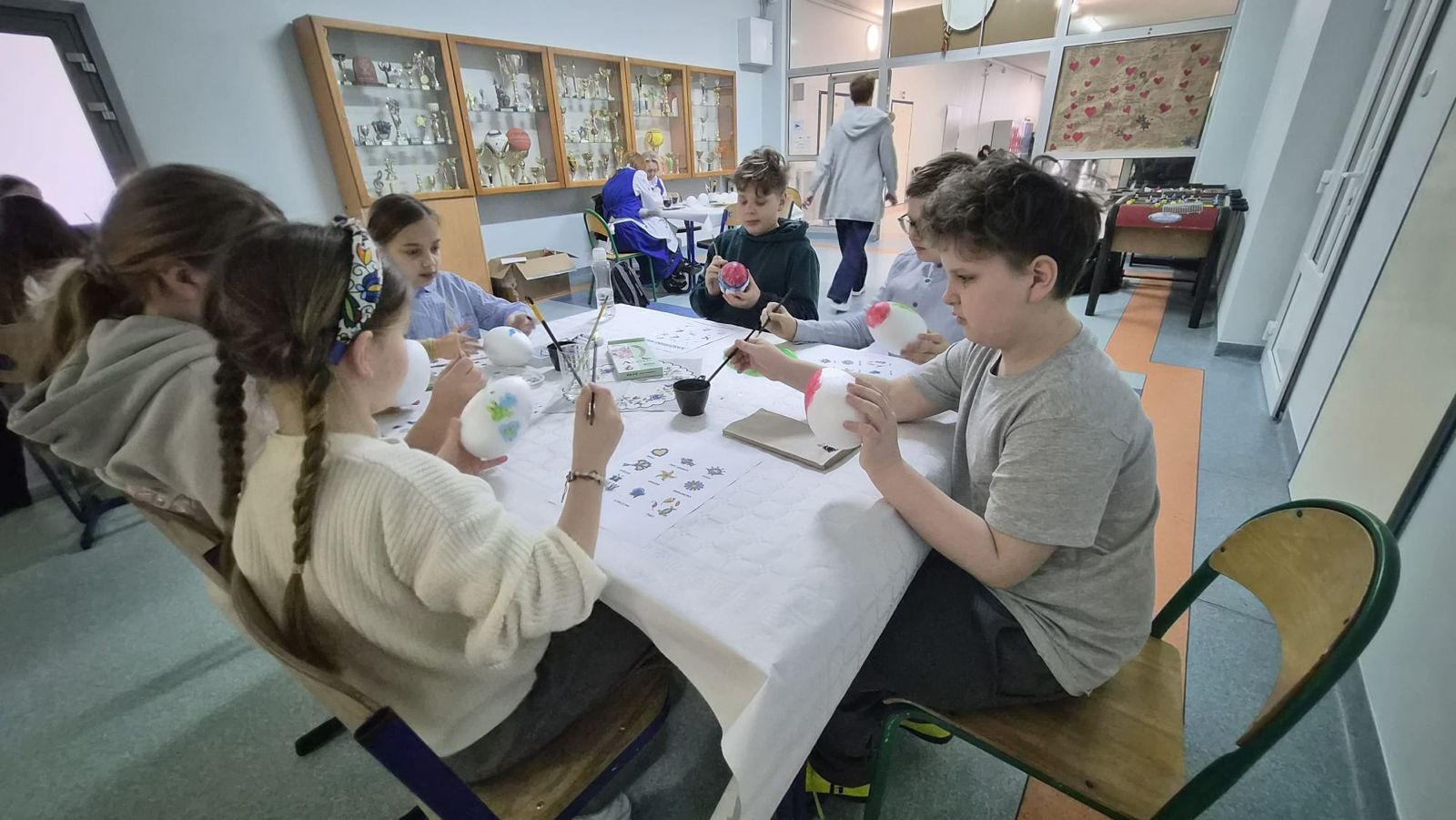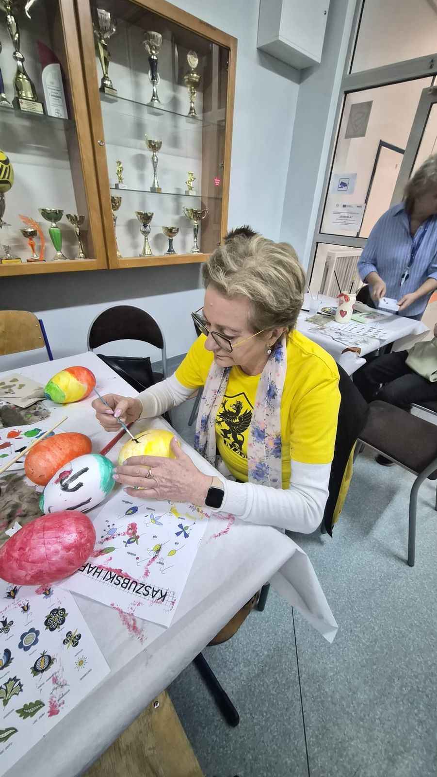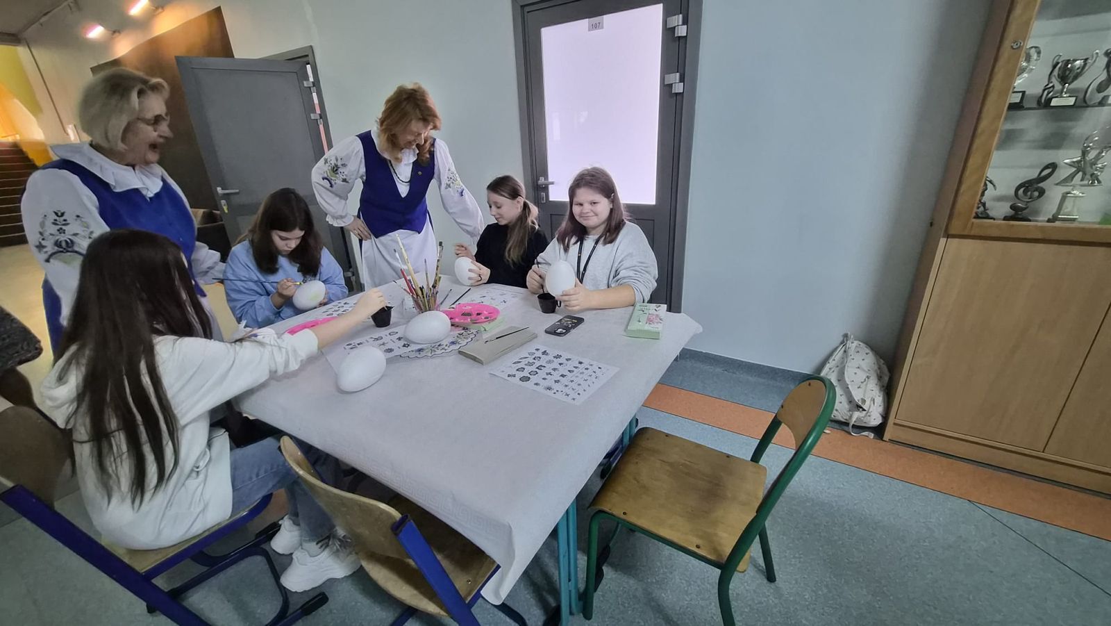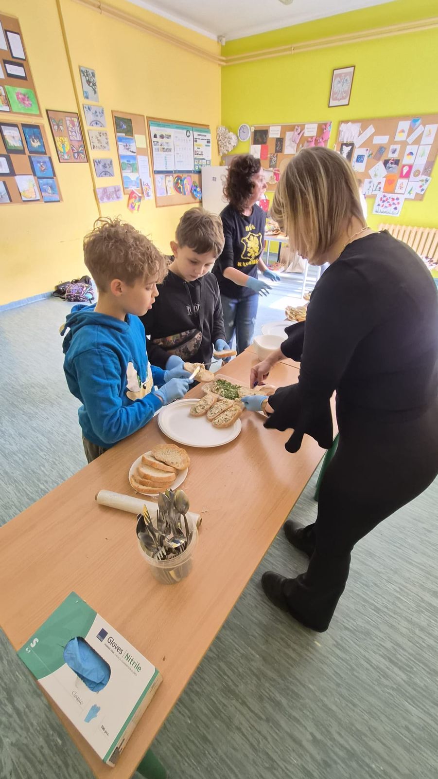 Po raz kolejny świętowaliśmy w szkole przynależność do małej ojczyzny - Kaszëbsczi. Właśnie 19 marca, tyle że 1238 roku, Kaszubi pojawili się oficjalnie na kartach historii, w dokumentach bulli wydanej przez papieża Grzegorza IX. Oczywiście Kaszubi już w VI wieku naszej ery zamieszkali na południowym brzegu Morza Bałtyckiego, związani z nim umacniali więź, która do dzisiaj jest żywa w świadomości wielu żyjących Tu od pokoleń ludzi i Tych, którzy wybrali to miejsce oczarowani jej echem. To je nasza zemia śpiewali Uczniowie, otwierając przedstawienie, które tym razem dotyczyło różnorodności kultury kaszubskiej. Podążało za fascynacjami: haftem kaszubskim, Bałtykiem, figurą zakochanych i wiecznie tęskniących, a także wyjaśniało zapisane w powiastkach kaszubskich tajemnice świata. I tak dowiedzieliśmy się, w jakim celu mężczyźni noszą wąsy i dlaczego pszczoły pracują nawet w niedzielę. Było wesoło, swobodnie, z myślą o prawdziwym świętowaniu. Nie zawiedli nas Goście, licznie przybyli przedstawiciele miasta i instytucji działających w Helu, a Zrzeszenie Kaszubsko Pomorskie oddział Hel od rana partnerowało nam w edukacyjnych działaniach. Licealiści podczas warsztatów kulinarnych przygotowywali śledzie w trzech odsłonach, zainteresowani zdobieniem jajek w charakterystyczne motywy haftu kaszubskiego pracowali na warsztatach plastycznych. Dodatkowo każda klasa w Szkole Podstawowej dzięki zajęciom prowadzonym przez najstarszych kaszubistów dowiedziała się o jastrowëch zwyczajach. Chętni wzięli udział w zajęciach o Rybim skarbcu Bałtyku i mogli pospacerować śladami gryfa. Tego dnia przypadł nam także kolejny szósti KASZËBSCZI CZWIÔRTK, gospodarzami wydarzenia była klasa 4 SP, która wraz z Rodzicami, wychowawcą oraz nauczycielem współorganizującym kształcenie przygotowywała dania na kaszubski gościniec i jednocześnie opiekowała się warsztatami zdobienia jajek.