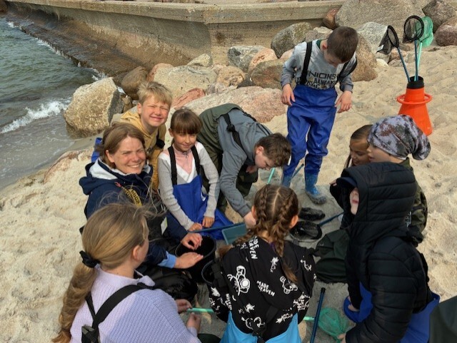 W pierwszym etapie uczniowie "uzbrojeni" w wodery i podbieraki łowili żyjątka, a następnie na plaży odbyła się analiza zgromadzonego materiału.