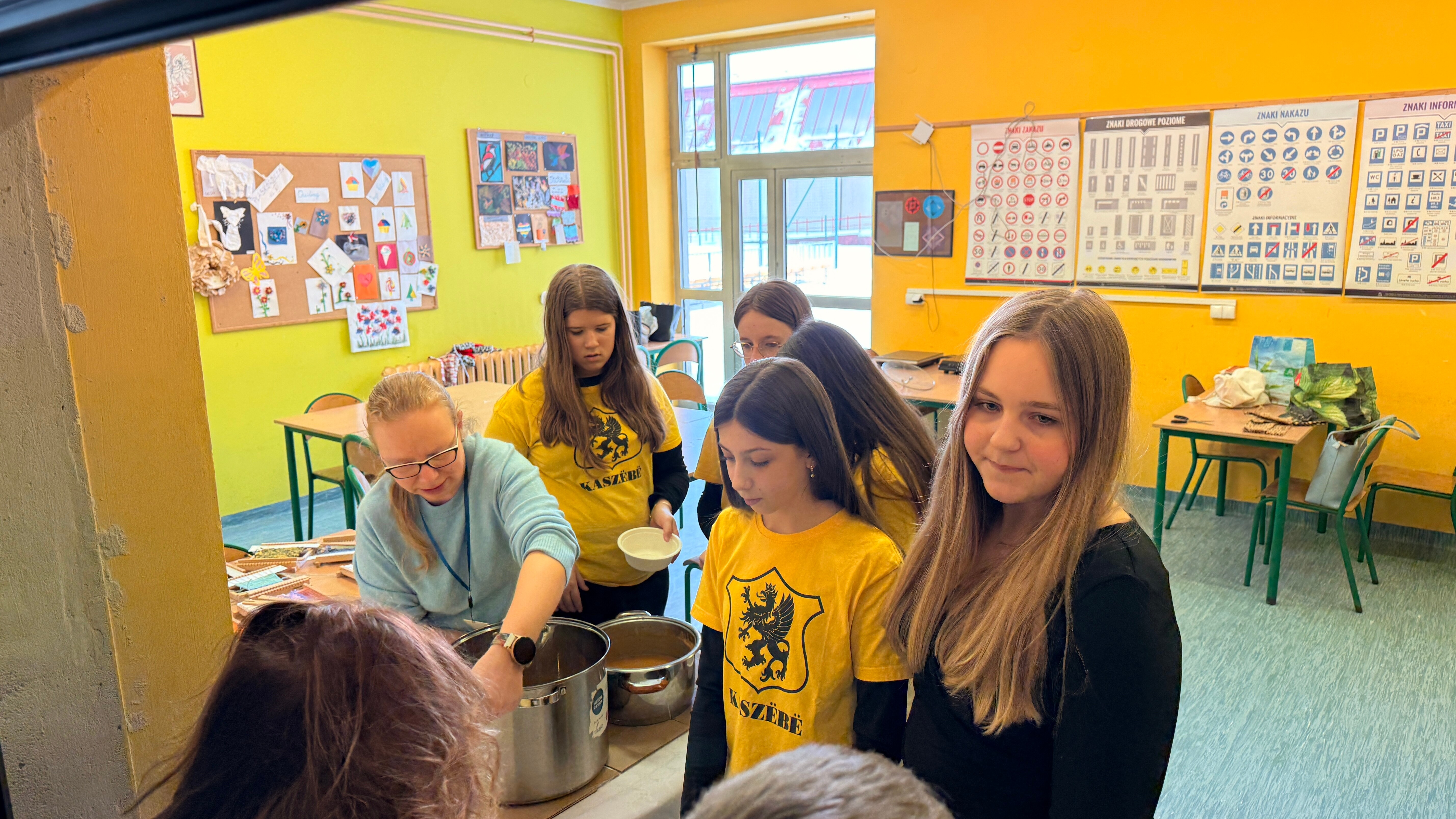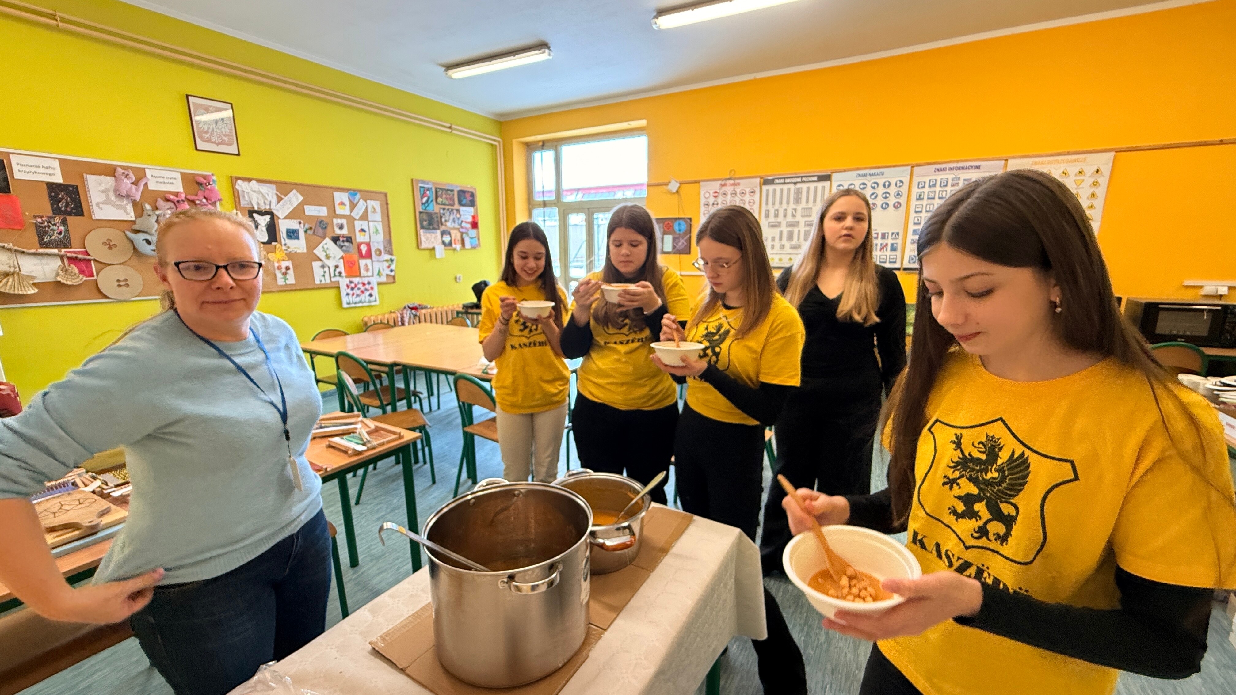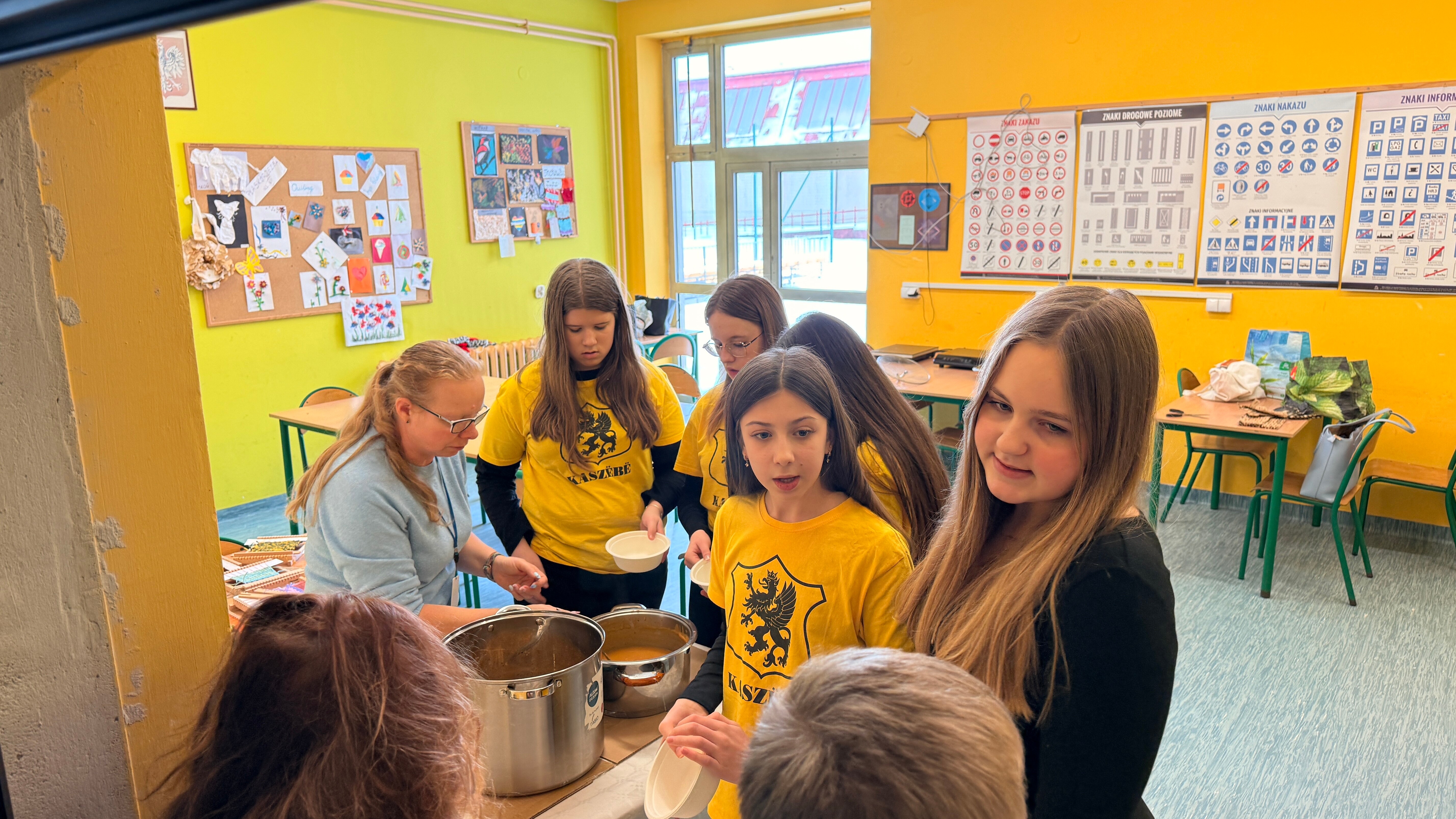 Gęstą zupę na gęsinie podaje się na Kaszubach jako danie główne. Jest pożywna i rozgrzewająca, obowiązkowo obsypana majerankiem. Nasze szkolne zupy, bo podano je w dwóch wariantach, dogodziły smakami tym, którzy spożywają mięso i tym, którzy się od niego powstrzymują. Klasa siódma dogadzała każdemu. A tajemnicze wywary do zupy z brukwi przygotowała Pani Anna Oniszczuk z helskiego oddziału ZKP, której serdecznie dziękujemy i pozdrawiamy.