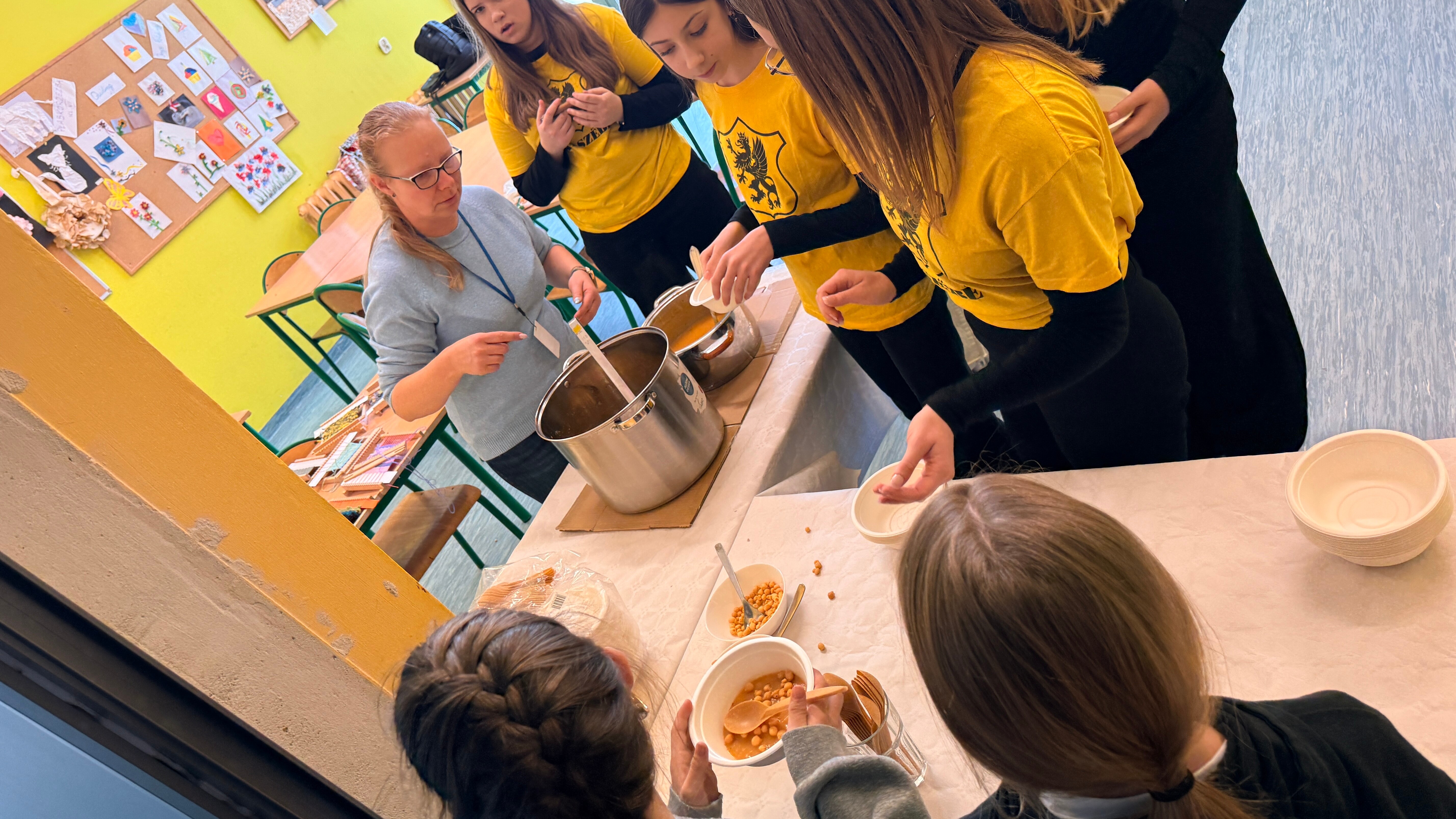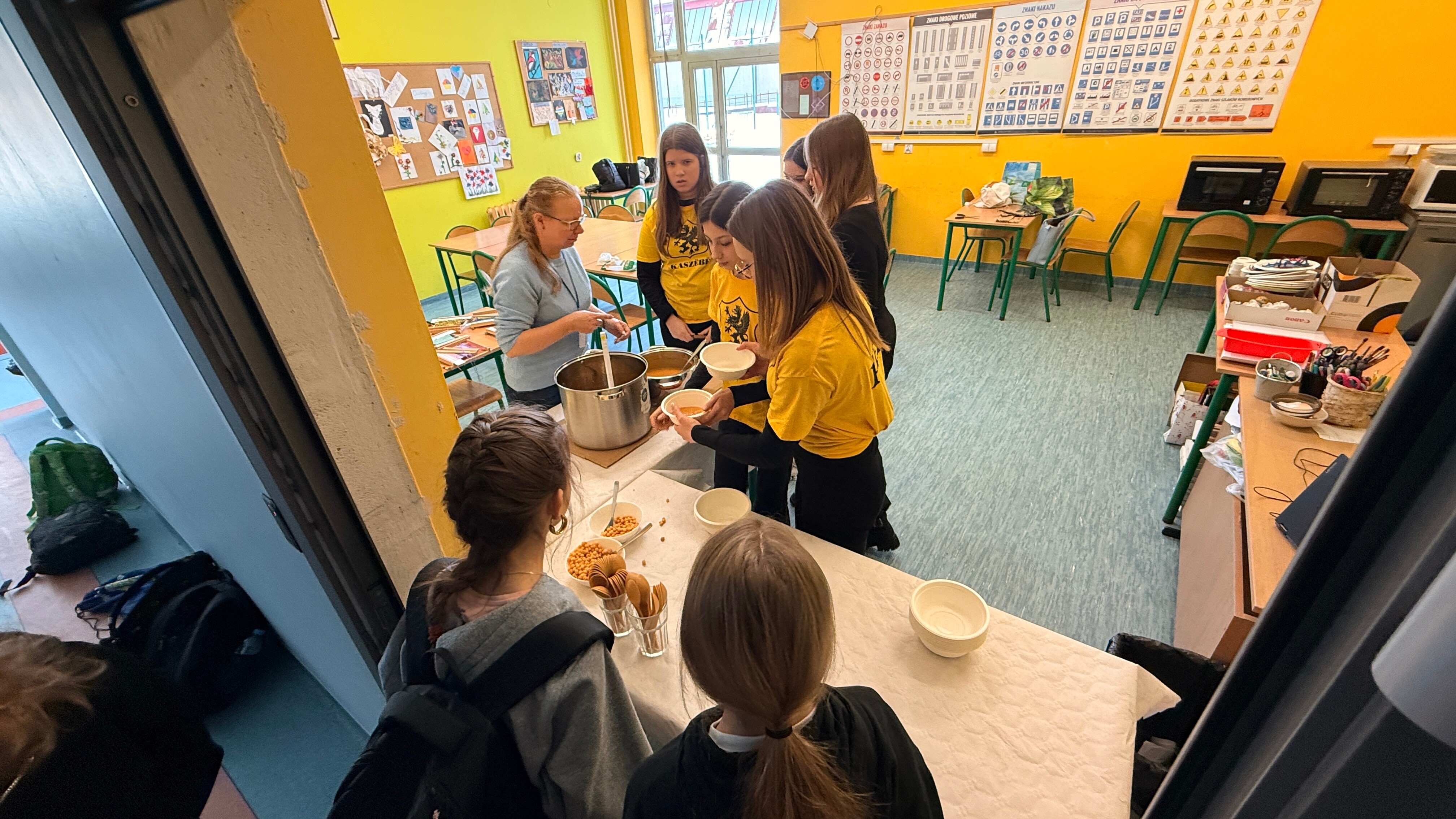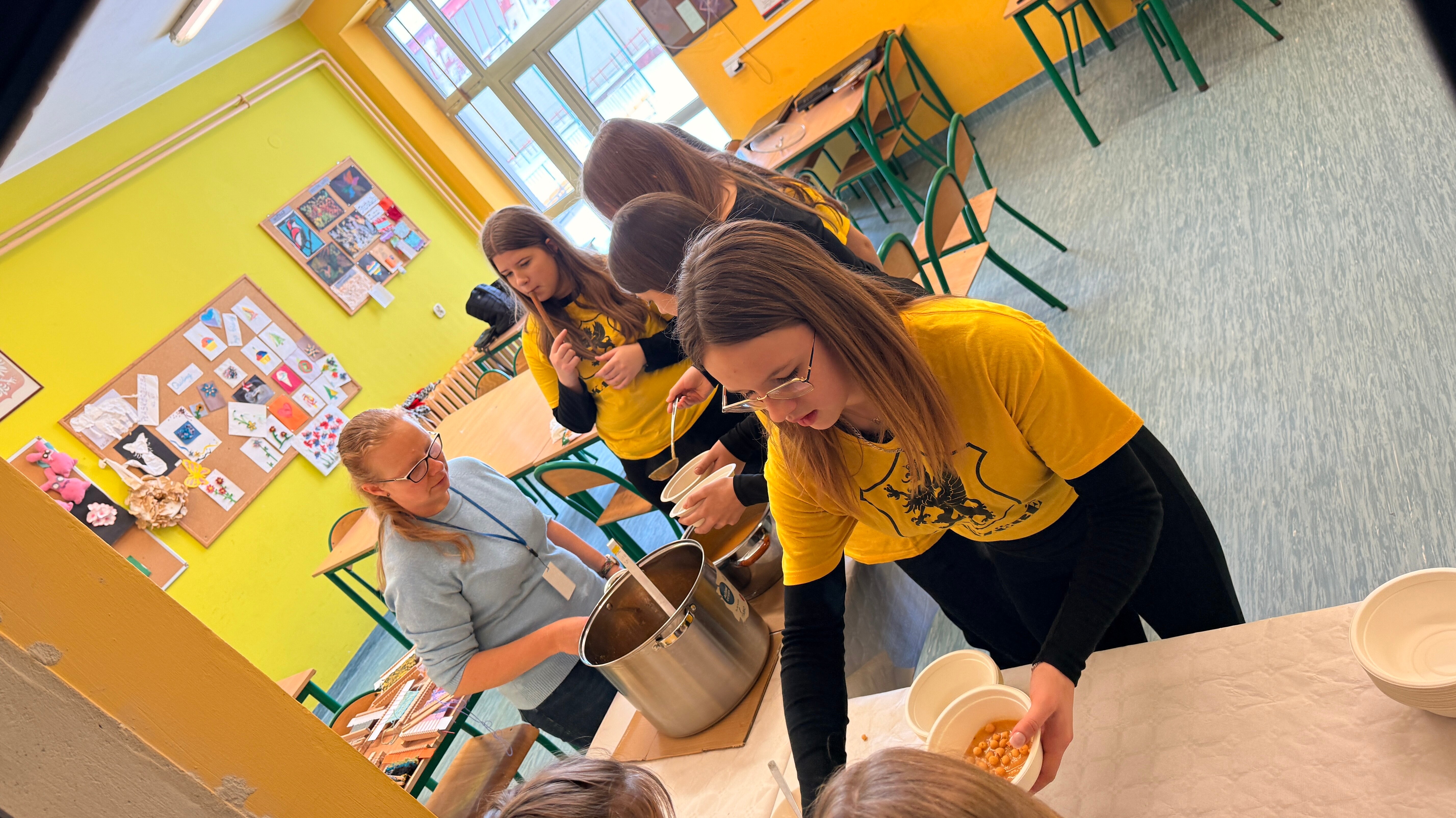 Gęstą zupę na gęsinie podaje się na Kaszubach jako danie główne. Jest pożywna i rozgrzewająca, obowiązkowo obsypana majerankiem. Nasze szkolne zupy, bo podano je w dwóch wariantach, dogodziły smakami tym, którzy spożywają mięso i tym, którzy się od niego powstrzymują. Klasa siódma dogadzała każdemu. A tajemnicze wywary do zupy z brukwi przygotowała Pani Anna Oniszczuk z helskiego oddziału ZKP, której serdecznie dziękujemy i pozdrawiamy.