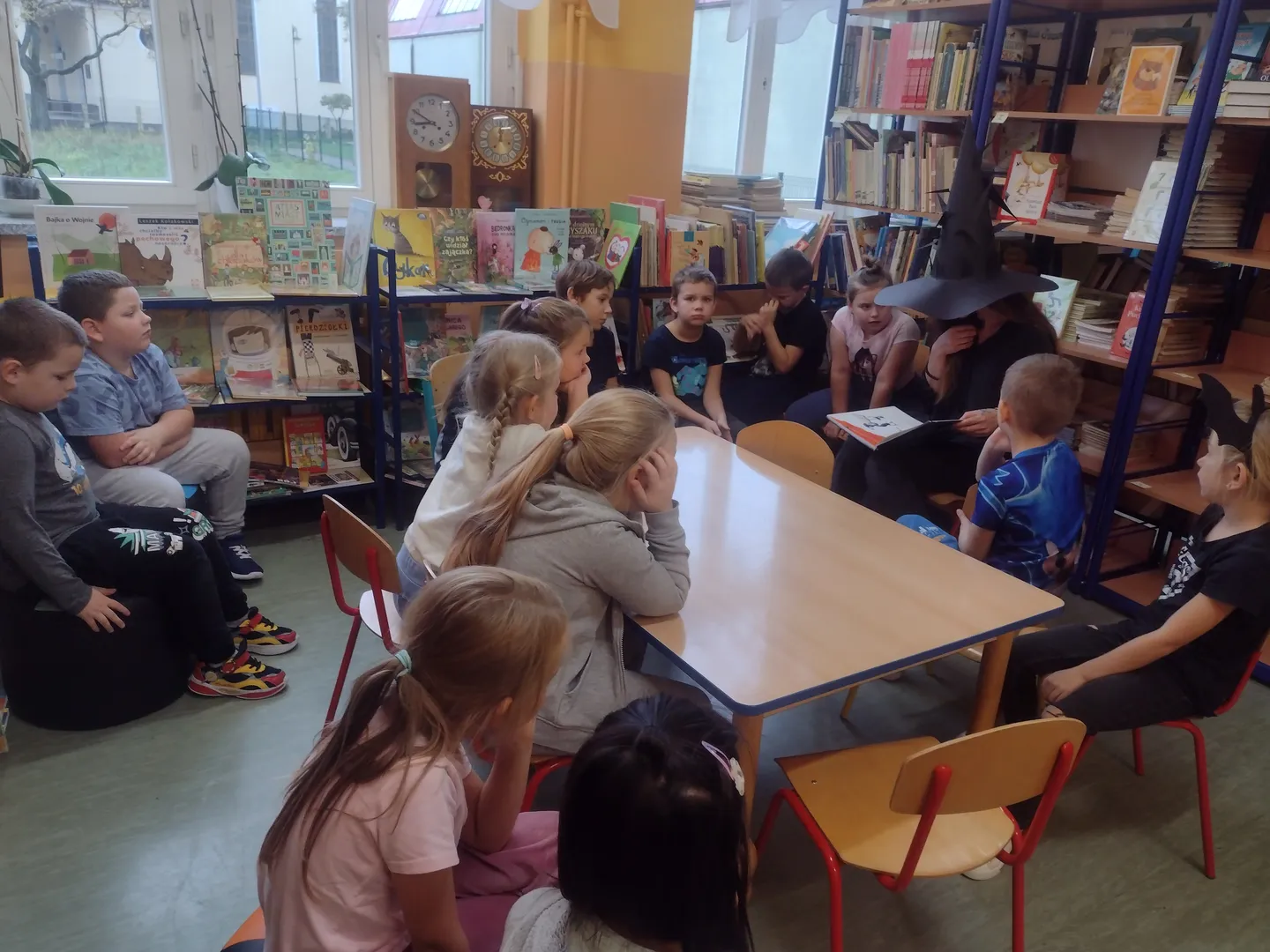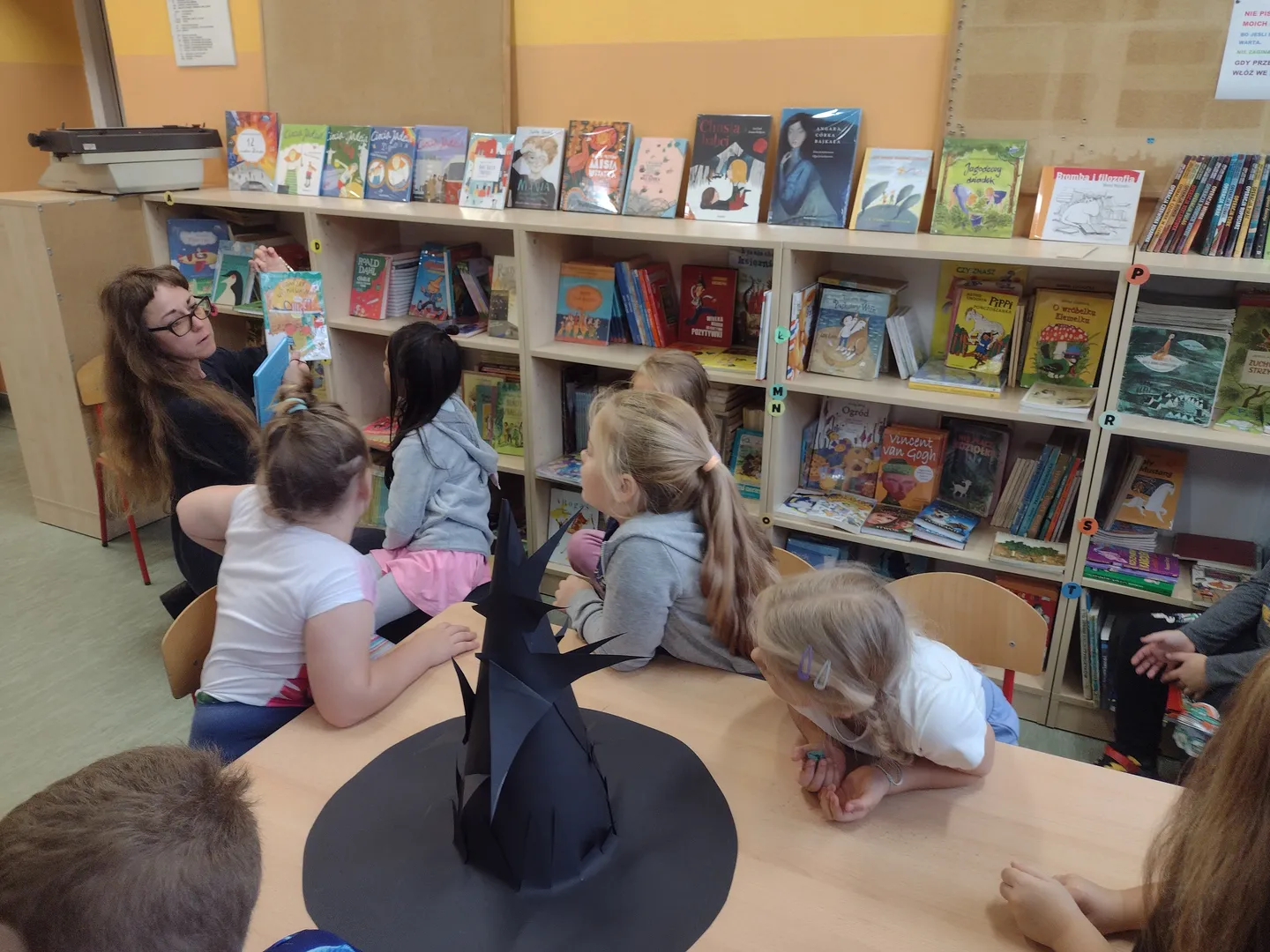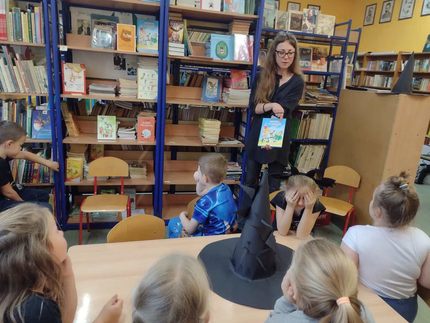Dzieci, w otoczeniu lektur, baśni, legend często niesamowitych, wysłuchały opowieści z bajkowego świata, które wyskoczyły z magicznego kapelusza. Czarownica Drut i jej przepis na pyszną zupkę dyniową, dzięki której zyskała leśnych przyjaciół. Sara Łaskotka, urocza opiekunka dzieci, kolejna wielbicielka dyniowych pyszności, przykuły uwagę Pierwszaków, którzy po wysłuchaniu bajek przeglądali ilustracje książki i żywo wymieniali się wrażeniami.