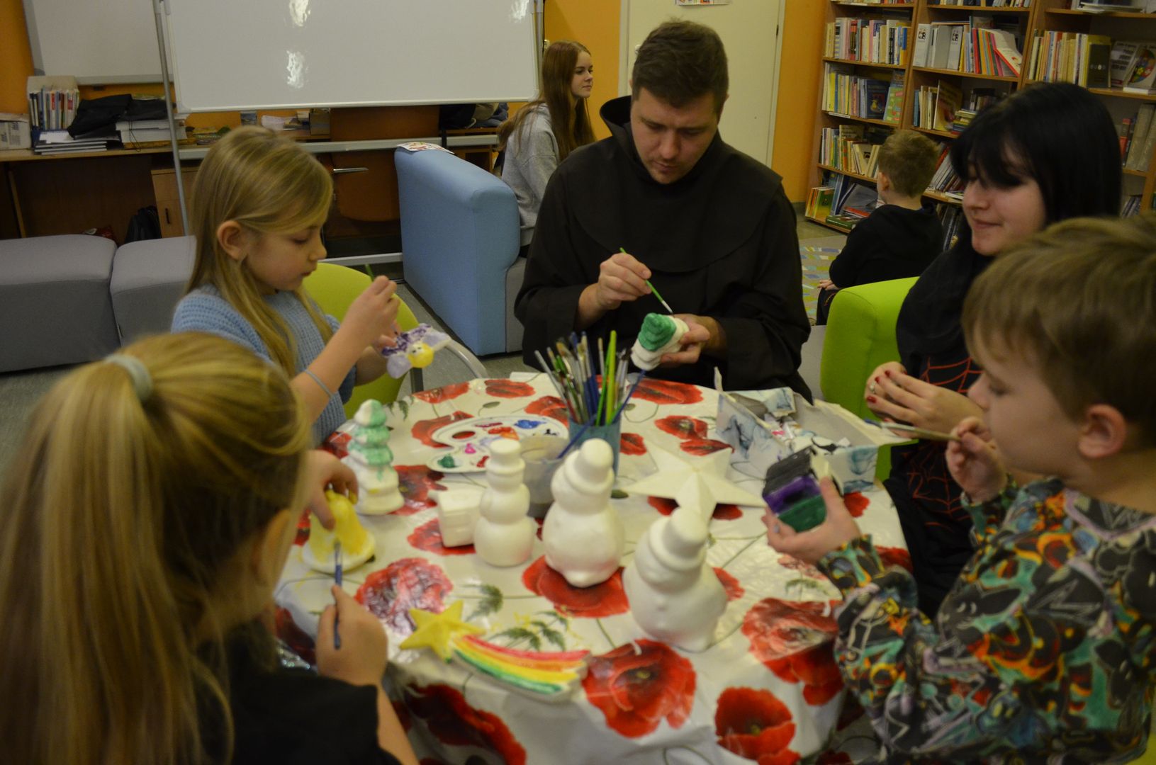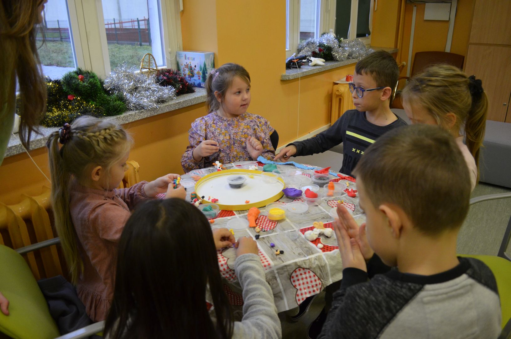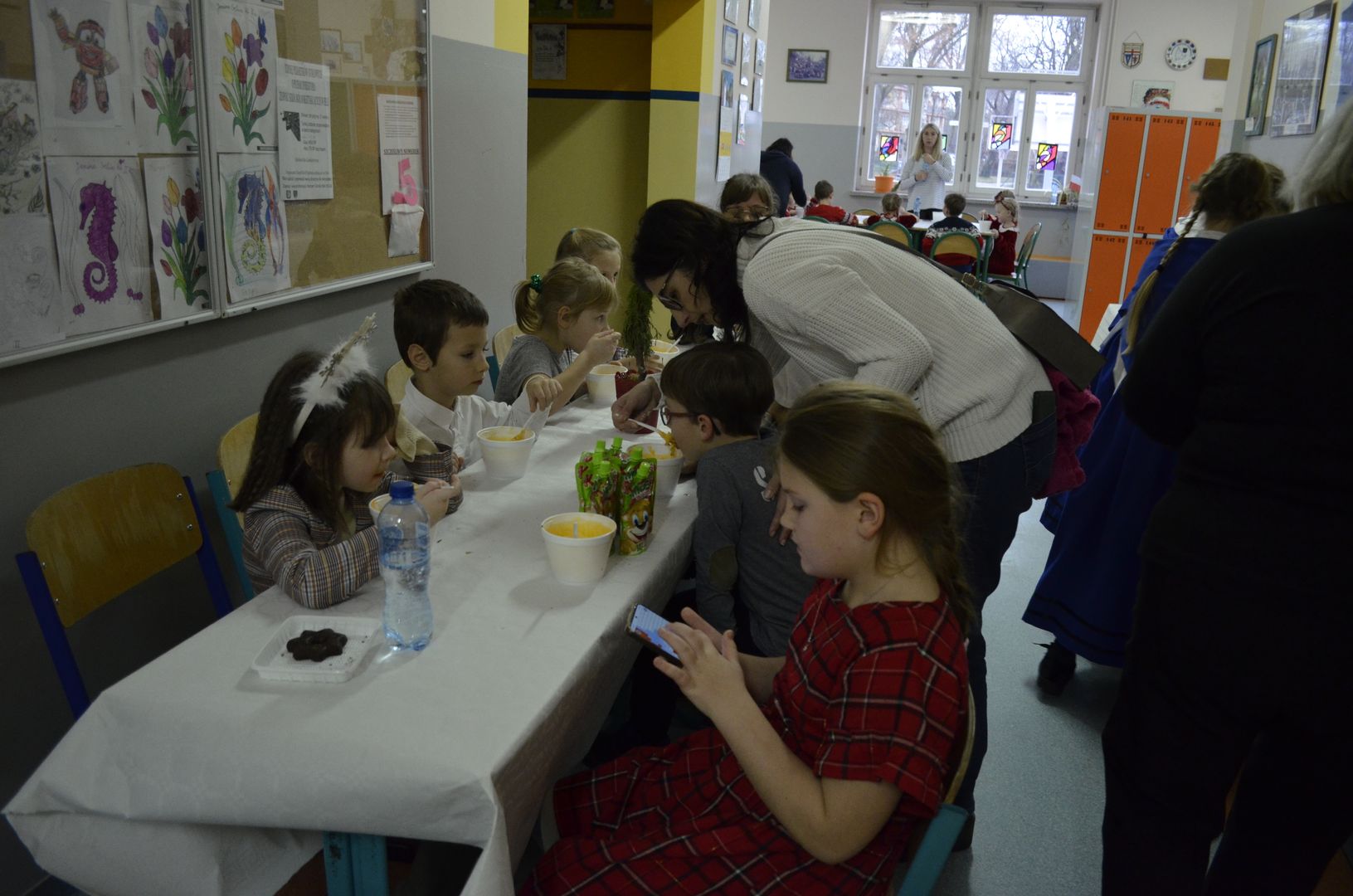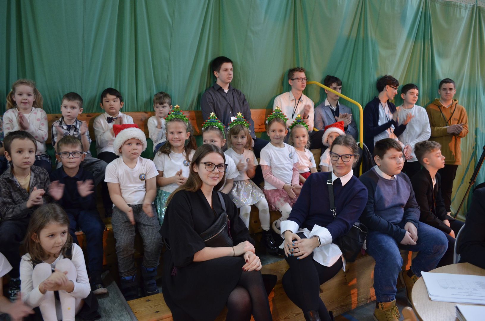 Podczas gdy na scenie w hali widowiskowo-sportowej prezentowały się kolejne zespoły oraz soliści, pozostali uczestnicy mogli w dowolnym momencie opuścić trybuny i rozśpiewać się lub wyciszyć w przydzielonej im sali, a także nabrać sił w strefie gastronomicznej, gdzie czekał słodki poczęstunek, napoje, a nawet gorąca zupa. Założeniem konkursu, poza wspieraniem młodych talentów wokalnych, było pielęgnowanie tradycji i zwyczajów związanych z Bożym Narodzeniem. Specjalna strefa kreatywna oferowała stworzenie rozmaitych ozdób świątecznych. Bliższemu poznawaniu się uczestników sprzyjała strefa gier, w której mogli odpocząć na miękkich pufach i pograć w planszowki czy też rozegrać mecz piłkarzyków stołowych. Nasi uczniowie, jak przystało na gospodarzy, otoczyli opieką gości, pełniąc funkcję przewodników grup. W całej szkole panowała przyjacielska i radosna atmosfera.
