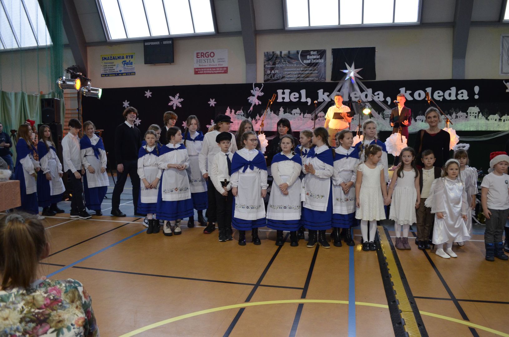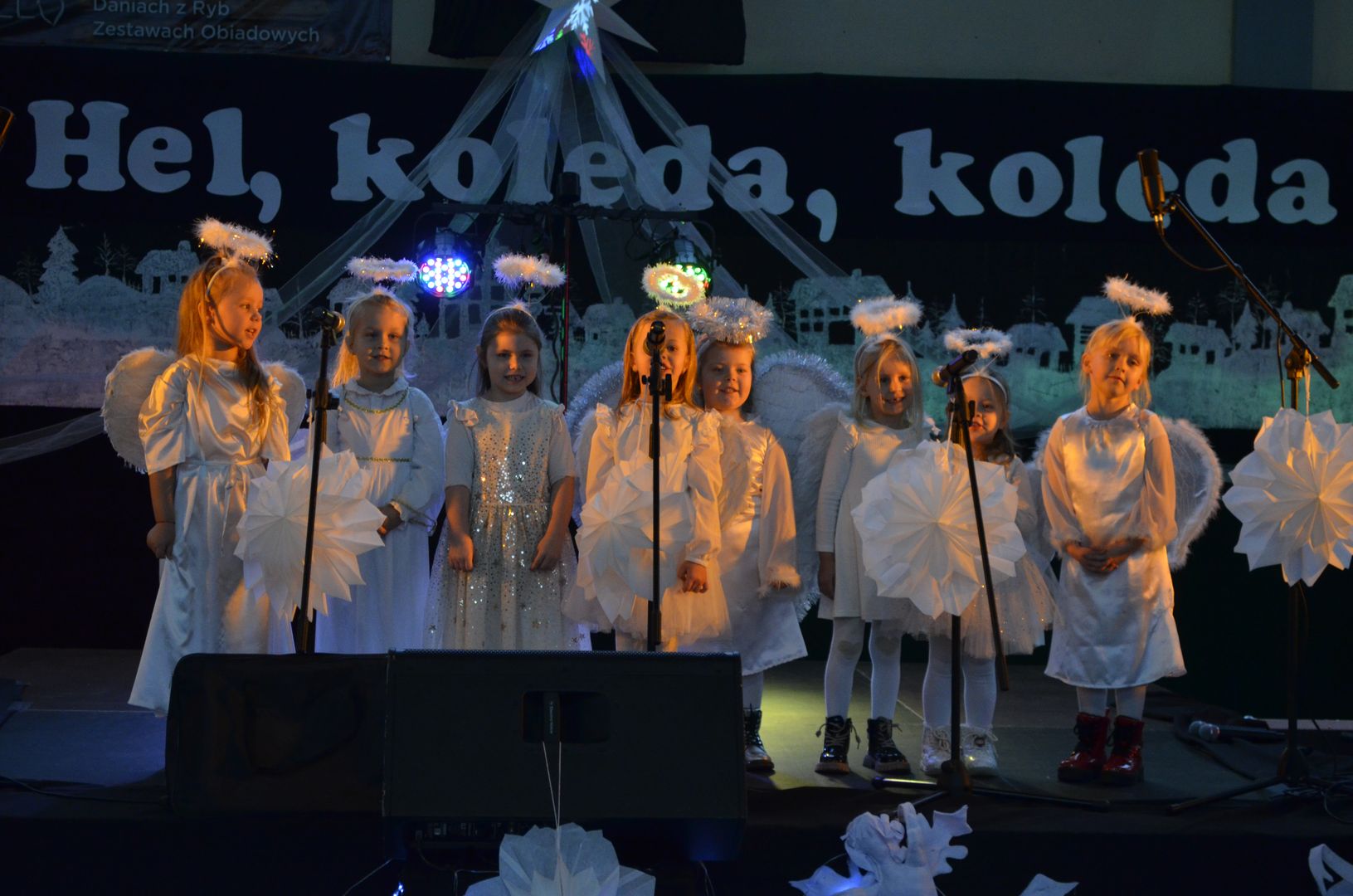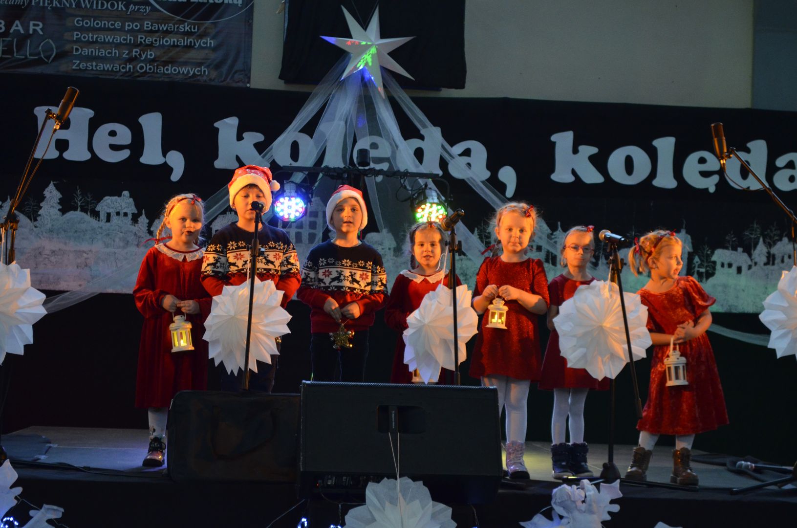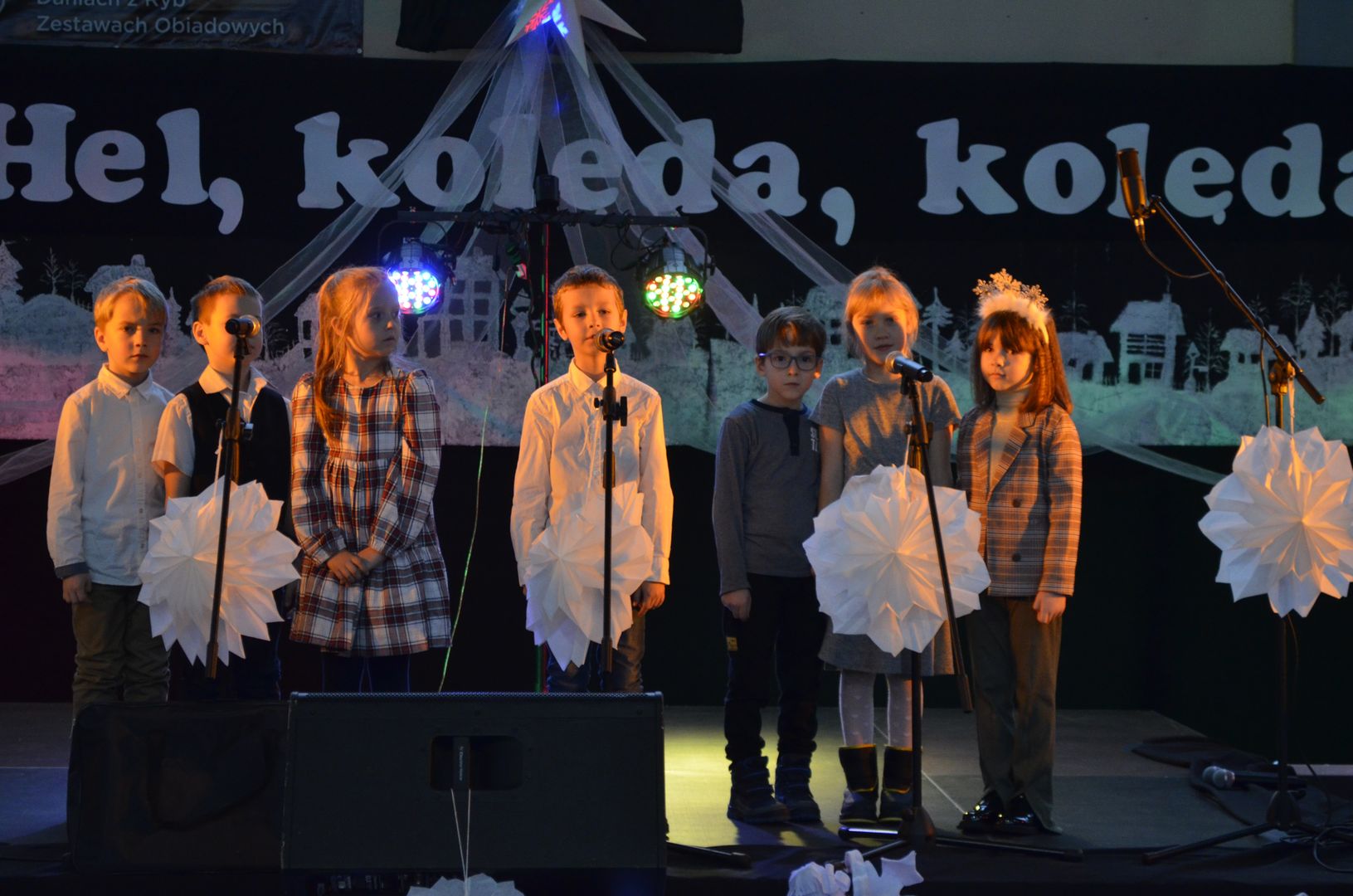 12.12.2023 r. w naszej szkole odbył się Powiatowy Konkurs Kolęd i Pastorałek „Hel, kolęda, kolęda!”, do którego zapraszaliśmy wszystkich chętnych i rozśpiewanych z całej okolicy. Wybraną kolędę, pastorałkę lub pieśń bożonarodzeniową zaprezentowali uczestnicy z siedmiu miejscowości, z dziewięciu różnych placówek, z przedszkoli, szkół podstawowych, a nawet ponadpodstawowych.