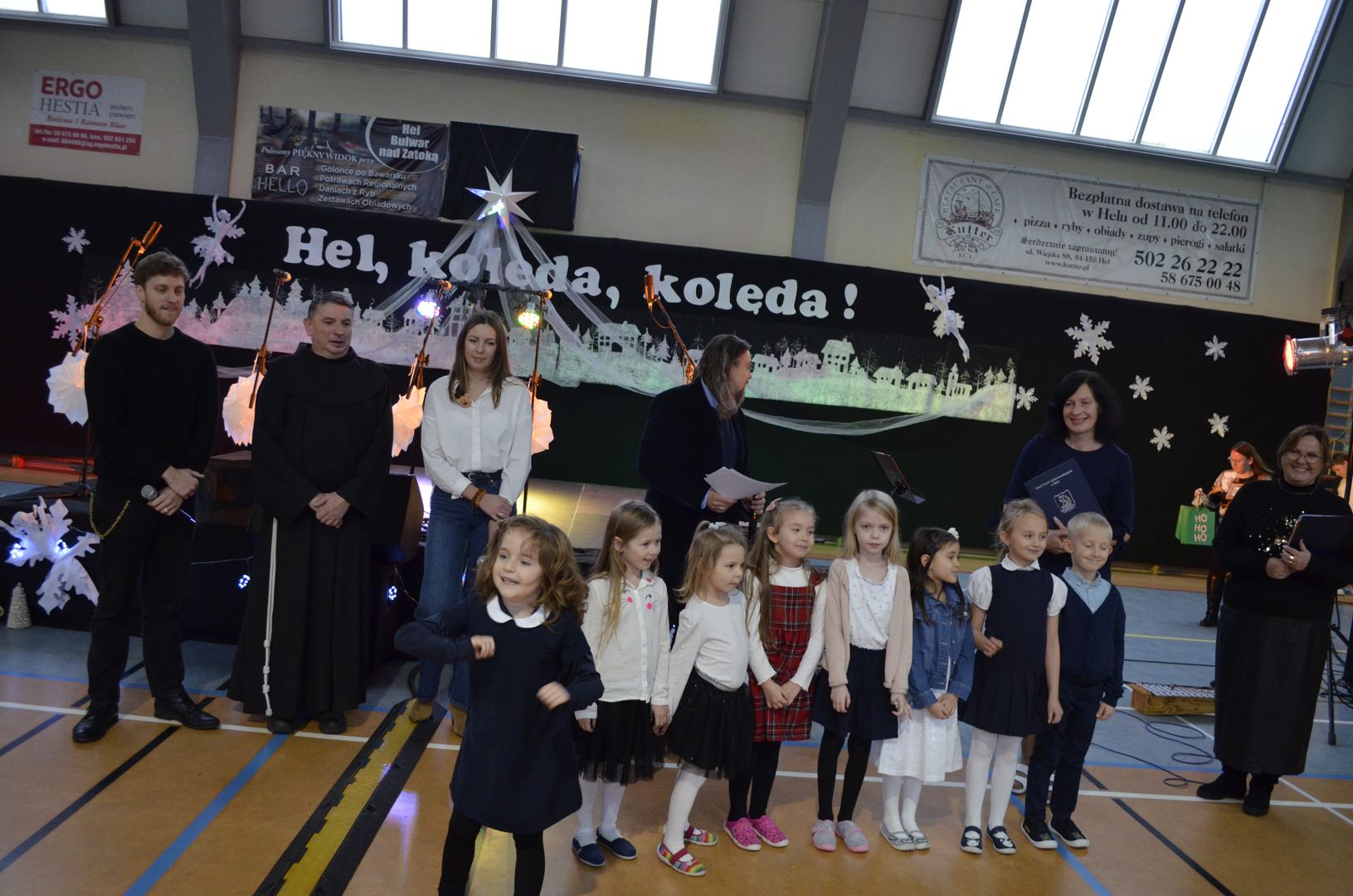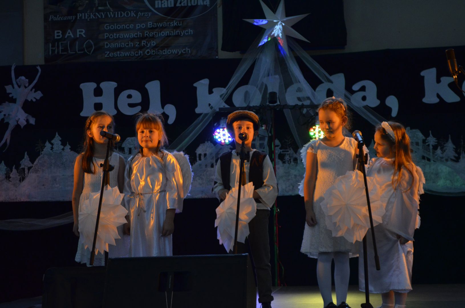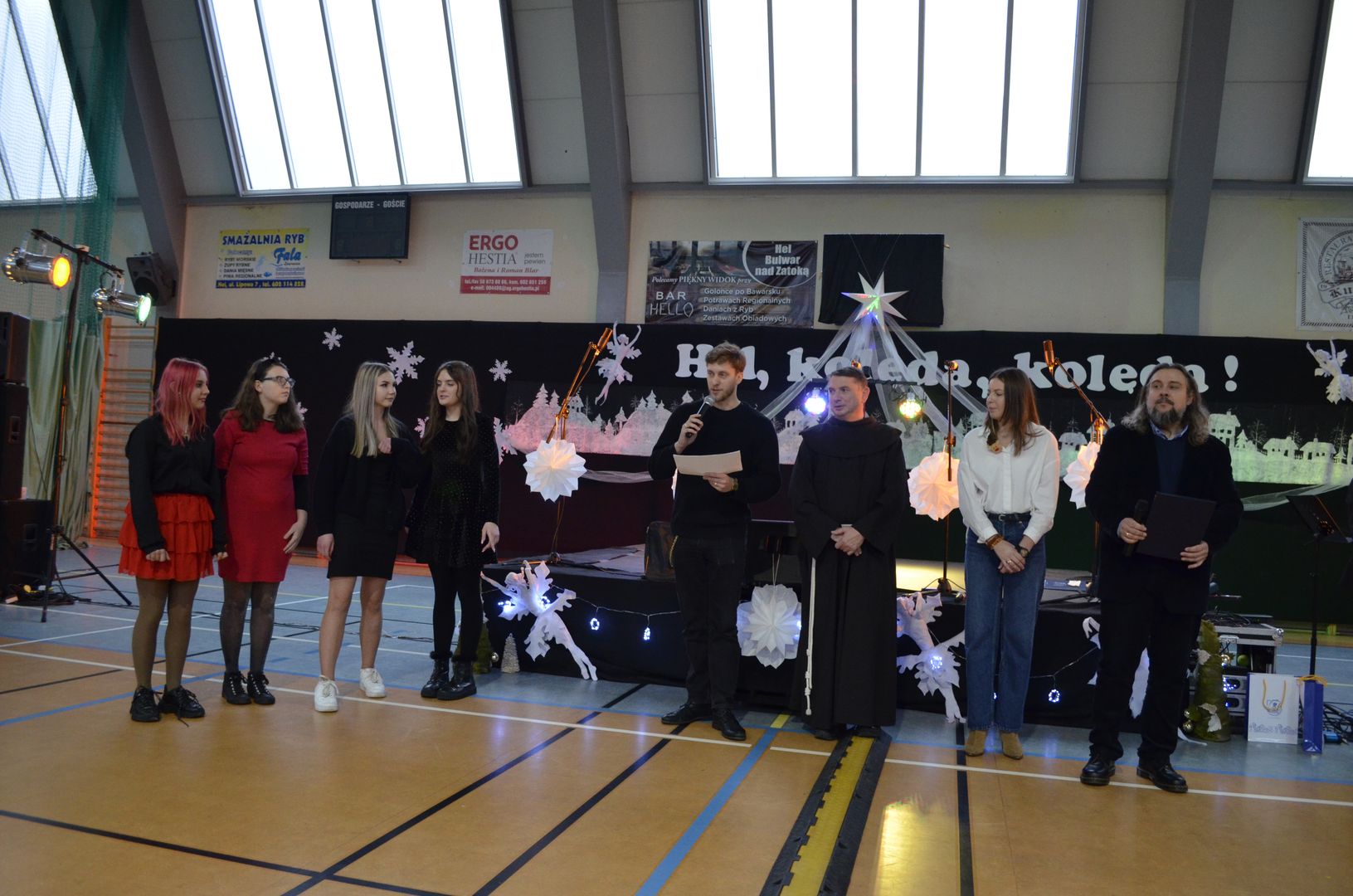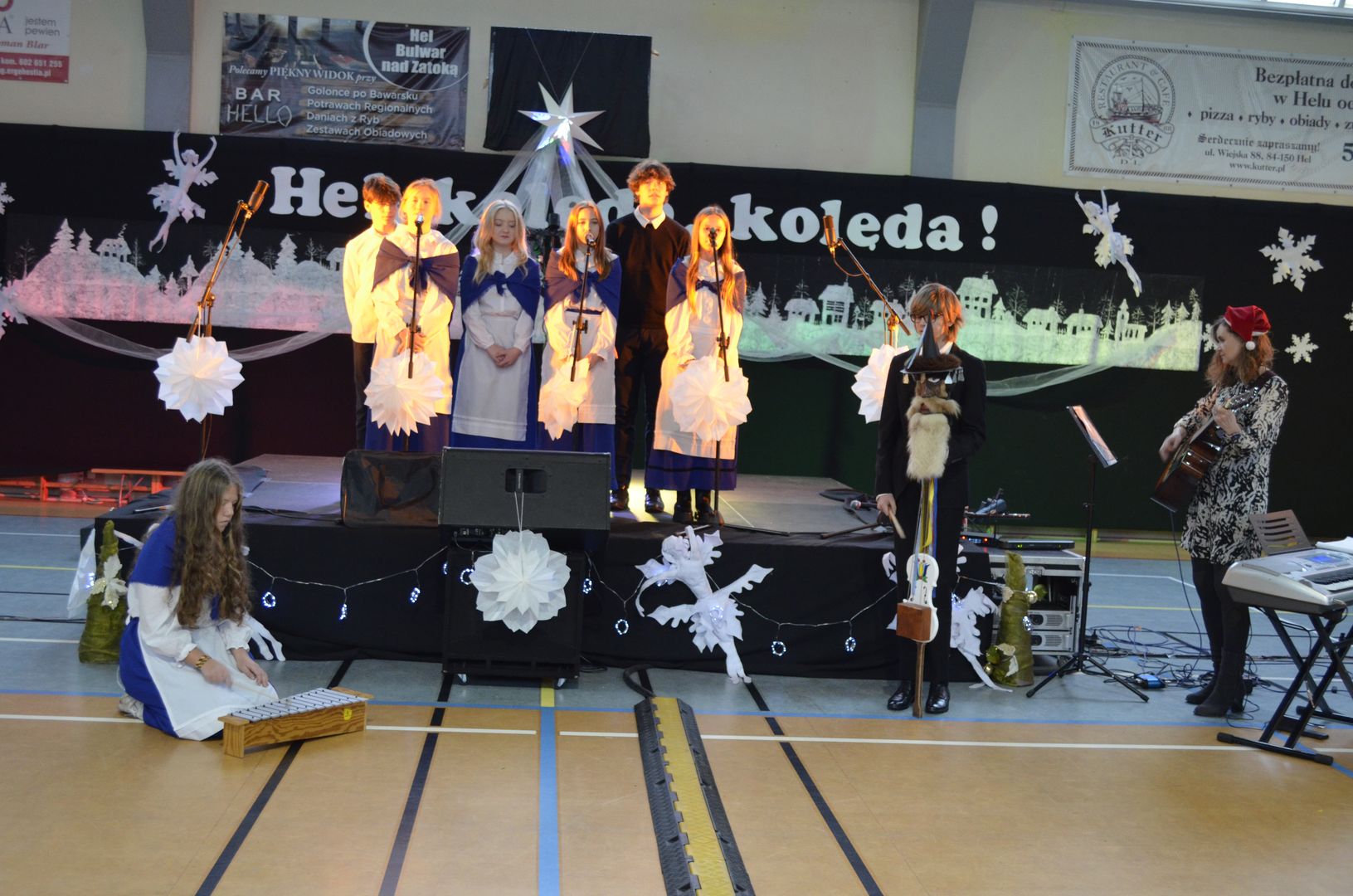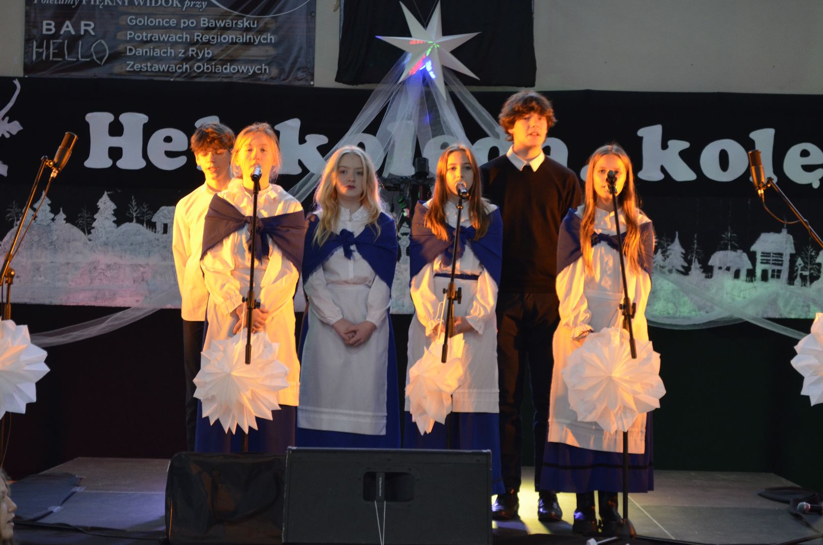12.12.2023 r. w naszej szkole odbył się Powiatowy Konkurs Kolęd i Pastorałek „Hel, kolęda, kolęda!”, do którego zapraszaliśmy wszystkich chętnych i rozśpiewanych z całej okolicy. Wybraną kolędę, pastorałkę lub pieśń bożonarodzeniową zaprezentowali uczestnicy z siedmiu miejscowości, z dziewięciu różnych placówek, z przedszkoli, szkół podstawowych, a nawet ponadpodstawowych.