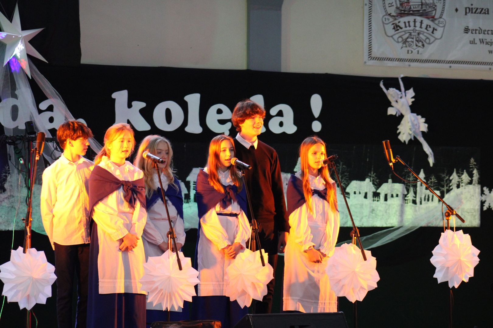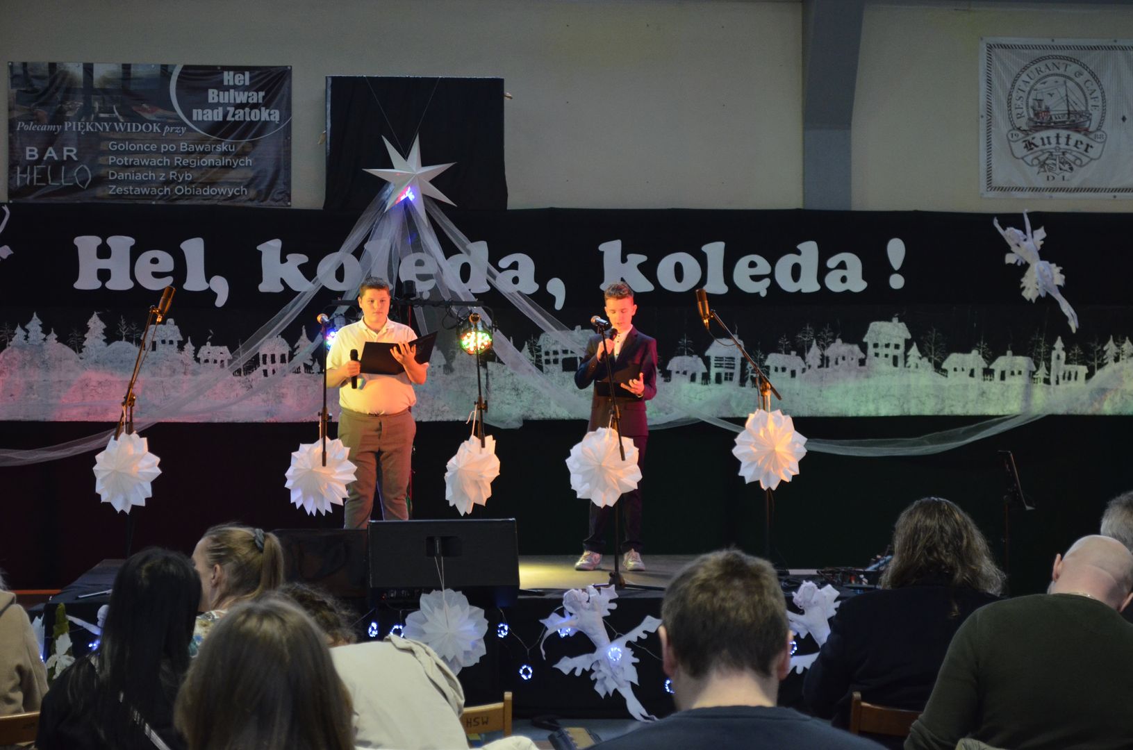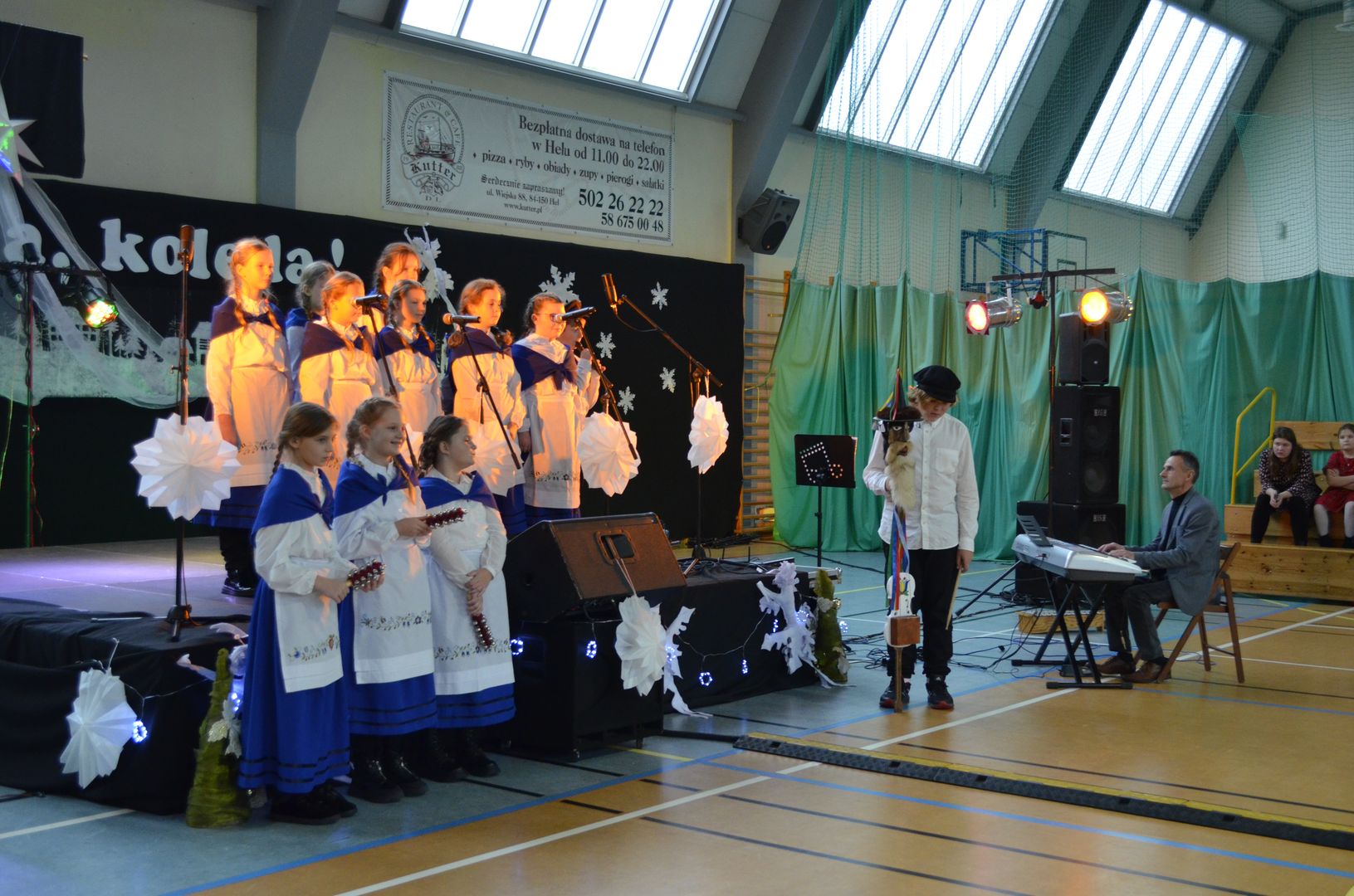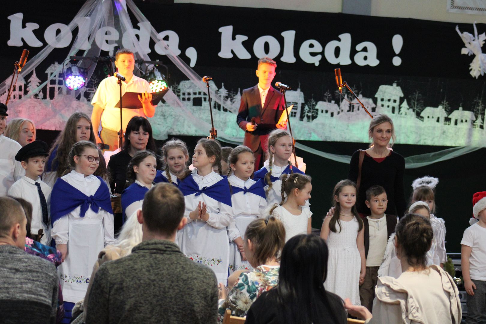 12.12.2023 r. w naszej szkole odbył się Powiatowy Konkurs Kolęd i Pastorałek „Hel, kolęda, kolęda!”, do którego zapraszaliśmy wszystkich chętnych i rozśpiewanych z całej okolicy. Wybraną kolędę, pastorałkę lub pieśń bożonarodzeniową zaprezentowali uczestnicy z siedmiu miejscowości, z dziewięciu różnych placówek, z przedszkoli, szkół podstawowych, a nawet ponadpodstawowych.