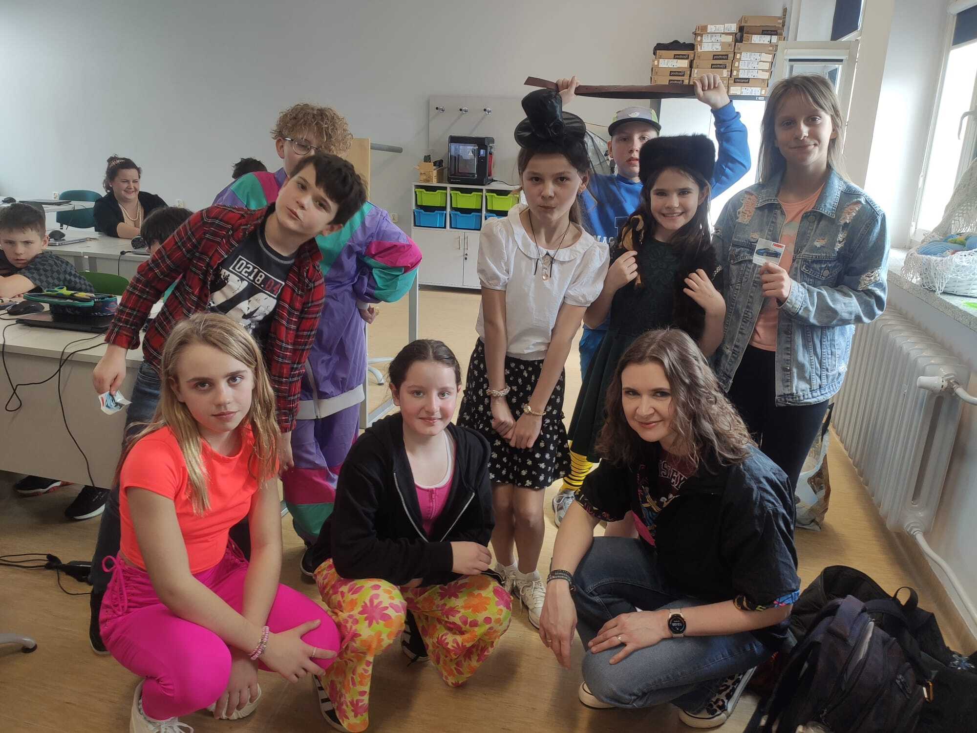 1 kwietnia jest znany wszystkim jako dzień żartów i psikusów. W naszej szkole tego dnia wsiedliśmy w wehikuł czasu. To był dzień w zupełnie starym stylu! Wielu uczniów oraz nauczycieli zadbało o garderobę jak sprzed kliku dekad. Na lekcjach uczyliśmy się w stylu retro – bez urządzeń elektronicznych, a wykorzystując pomoce naukowe znane naszym dziadkom. Klasy młodsze brały udział w bajkowym seansie z wykorzystaniem starego rzutnika i slajdów. Starsi uczniowie mieli okazję posłuchać winylowych płyt na gramofonie, poznać działanie magnetofonu szpulowego, pograć w zbijaka czy stworzyć własny zeszyt Złotych Myśli. W czasie przerw większość społeczności szkolnej wczuła się w retro-klimat i schowała komórki w najgłębszą kieszeń plecaka. Tańczyli do muzyki z lat 70’, 80’ i 90’, skakali na skakance, grali w państwa miasta, kółko i krzyżyk, szachy czy kapsle, a nawet… wspólnie uczyli się szydełkować! Uczniowie chętnie słuchali opowieści nauczycieli, jak oni spędzali czas nauki szkolnej, a prawdziwe gumy do żucia Kaczor Donald oraz Turbo wywołały uśmiech nie tylko na twarzach uczniów.