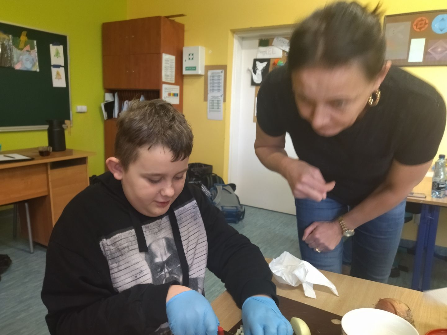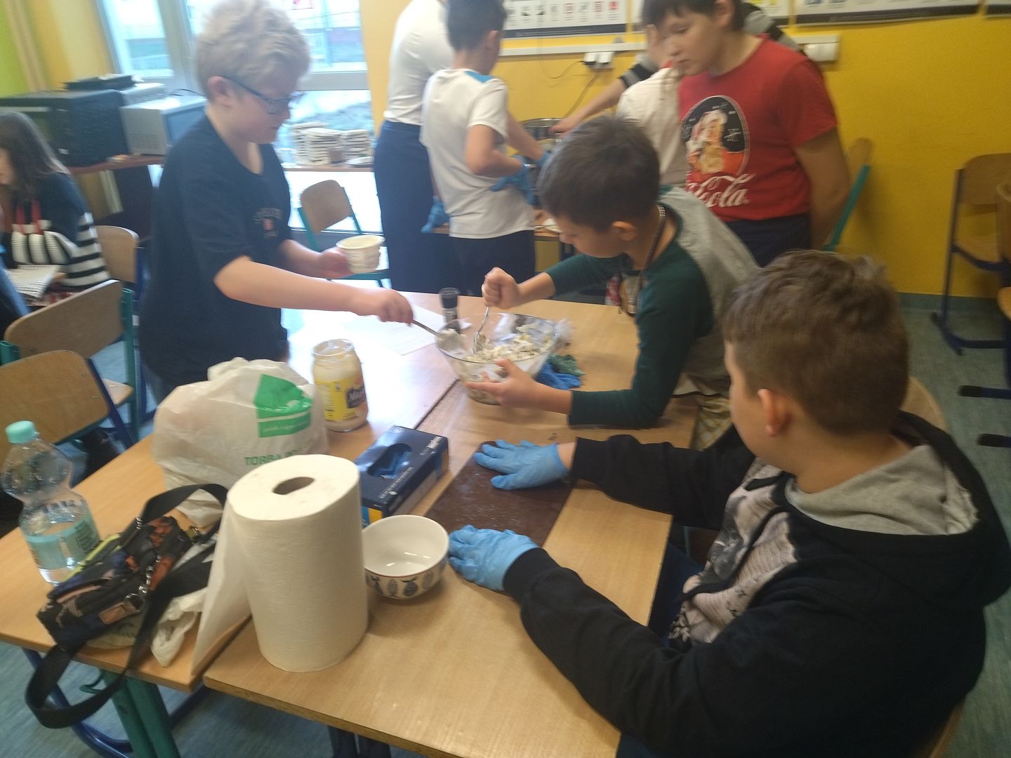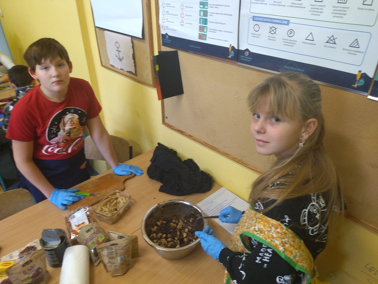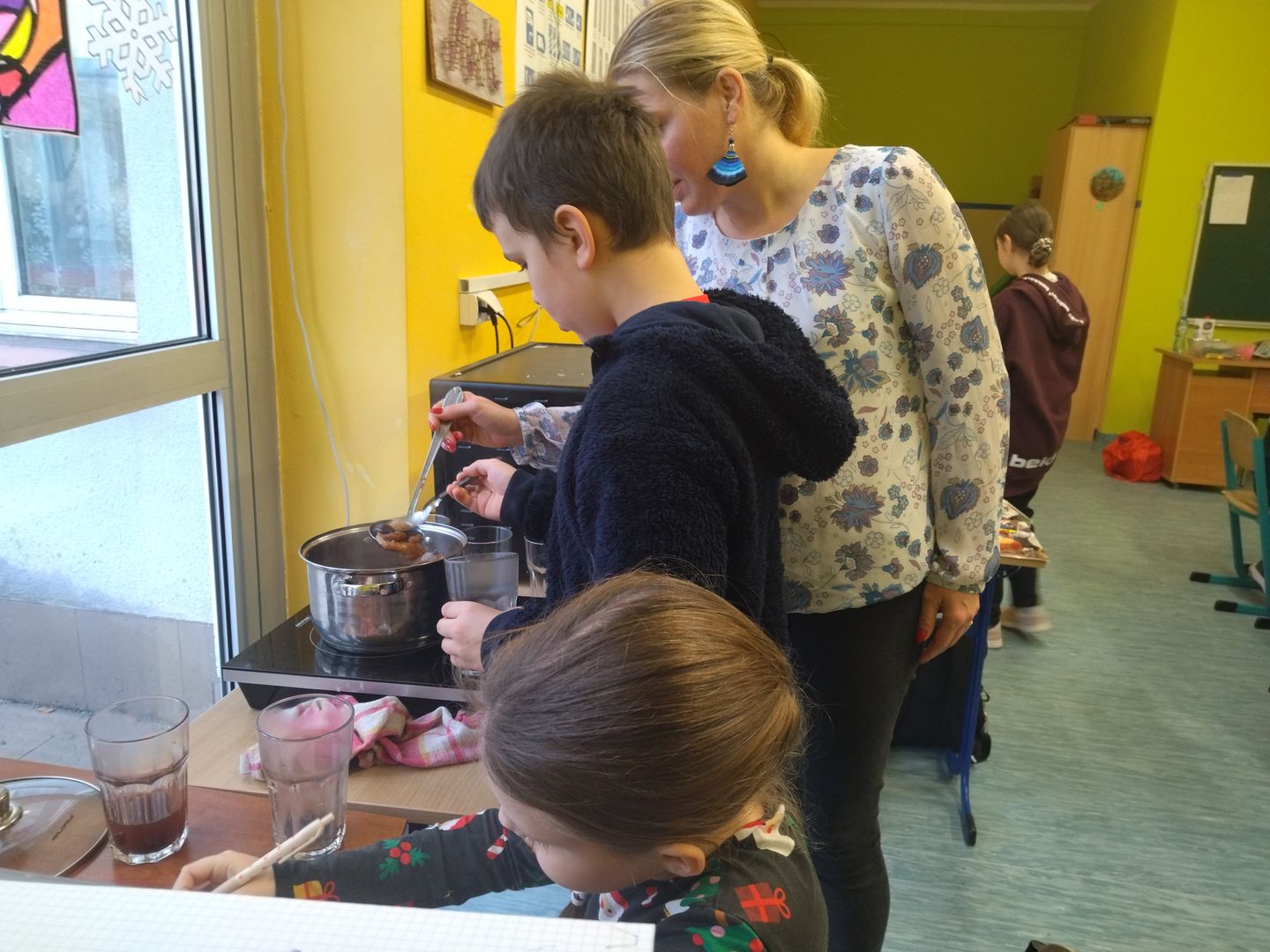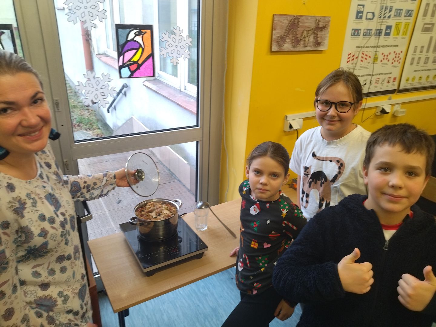 13 i 18 grudnia Rodzice i Uczniowie klas czwartych wzięli udział w lekcjach otwartych języka polskiego i … komunikacji, pracy zespołowej, integracji i zajęć kulinarnych. Zadaniem małych zespołów (jeden Rodzic i dwoje Dzieci z zastrzeżeniem, aby Rodzic nie był Master Szefem w drużynie swojego Dziecka) było stworzyć recepturę / przepis na danie świąteczne, następnie zespołowo je wykonać, a o ustalonej godzinie przeznaczyć do wspólnej degustacji. Dodatkowo zespoły zmagały się z wymyśleniem nazwy, która najlepiej oddałaby charakter działań grupy lub kulinarne wyzwanie. Szkolna kuchnia w sali technicznej tętniła energią różnych działań, od podziału obowiązków do pokonywania trudności na warsztacie deseczek i noży. Było przyjaźnie, wesoło, twórczo i najważniejsze, że razem. Bardzo dziękujemy Rodzicom klas czwartych za zaangażowanie, energię i wyobraźnię Starszaków. Do zobaczenia w kolejnych zadaniach!