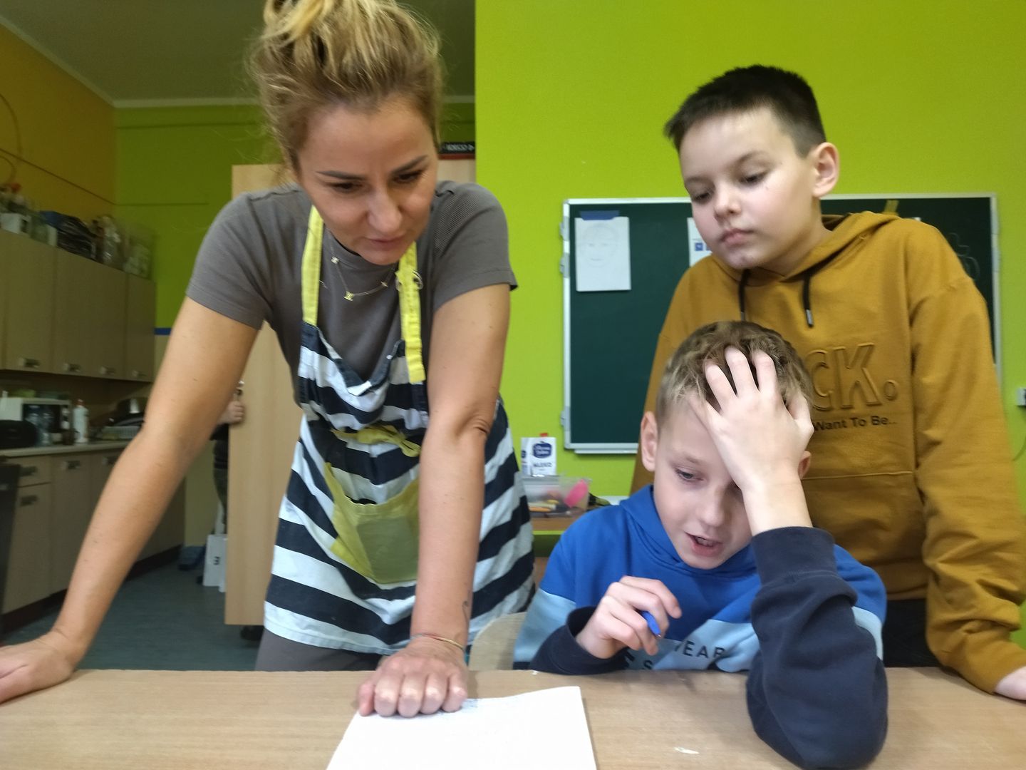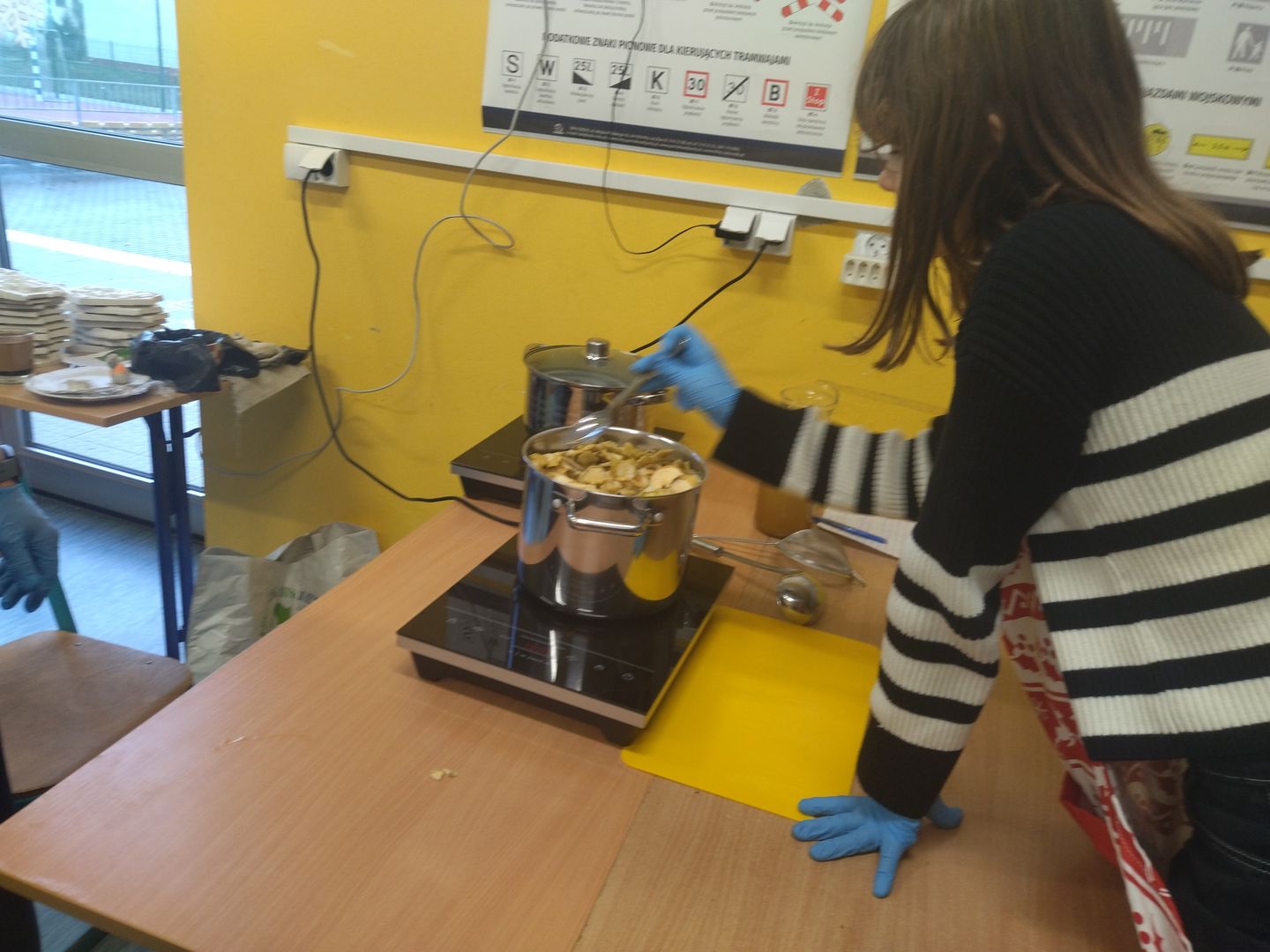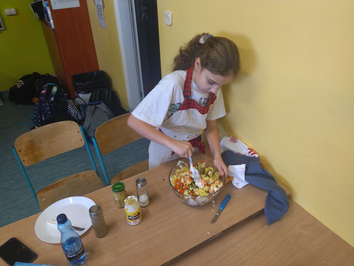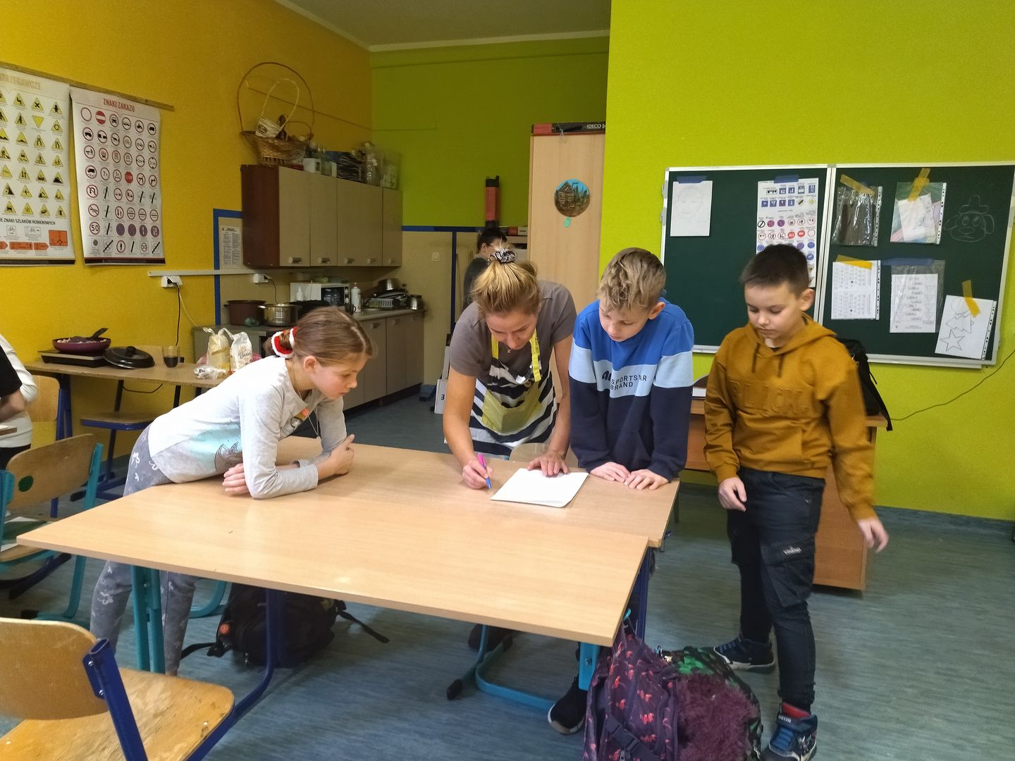 13 i 18 grudnia Rodzice i Uczniowie klas czwartych wzięli udział w lekcjach otwartych języka polskiego i … komunikacji, pracy zespołowej, integracji i zajęć kulinarnych. Zadaniem małych zespołów (jeden Rodzic i dwoje Dzieci z zastrzeżeniem, aby Rodzic nie był Master Szefem w drużynie swojego Dziecka) było stworzyć recepturę / przepis na danie świąteczne, następnie zespołowo je wykonać, a o ustalonej godzinie przeznaczyć do wspólnej degustacji. Dodatkowo zespoły zmagały się z wymyśleniem nazwy, która najlepiej oddałaby charakter działań grupy lub kulinarne wyzwanie. Szkolna kuchnia w sali technicznej tętniła energią różnych działań, od podziału obowiązków do pokonywania trudności na warsztacie deseczek i noży. Było przyjaźnie, wesoło, twórczo i najważniejsze, że razem. Bardzo dziękujemy Rodzicom klas czwartych za zaangażowanie, energię i wyobraźnię Starszaków. Do zobaczenia w kolejnych zadaniach!