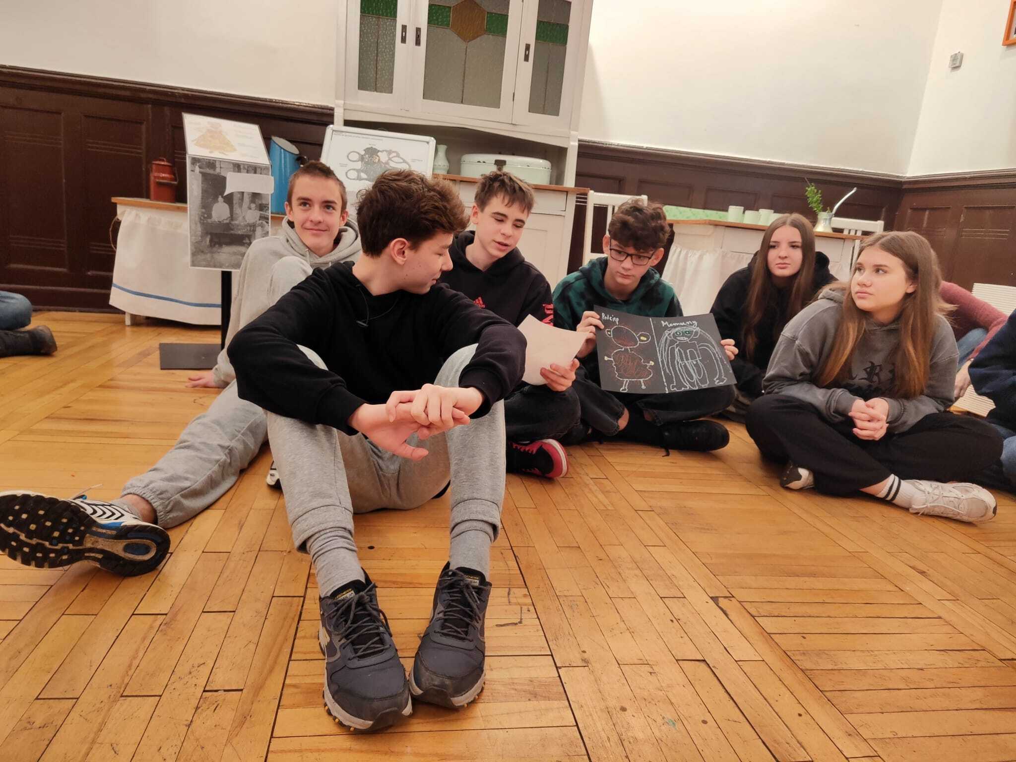 Tym razem uczestnikami tej wymagającej inicjatywy są Uczniowie dwóch klas ósmych: naszej i śląskiej ósmej C. Grudniowa wyprawa wiązała się z możliwością uczestniczenia w Jarmarku Świątecznym na Nikiszu, zabytkowej dzielnicy Katowic. Plan gęsto usiany różnymi zajęciami nie pozostawiał nam czasu na własne pomysły, byliśmy cudownie zmęczeni i wirowaliśmy pomiędzy zadaniami, miejscami, nowymi Przyjaciółmi i krótkim, doprawdy, snem. Wszyscy jednogłośnie orzekliśmy, że podczas upływu dni projektowych doświadczyliśmy pobytu w Kapsule Czasu: pierwsza doba rozciągnęła się i objęła jakby dwa dni a potem, od razu i wbrew wszystkiemu, nastał piątek, pożegnanie i smuteczek. Nasi gościnni Gospodarze na bieżąco relacjonowali wydarzenia na swoim fb, a my je udostępnialiśmy, więc dziś już nie będziemy wracać do szczegółów, skupimy się na dwóch innych aspektach. Można by było każdy punkt naszego programu dopisać do celów podstawy programowej, od spektaklu teatralnego, przez zajęcia na basenie, warsztaty w muzeach, zwiedzanie kopalni, grę terenową, zajęcia geofizyki w planetarium i oczywiście niezbędne minimum o kulturze i języku Ślązaków. Jednak pytania te postawione naszym ósmoklasistom dostarczyły dużo ciekawszych odpowiedzi: